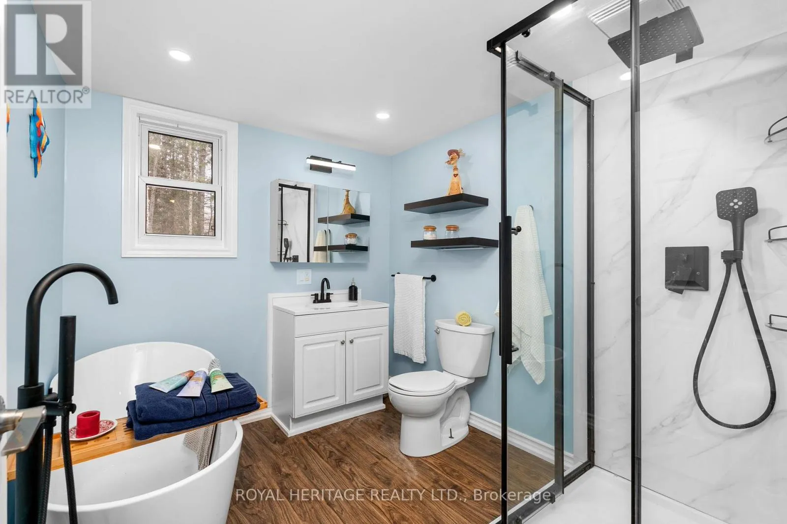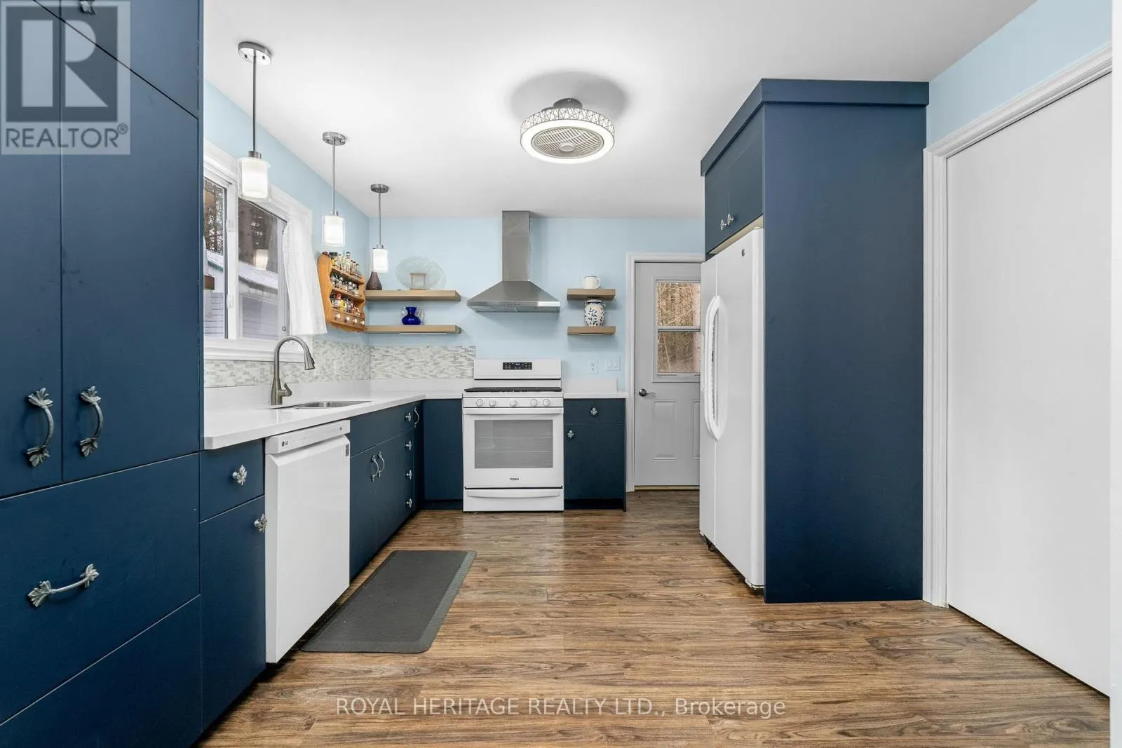 Cross Streets: RAVENSCLIFFE & SOUTH WASEOSA. ** Directions: HWY 11 TO RAVENSCLIFFE TO SOUTH WASEOSA. Nestled in the prestigious Chaffey community of Huntsville, this beautifully maintained and recently updated bungalow blends country charm with contemporary design. Newly finished with board-and-batten slate-blue vinyl siding and a durable metal roof, this home offers stylish curb appeal and low-maintenance living. Inside, you'll find a bright, open-concept layout where the living and dining areas flow seamlessly into a well-appointed kitchen featuring sleek finishes, a gas range, and convenient main-floor laundry. The cozy gas fireplace creates a warm, inviting atmosphere, especially as you enter through the covered, enclosed mudroom-ideal for shedding winter layers. The home offers two comfortable bedrooms with 2 6ft closets and a modern four-piece bath. Outside, enjoy privacy among century-old trees from the back deck. An insulated auxiliary bunkie with heat and electricity provides additional space and awaits your finishing touches. Located in a quiet waterfront community just 10 minutes from Huntsville and steps to Lake Waseosa offers, public access This property perfectly blends serenity with practicality. High-speed internet supports working or streaming from home. A new portable garage with 10 years remaining on the warranty is also included. Whether you're downsizing or purchasing your first home, this inviting bungalow-bathed in natural light with potential to expand-offers endless possibilities. Here are some of the updates: FULL RENOVATION 2023/NEW METAL ROOF/NEW SIDING/DRYWAY/ELECTRICAL/PLUMBING/PROPANE STOVE/BUNKIE/10 YEARS LEFT FOR PORTABLE 2 CAR GARAGE (2019)/REFRESH ON DRIVEWAY. First Time Buyers, Downsizer or Investors Dream Opporunity! (id:27476)