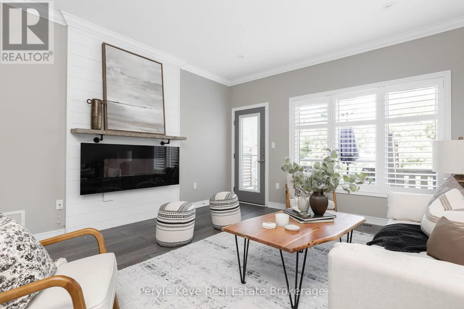 Cross Streets: Centre St N - Legacy Lane. ** Directions: HWY 11 - HWY 60 - Centre St N - Legacy Lane - Serenity Place Cres. It looks like a downsize on paper. But step inside... and you'll see how brilliantly this 2,800 sq ft floor plan is designed. Everything you need for daily living-laundry, primary suite, guest room or study, kitchen, dining, living, and a full 4PC bath-is on the main floor. It's not smaller living. It's smarter living. Newer construction. Freehold ownership. Low maintenance. One-level convenience where life gets easier, not smaller. Set in the quiet enclave of Serenity Place Crescent, this freehold bungalow townhome offers a low-maintenance lifestyle just five minutes from Downtown Huntsville, restaurants, cafes, shopping, and daily essentials. The main level feels expansive the moment you enter. Wide-plank hardwood and 9' ceilings set a warm tone. The foyer with built-ins leads to a flexible second bedroom or study, currently an office with a Murphy bed for effortless hosting. The kitchen anchors the home with an oversized island, stainless steel appliances, under-cabinet lighting, and thoughtful storage. Dining and living spaces flow naturally to the back deck, making everyday moments-coffee, dinners, conversations-feel relaxed and seamless. The primary suite offers true comfort with a spacious bedroom, beautifully finished ensuite, and custom walk-in closet. A generous laundry room and a second full 4PC bath elevate main-floor ease. Direct access to the single-car garage adds convenience.When company comes, the lower level unfolds like a bonus chapter-a guest bedroom, 3PC bath, second family room, and flexible open space for hobbies, work, or cozy nights in. Sound-proof insulation between floors adds comfort. If you're afraid of losing storage, don't be. Nearly 500 sq ft of it is waiting. With municipal services, natural gas, high-speed internet, and no condo fees, this freehold townhome delivers comfort and convenience. Step inside and feel life slow down just enough to savour it - Serenity Place Crescent is more than an address; it's Home! (id:27476)