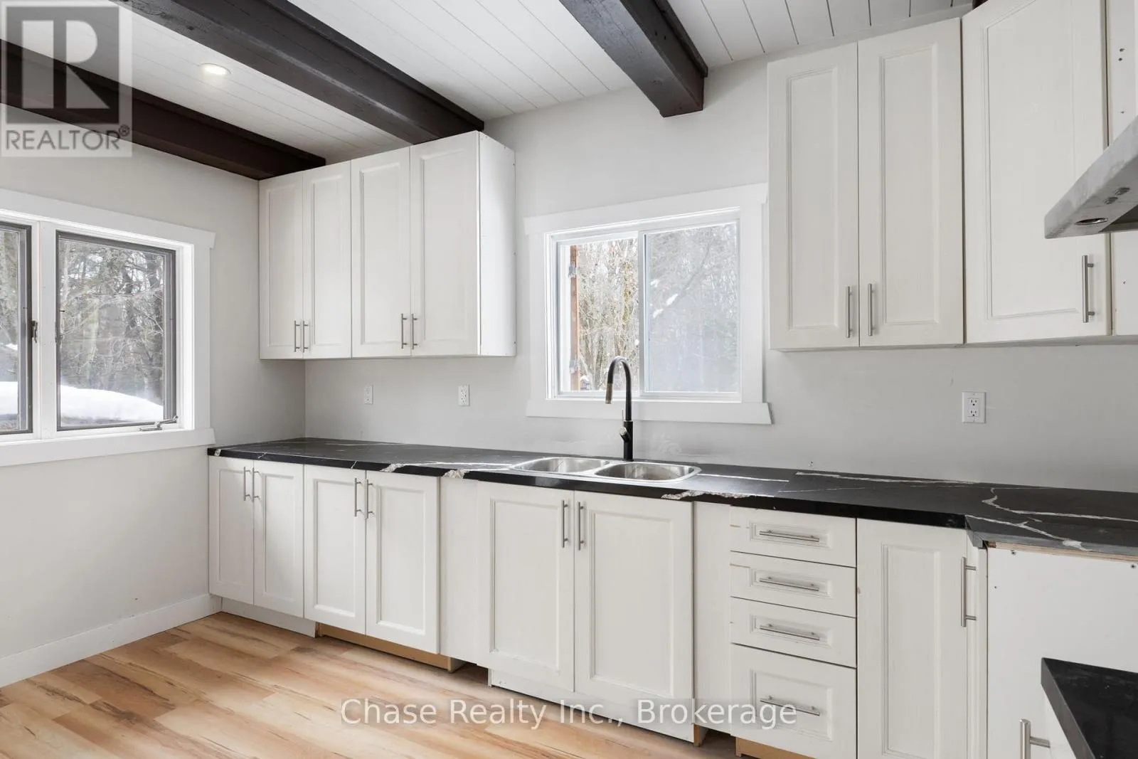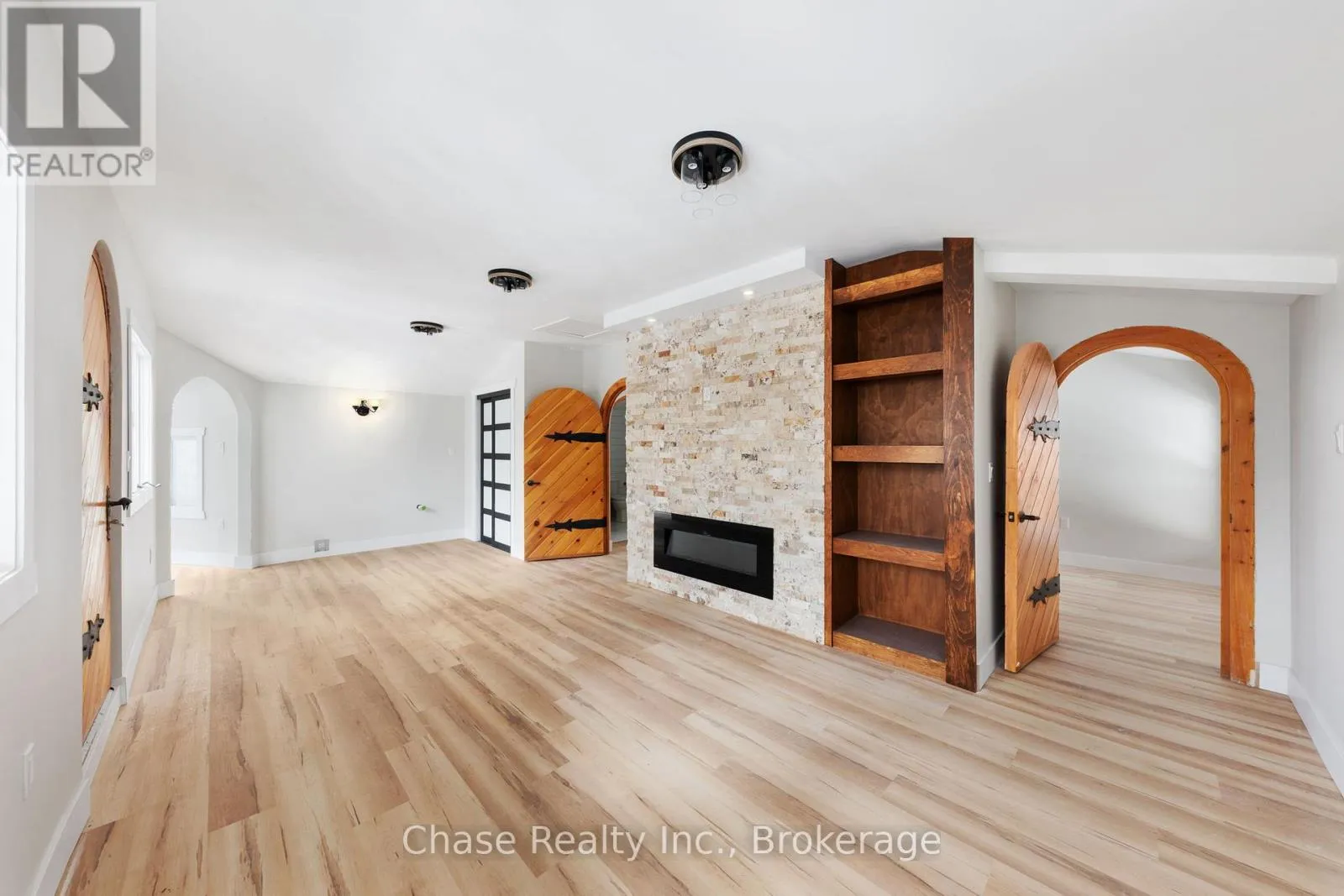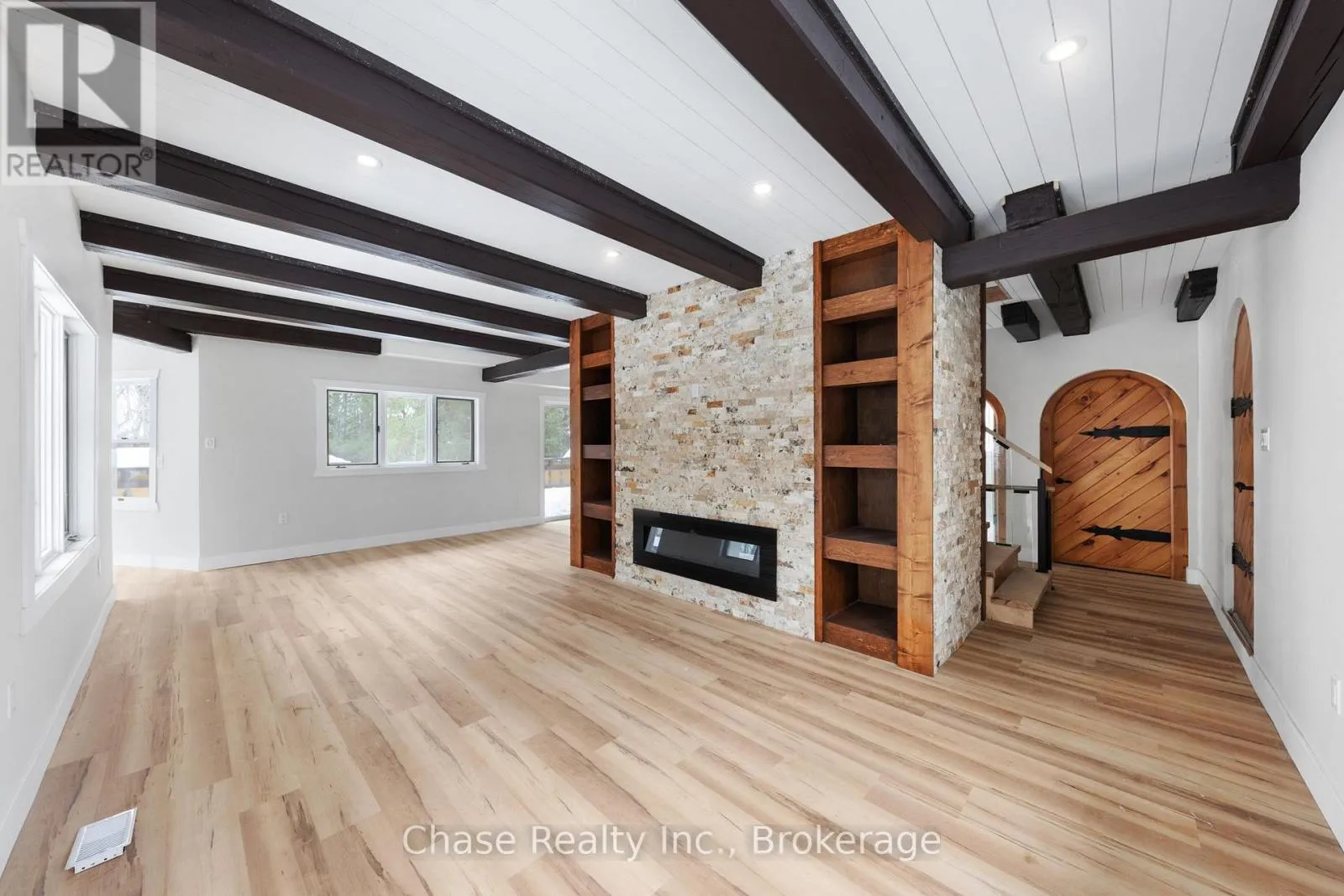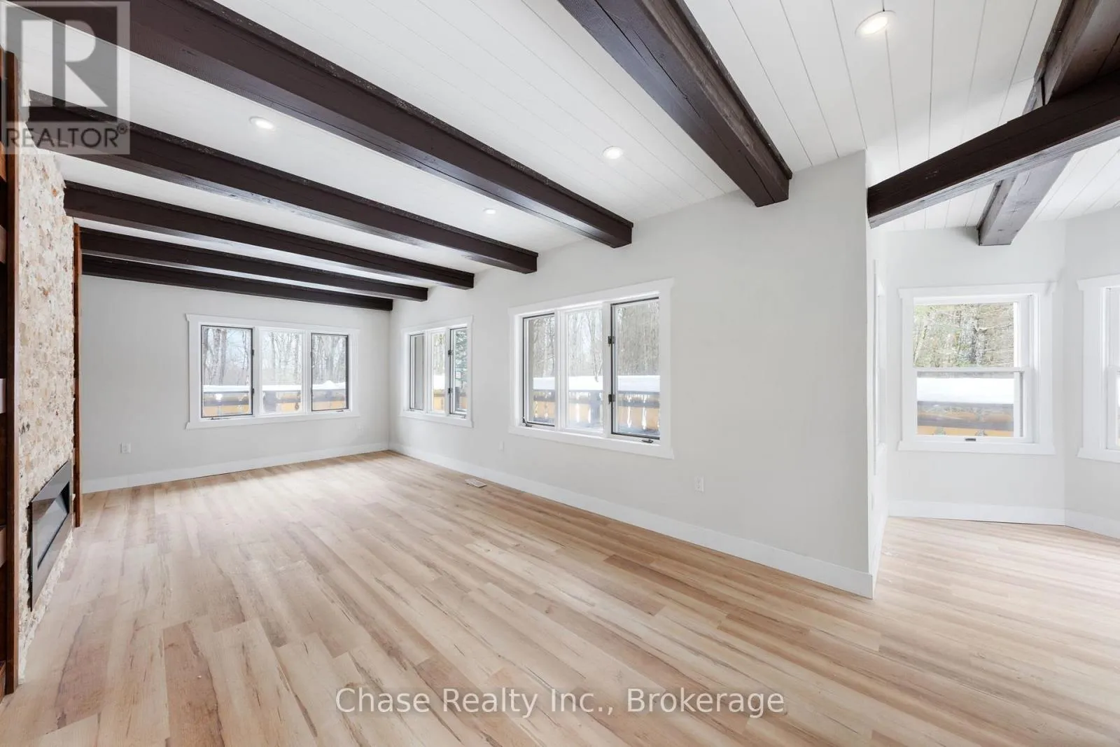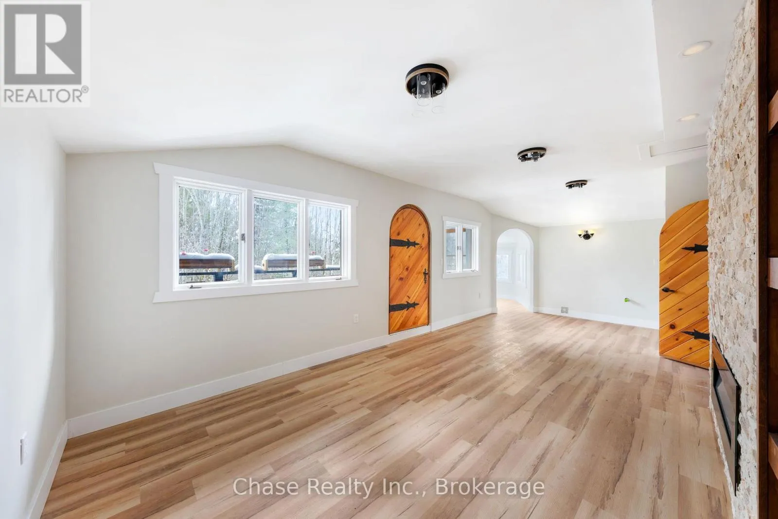 Cross Streets: Stephenson Rd. ** Directions: From Hwy 11 N, turn right onto Stephenson Rd 1 E, destination on your left. Situated on a private hill in Port Sydney, this European-inspired residence is a refined luxury retreat immersed in nature. Set on a 5-acre lot, surrounded by mature trees and frequent wildlife sightings, the property offers exceptional privacy and tranquility-your own secluded sanctuary.Offering approximately 3,000 sq. ft. of impeccably crafted living space, this 3-bedroom, 2-bathroom home showcases timeless elegance with a dramatic post-and-beam aesthetic throughout. Two sophisticated living rooms are anchored by grand stone fireplaces, while the primary suite features its own striking stone fireplace, creating an intimate and indulgent atmosphere.High-end finishes define the interior, including quartz countertops, luxury vinyl plank flooring, and architectural open-rise oak staircases. The primary suite opens to a private second-floor exterior deck, while a wrap-around, partially covered deck extends the main living area-perfect for entertaining, relaxing, and enjoying the peaceful surroundings in any season. Lower floor has a fully covered wrap around storage area. A double car garage adds both convenience and functionality. Located within close proximity to six pristine lakes, this exceptional property offers a rare blend of European character, modern luxury, and a coveted natural setting, delivering an elevated lifestyle of comfort, privacy, and year-round outdoor enjoyment. Opportunity to build a second dwelling! (id:27476)