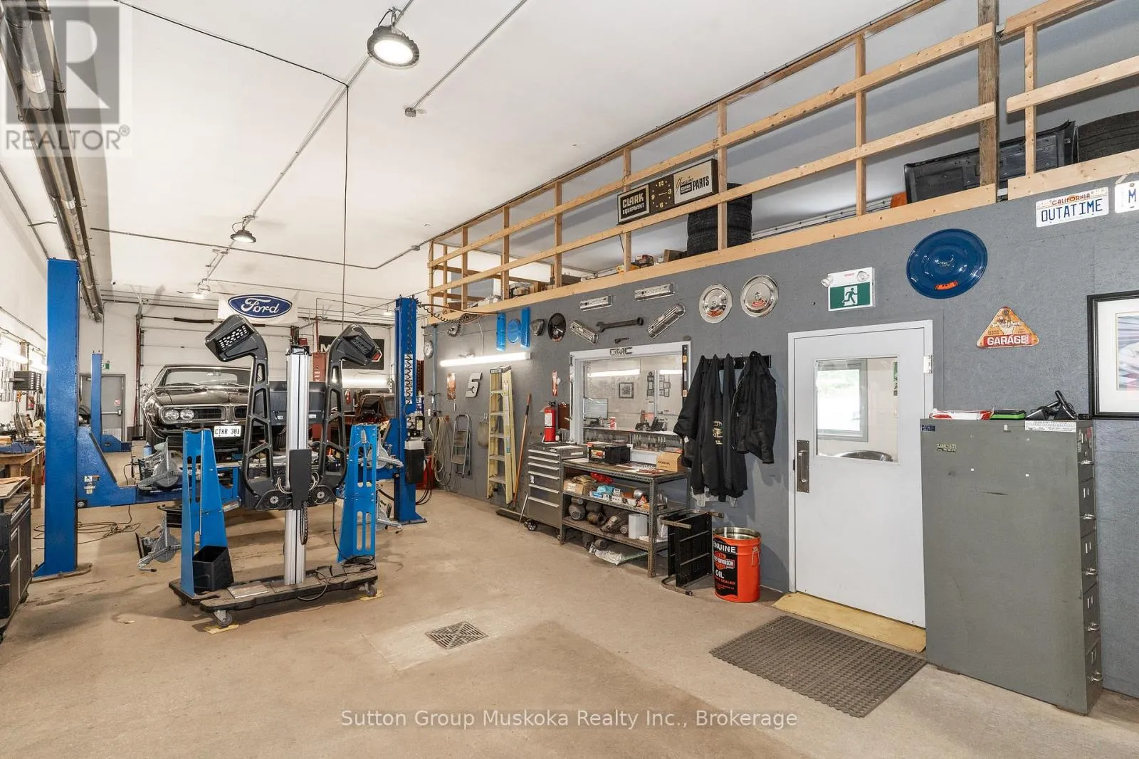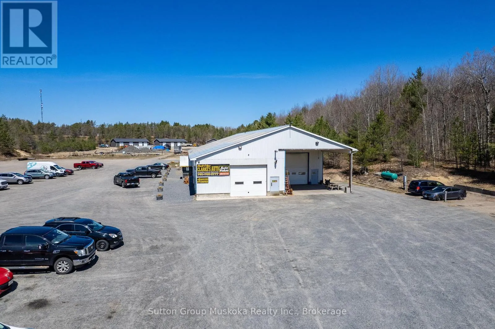 Cross Streets: Madill Church / Old Ferguson. ** Directions: Hwy 11 south of Huntsville to Madill Church. Currently used an Automotive repair business, this site was formerly used by a trucking company for many years. This would be an ideal fit for large Contracting companies/tow truck companies/landscaping yard etc. The building is 10,000 square feet, which would also offer the potential to divide the space for numerous uses. Features include 3 phase hydro service, office, reception, supply room, mezzanine storage and 2 washrooms. The addition added in 2000 offers 16-foot garage doors on the North and South sides of the building. Rear area has 18-foot ceilings. The front part of the building offers a 12-foot garage door. The building received numerous upgrades in 2019. What makes this building even more appealing is the 4+ acre lot it sits on which offers even more potential. This property is also located perfectly for companies needing quick highway access. Property is zoned UBE. Urban Business Employment. The building has been very well looked after. Adjacent 4+ acre lot is also available and is zoned UBE. (id:27476)