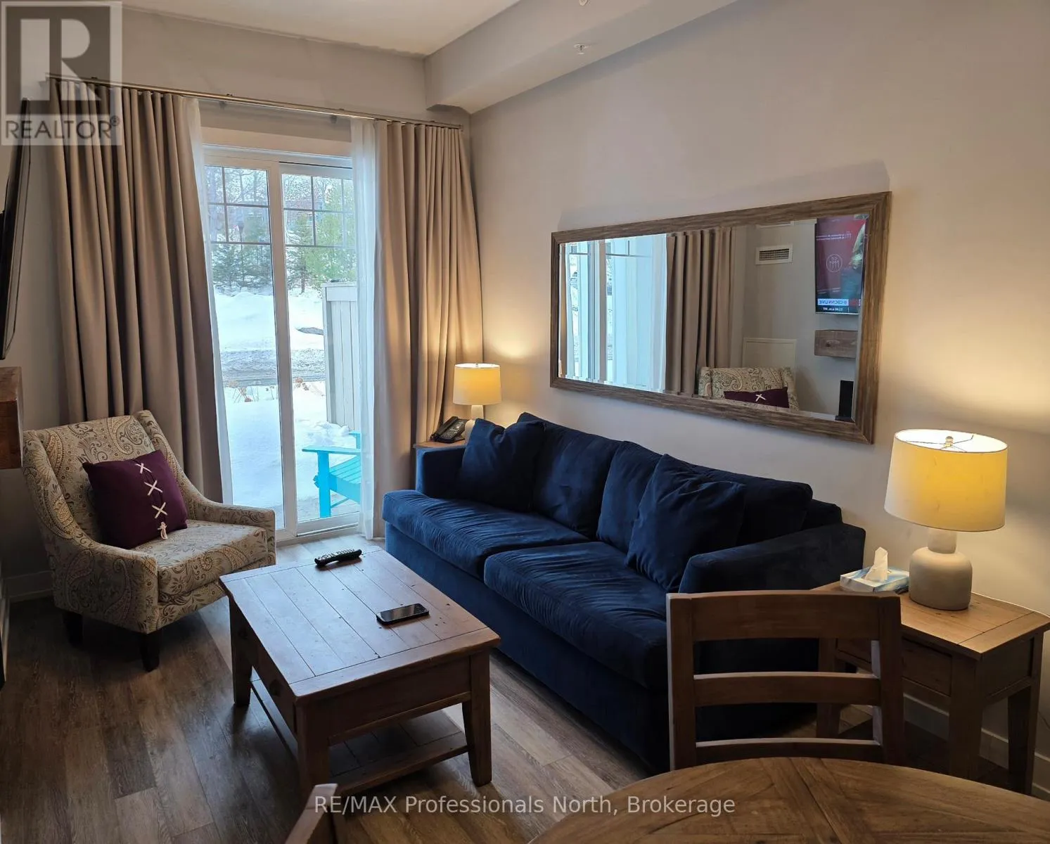 Cross Streets: Deerhurst Drive and Pen Lake Point Rd. ** Directions: Hwy 60, right onto Deerhurst Drive, right onto Pen Lake Point Road. Welcome to the newest building on the prestigious Deerhurst Resort, where luxury and recreation await! Step into this delightful ground floor unit featuring 1 bedroom and 1 bathroom. As a resident of this remarkable resort you will be surrounded by activities to do: outdoor pool, lakefront, indoor pool and hot tub. Stay active and fit with access to the well-equipped gym and tennis courts. Experience outdoor activities such as skating, cross-country skiing, snowshoeing, and hiking trails. For golf enthusiasts, Deerhurst Resort has a stunning golf course to perfect your swing. The convenience of a general store, three restaurants, a spa, an art gallery are all on the resort. Only 10 minutes to the Town of Huntsville with additional entertainment, shopping, and dining options, adds to the convenience of this remarkable location. The unit itself comes fully furnished. Relax in the cozy ambiance provided by the gas fireplace and appreciate the convenience of a kitchen with full sized appliances. The spacious bedroom features a comfortable Queen bed, while the large living room and dining area provide ample space for relaxation. Walk out to a patio, complete with two chairs, where you can soak in the surrounding beauty. The monthly rent covers essential utilities such as water, sewer, hydro, natural gas, cable TV, and internet, providing a hassle-free living experience. Additionally, you have full access to the resort's recreational facilities, further enhancing your enjoyment and relaxation. Deerhurst Resort offers the perfect blend of luxury, natural beauty, and endless entertainment options. Don't miss this opportunity to embrace the resort lifestyle and create lasting memories in this exceptional setting. (id:27476)