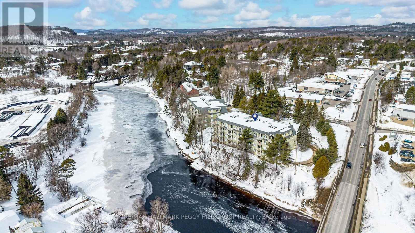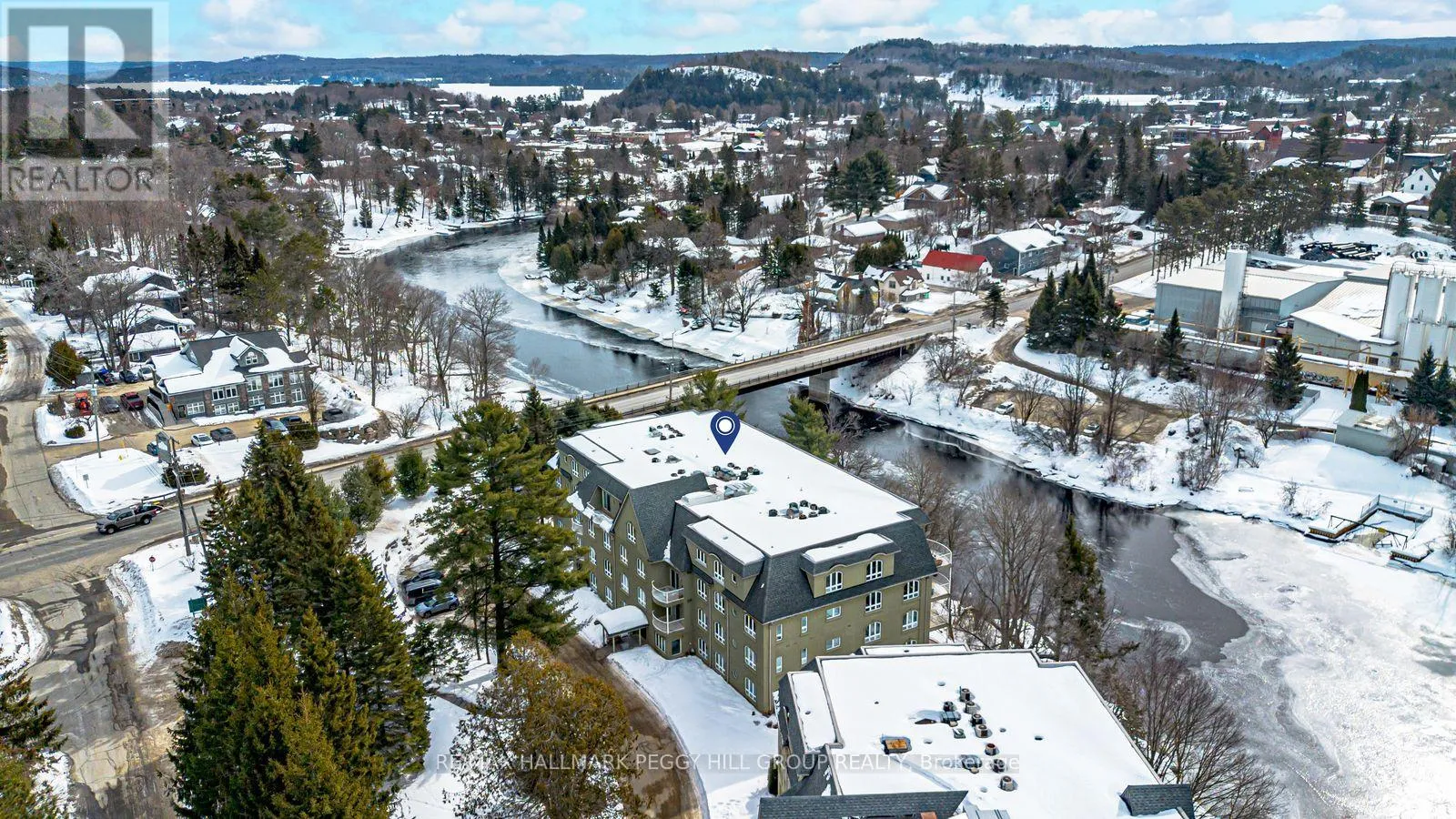 Cross Streets: Centre St N/Dairy Ln. ** Directions: West Rd./Centre St N/Dairy Ln. ENJOY WATERFRONT LIVING IN THE HEART OF MUSKOKA'S COTTAGE COUNTRY WITH EASY ACCESS TO NATURE & DOWNTOWN HUNTSVILLE! Experience waterfront living along the Muskoka River in this bright and inviting condo, tucked away on a quiet dead-end street yet just steps from the charming downtown core of Huntsville with riverside parks, boutique shops, dining, cultural centres, and community events. Enjoy endless outdoor adventures nearby, from scenic walks along the Hunters Bay Trail to sun-soaked days at Hutcheson Beach on Lake Vernon and exploring the natural beauty of Arrowhead Provincial Park. This well-maintained building offers shared waterfront amenities, including a private dock and community BBQ area, while your private open balcony provides a serene spot to take in the surroundings. Inside, oversized windows fill the space with light, highlighting upgraded hardwood floors throughout. The open-concept kitchen, living, and dining area features a centre island, generous prep space, and sliding glass walkout to the balcony, creating a seamless flow for entertaining or relaxing at home. A spacious bedroom and a flexible den are paired with a full 4-piece bathroom featuring a tub, and convenience is complete with a dedicated underground parking space and additional visitor parking available. This Muskoka #HomeToStay offers an inviting cottage country lifestyle, blending tranquil waterfront living, endless outdoor adventures, and the charm of a vibrant community right outside your door. (id:27476)