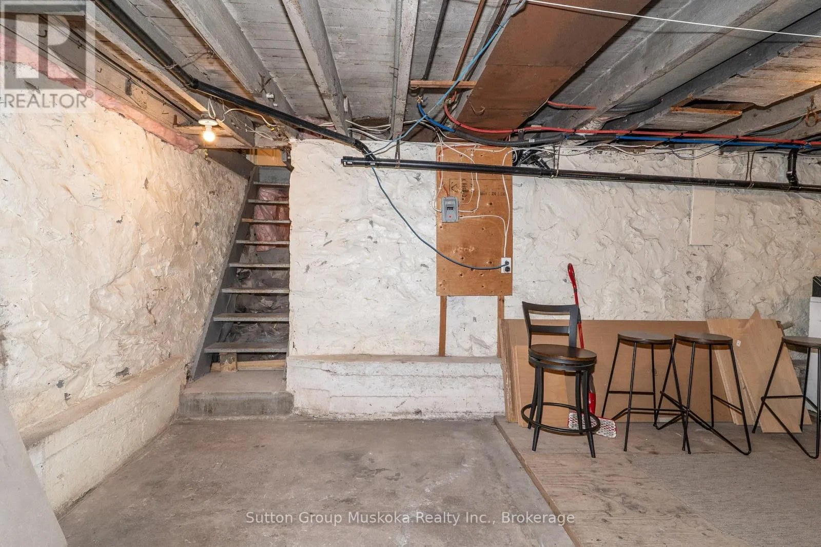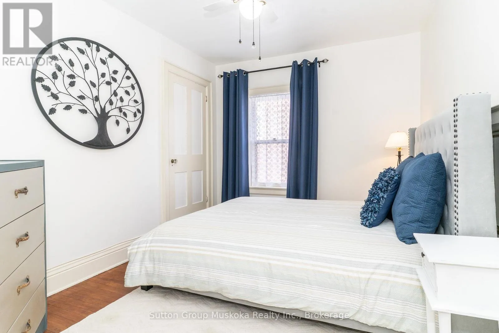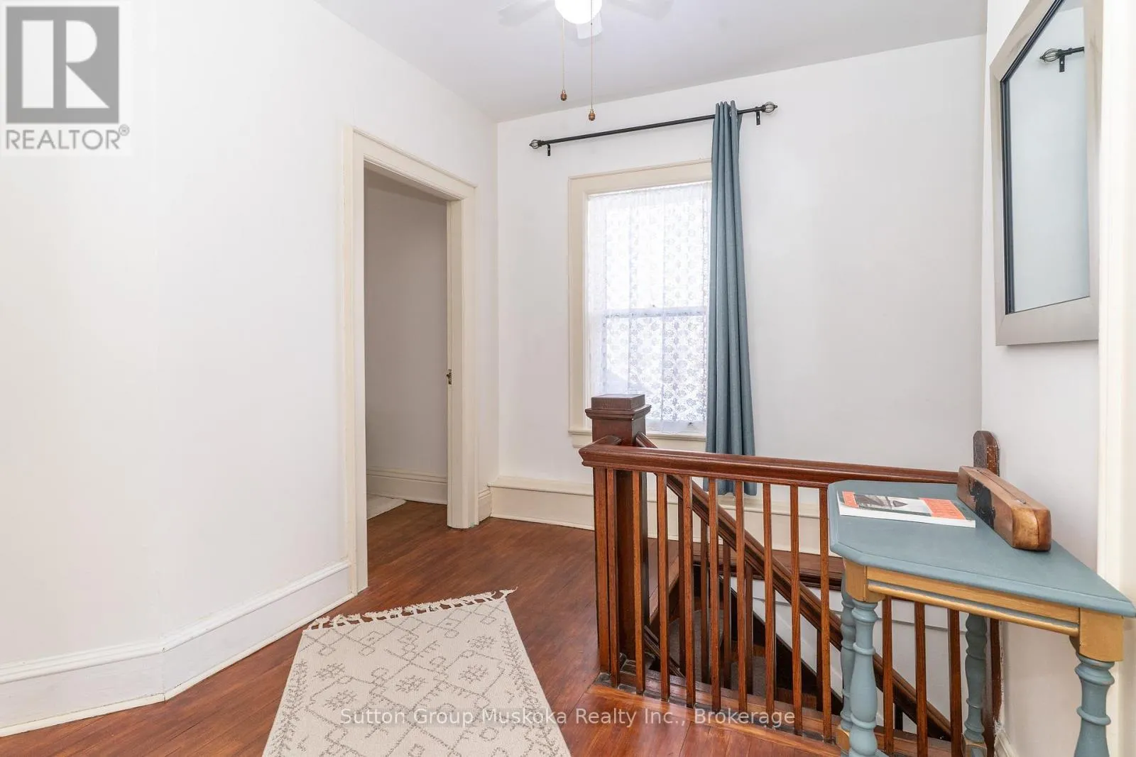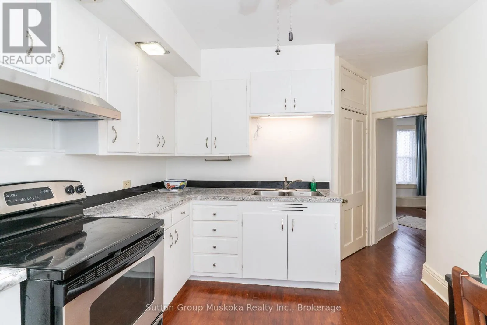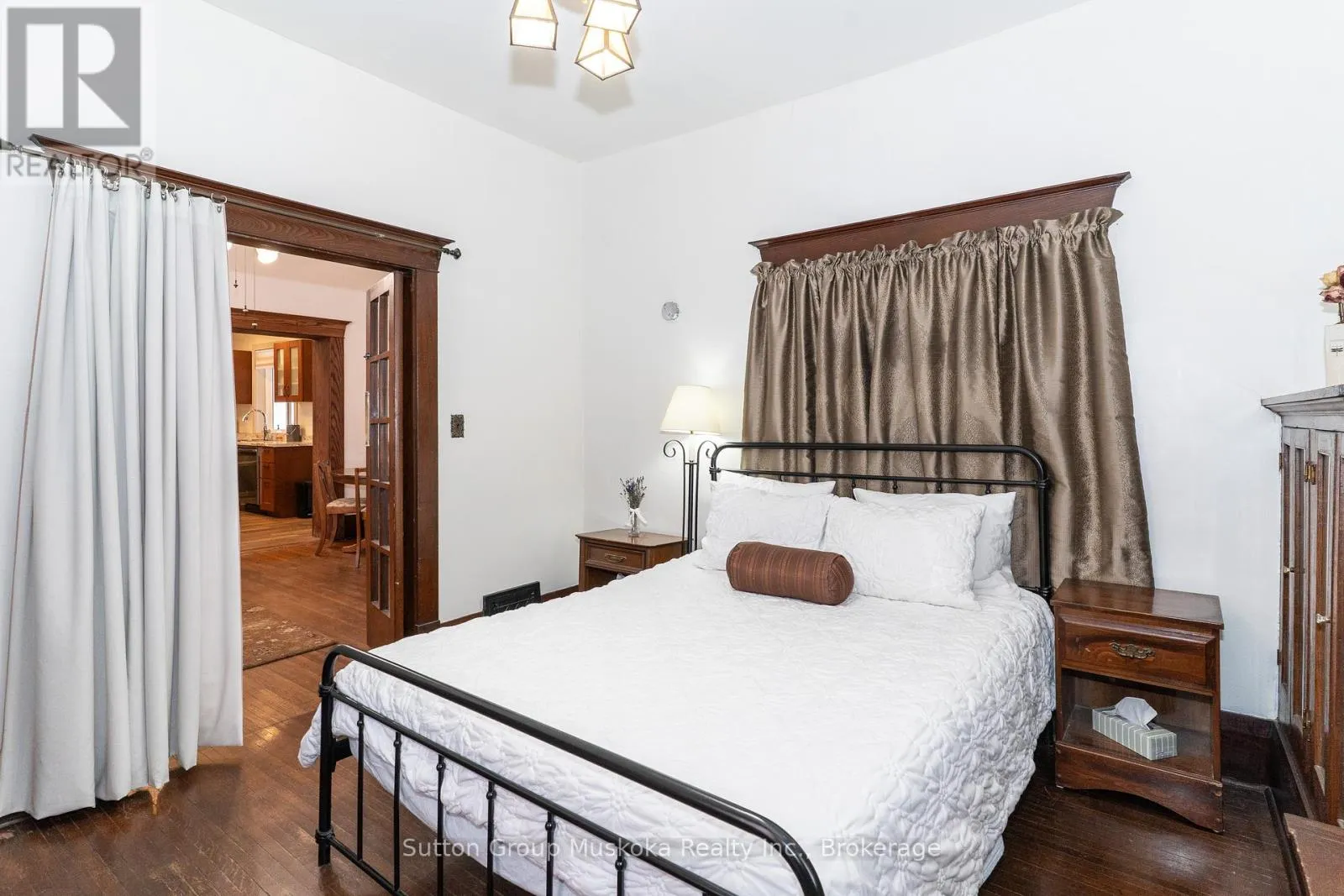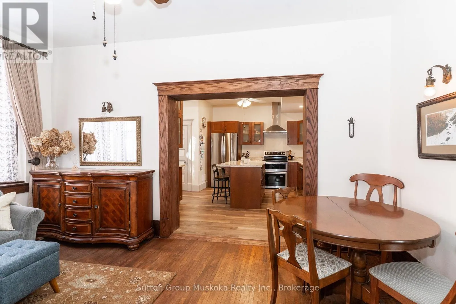 Cross Streets: Lorne St and Mary St W. ** Directions: Main St to Lorne St S to Mary St W to Sign on Property. Step up to this Circa 1910 elegant home, & admire the sophisticated craftsmanship of yesteryear's original woodwork, skilled stone masonry two-storey design. Main front foyer opens to 9' ceilings throughout, featuring built-in oak bookshelves with glass doors, oak flooring, evoking nostalgic memories of the "good ole days". Main floor bedroom boasts of antique built-ins; a 4-piece bathroom, & an oak door that can lead to the upper unit, if the original oak stairs (stored) are re-installed. Living room's gas fireplace offers ambiance, supplementing 2-stage gas furnace (2025). The huge dining room with 9' bay window speaks of social gatherings of the elite. Continuing to the expansive kitchen, upgraded maple cabinetry with glass door uppers, SS chimney range hood, easy to care for counter tops, stainless steel appliances, walk-in pantry, plus entry to the main floor laundry room. A separate private entrance leads to the upper two-bedroom, 3-piece bathroom, living room apartment, boasting its own eat-in kitchen, SS appliances & walk-in pantry with maple hardwood flooring throughout. The larger bedroom has a unique feature: a gabled storage space that was once a play room! This spacious home offers two covered porches (front and the back), with tongue & groove wood flooring (hemlock at front). The wrap-around back porch also displays 8"x8" Douglas Fir posts, pine D-channel siding; creating a poetic tranquil setting with view of Lion's Lookout. Additional features, original garage with loft, built-in workbench, aluminum roofing, extending over expanded garage. The potential of developing a carriage home. Asphalt roof, cedar shake accents & original locally-produced brick add to the magnificent appeal of this home. This legal duplex an excellent income producer but also perfect for a two-generation home. Asphalt driveway offers plenty of parking. 5-minute walk to downtown Huntsville's vibrant life: restaurants, shops, arts & outdoor sports for which Muskoka is famous. (id:27476)