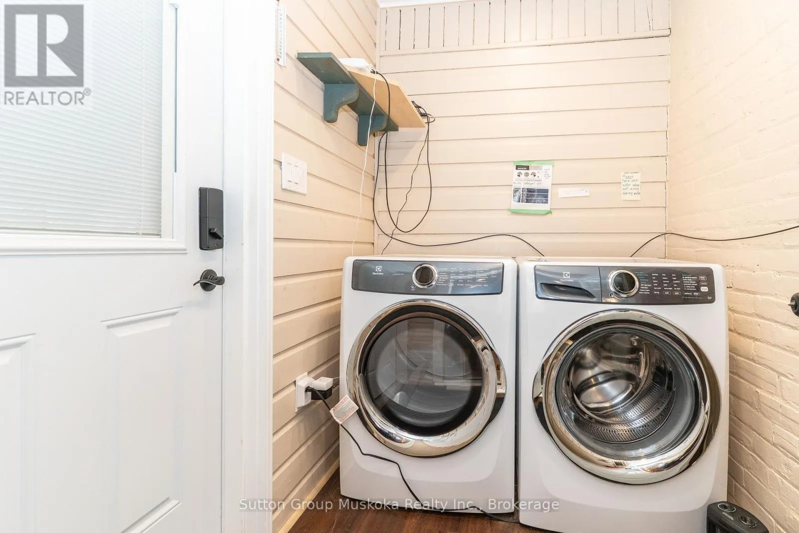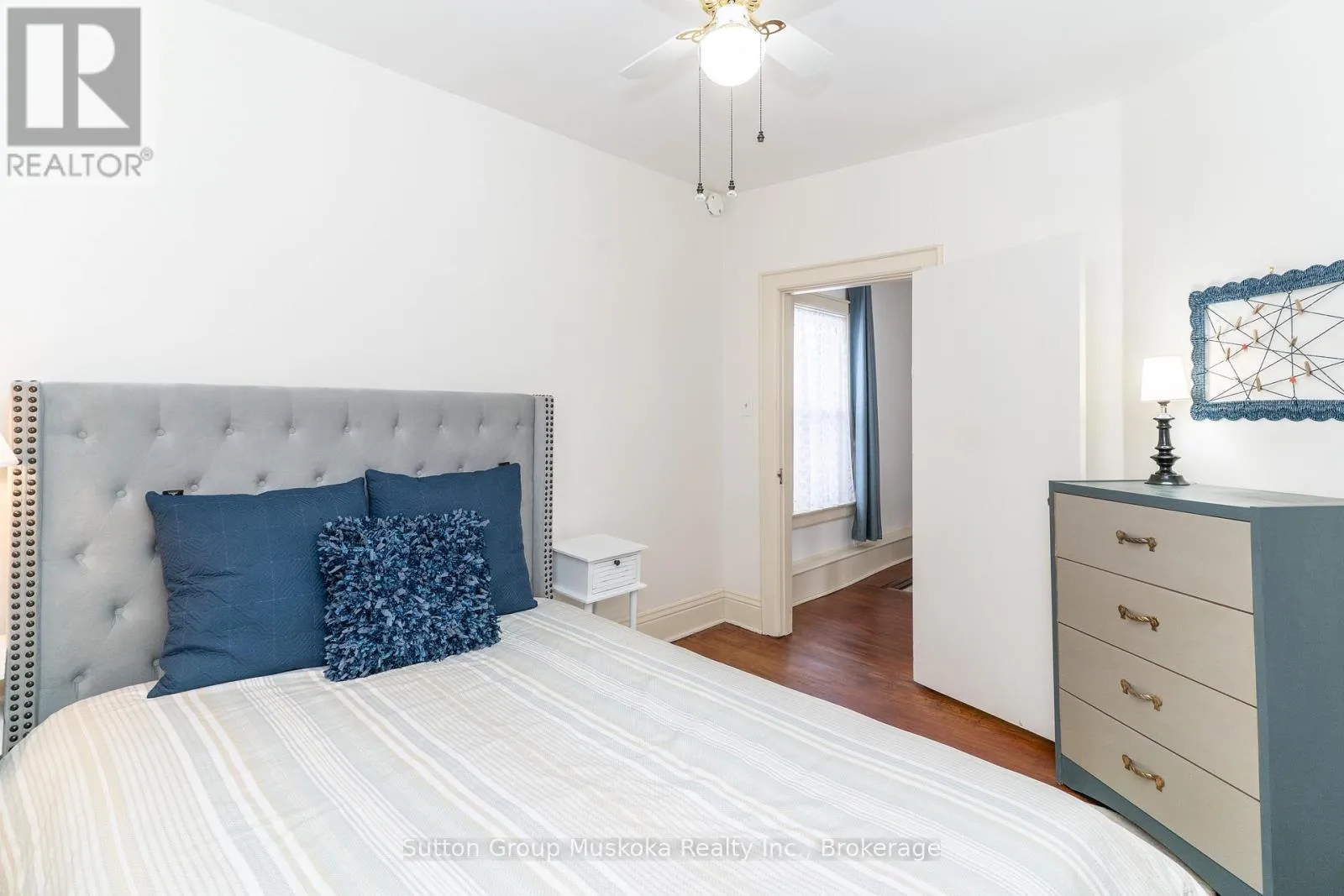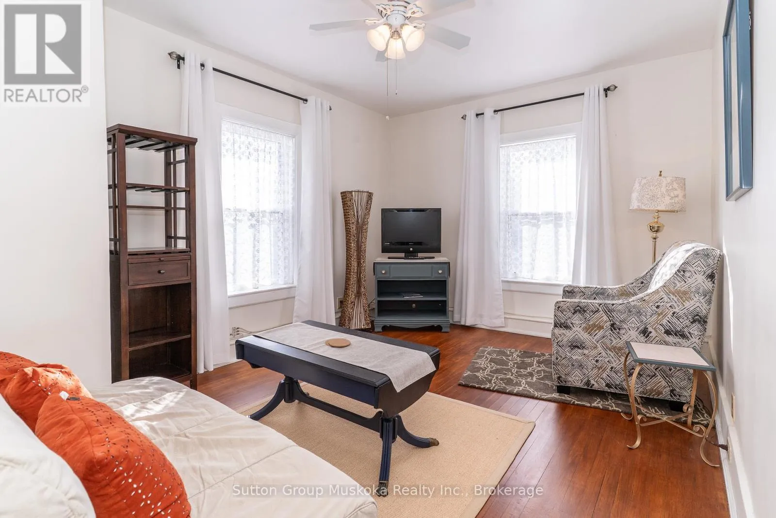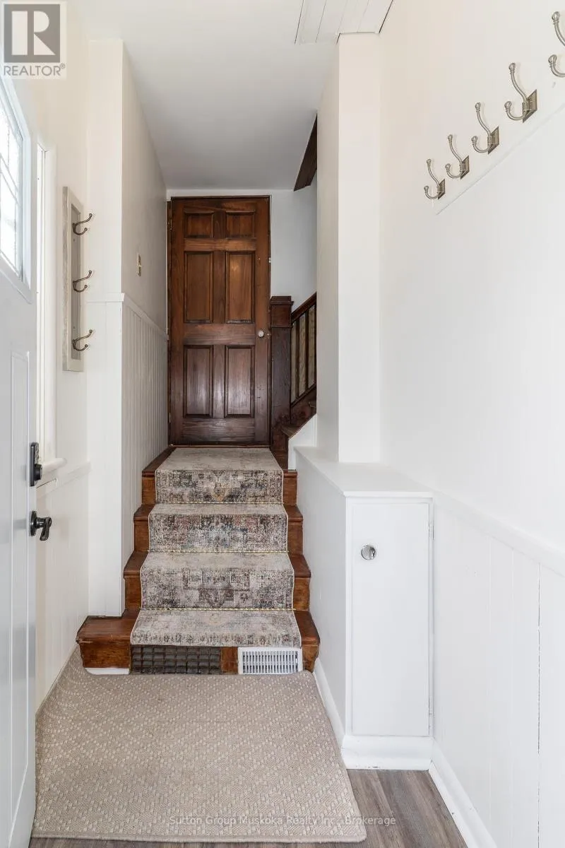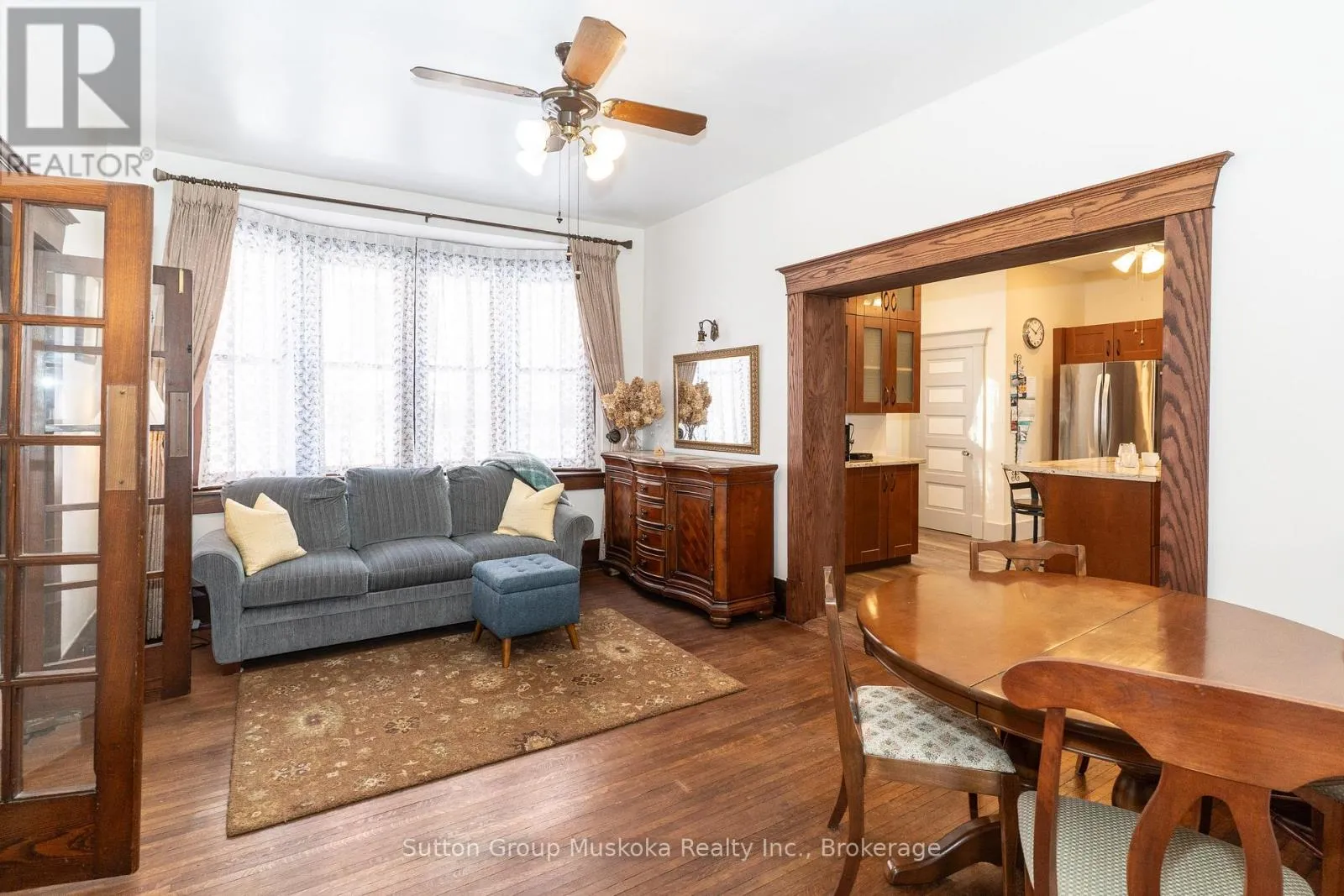 Cross Streets: Lorne St and Mary St W. ** Directions: Main St to Lorne St S to Mary St W to Sign on Property. Step up to this Circa 1910 elegant home, & admire the sophisticated craftsmanship of yesteryear's original woodwork, skilled stone masonry two-storey design. Main front foyer opens to 9' ceilings throughout, featuring built-in oak bookshelves with glass doors, oak flooring, evoking nostalgic memories of the "good ole days". Main floor bedroom boasts of antique built-ins; a 4-piece bathroom, & an oak door that can lead to the upper unit, if the original oak stairs (stored) are re-installed. Living room's gas fireplace offers ambiance, supplementing 2-stage gas furnace (2025). The huge dining room with 9' bay window speaks of social gatherings of the elite. Continuing to the expansive kitchen, upgraded maple cabinetry with glass door uppers, SS chimney range hood, easy to care for counter tops, stainless steel appliances, walk-in pantry, plus entry to the main floor laundry room. A separate private entrance leads to the upper two-bedroom, 3-piece bathroom, living room apartment, boasting its own eat-in kitchen, SS appliances & walk-in pantry with maple hardwood flooring throughout. The larger bedroom has a unique feature: a gabled storage space that was once a play room! This spacious home offers two covered porches (front and the back), with tongue & groove wood flooring (hemlock at front). The wrap-around back porch also displays 8"x8" Douglas Fir posts, pine D-channel siding; creating a poetic tranquil setting with view of Lion's Lookout. Additional features, original garage with loft, built-in workbench, aluminum roofing, extending over expanded garage. The potential of developing a carriage home. Asphalt roof, cedar shake accents & original locally-produced brick add to the magnificent appeal of this home. This legal duplex an excellent income producer but also perfect for a two-generation home. Asphalt driveway offers plenty of parking. 5-minute walk to downtown Huntsville's vibrant life: restaurants, shops, arts & outdoor sports for which Muskoka is famous. (id:27476)