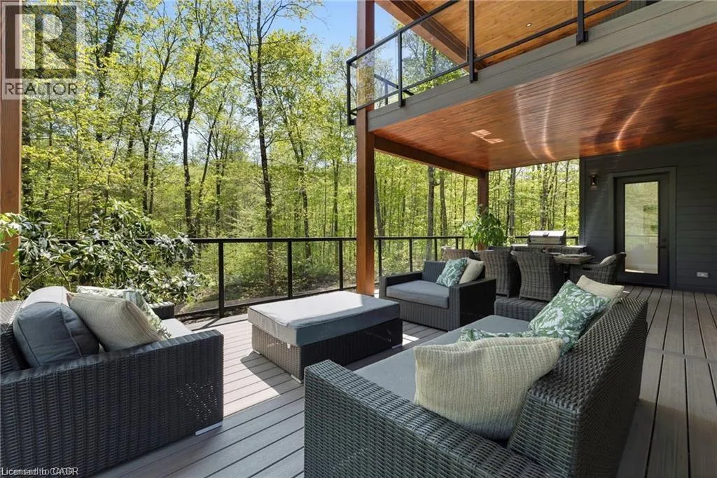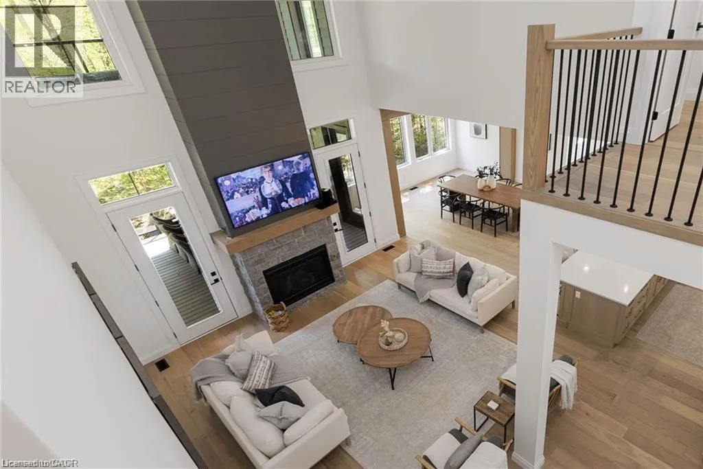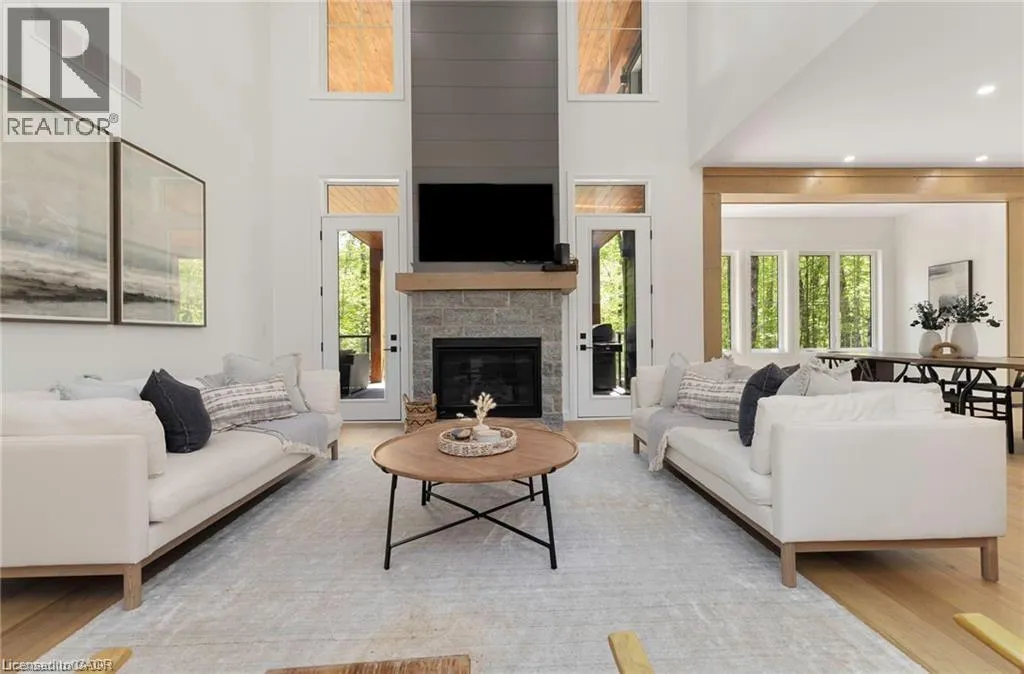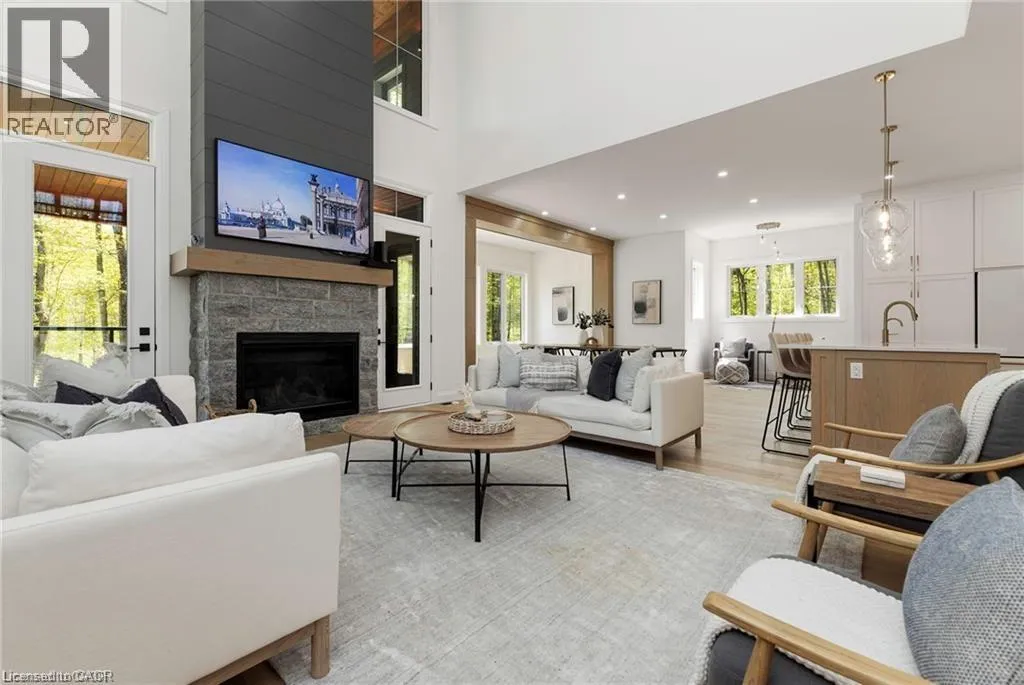 St Andrew's Circle to St Georges This stunning residence embodies the epitome of modern luxury, seamlessly integrated into a breathtaking natural landscape. Nestled among towering trees and backing onto Hole 11 of Deerhurst Highlands Golf Course, this 6800+ Square foot masterpiece offers 6 spacious bedrooms and 4.5 bathrooms, privacy, tranquility, and every imaginable comfort. The open-concept main floor features pre-engineered oak flooring and a striking granite stone fireplace that anchors the living space. The gourmet kitchen is equipped with top-tier appliances, including a double wall oven, French door fridge, and built-in coffee maker. It also includes quartz countertops, a walk-in pantry, and custom cabinetry designed for both beauty and functionality. The thoughtful layout offers both a main floor and 2nd floor primary suite, each complete with luxurious en-suites featuring steam showers (main floor only) and soaker tubs. Every bathroom exudes spa-like sophistication. Enjoy 2 cozy fireplaces, 2 balconies, and a walk-out patio inviting you to relax and take in the beauty of the surrounding forest. The 2nd floor offers 3 additional bedrooms and 2 bathrooms, allowing for additional family to enjoy their own luxurious spaces. The walk-out lower level features in-floor heating, a stylish wet bar, additional bedrooms, and a generous living space ideal for entertaining. The heated 3 bay garage, also with in-floor heating, provides exceptional comfort and convenience year-round. Outside, the landscaped grounds are perfect for evenings spent under the stars. Conveniently located near schools, shopping, and scenic trails, yet tucked away in a quiet enclave, this home offers the perfect balance of seclusion and accessibility. With easy highway access, exploring all that Huntsville and Muskoka have to offer has never been easier. Don't miss your chance to own this rare retreat where luxury meets nature. Prepare to fall in love with the unparalleled beauty and craftsmanship of this home. (id:27476)