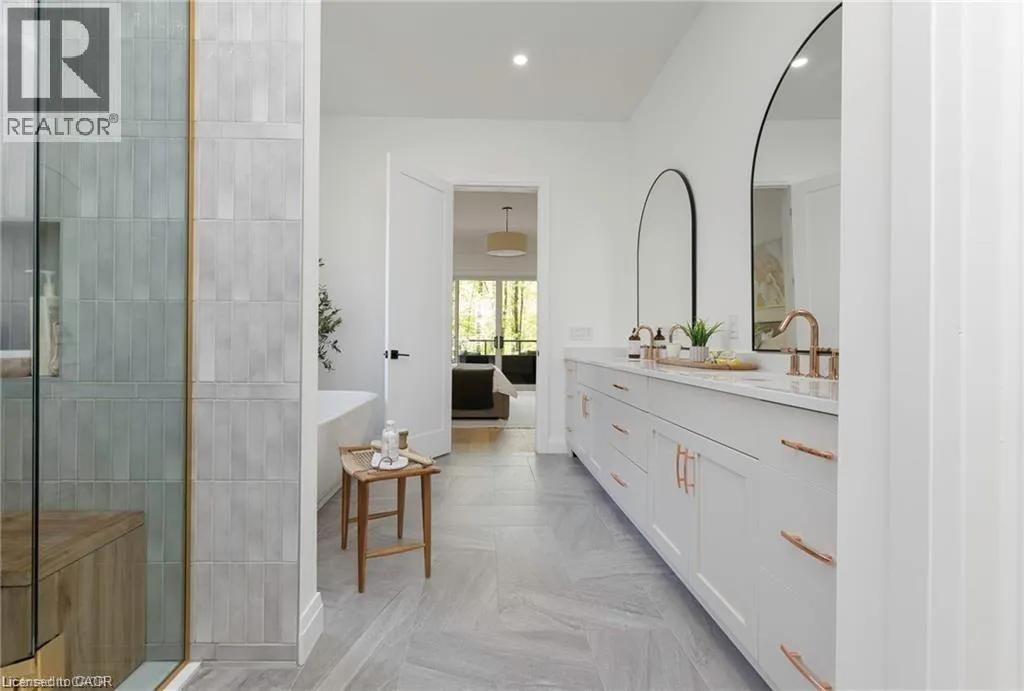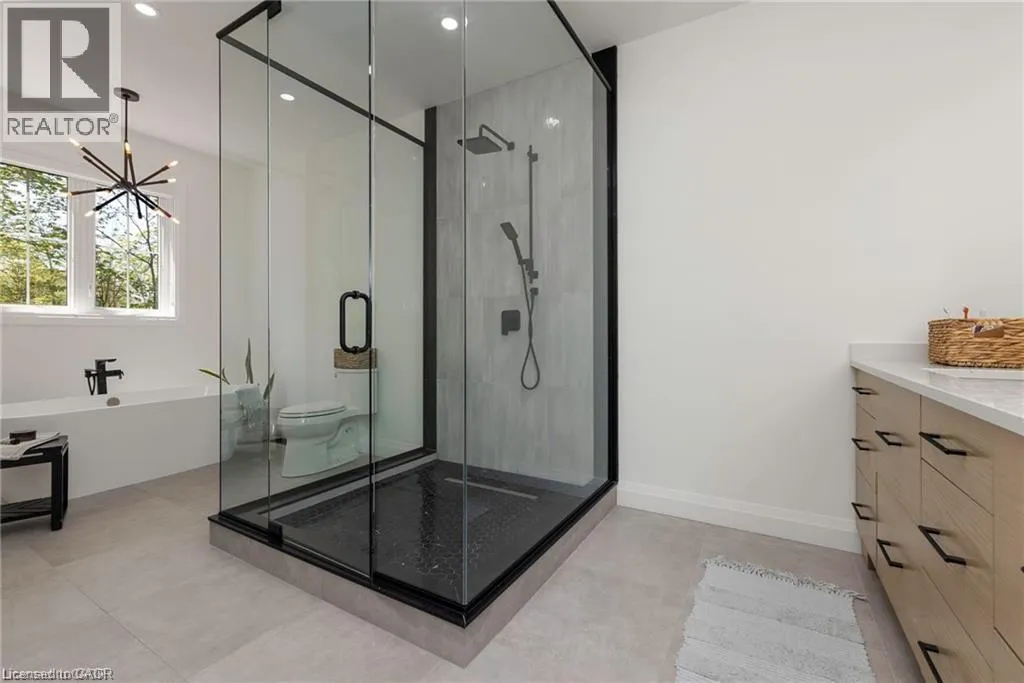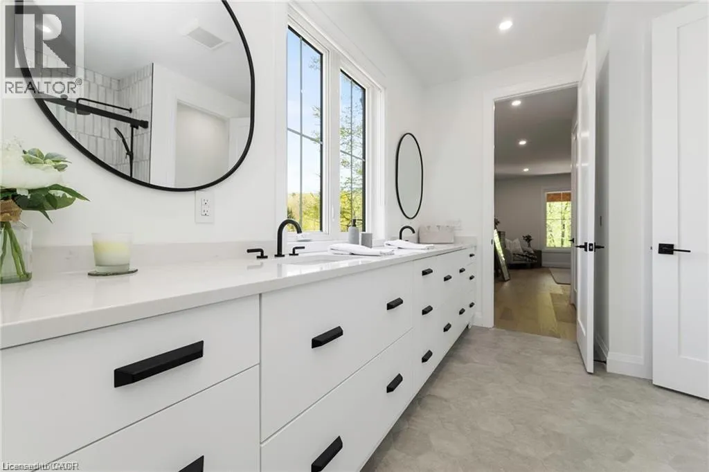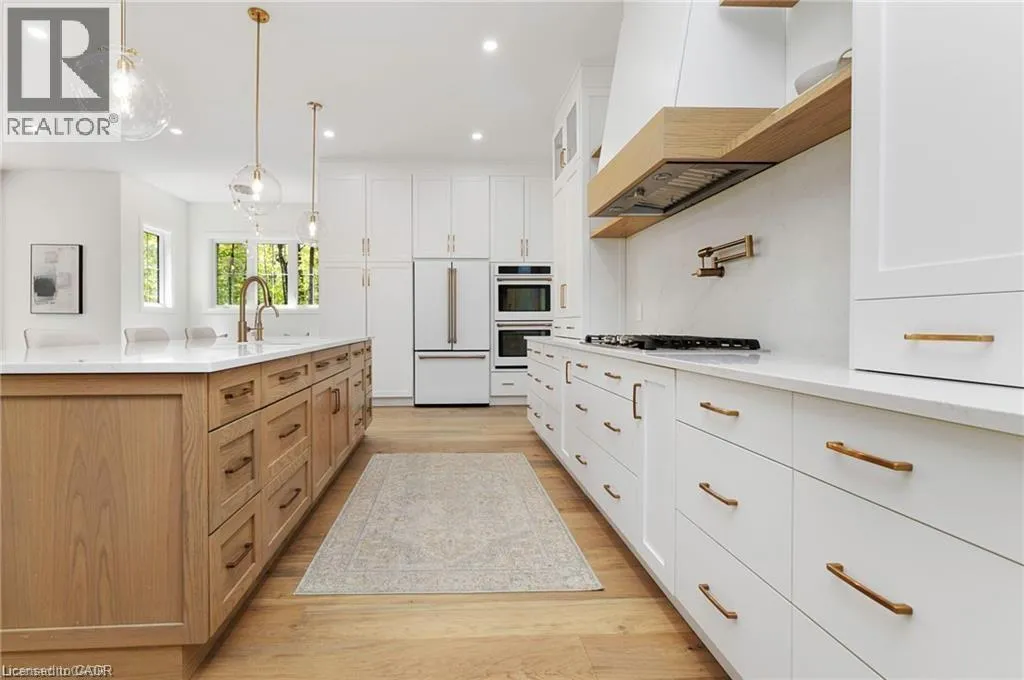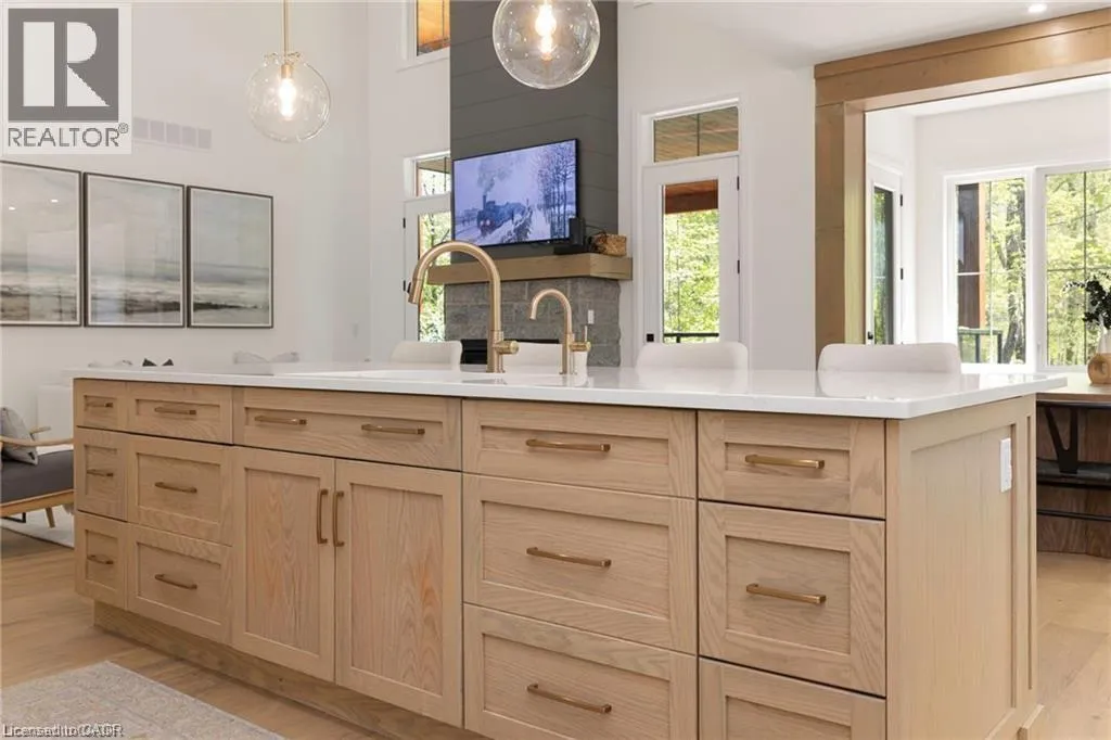 St Andrew's Circle to St Georges This stunning residence embodies the epitome of modern luxury, seamlessly integrated into a breathtaking natural landscape. Nestled among towering trees and backing onto Hole 11 of Deerhurst Highlands Golf Course, this 6800+ Square foot masterpiece offers 6 spacious bedrooms and 4.5 bathrooms, privacy, tranquility, and every imaginable comfort. The open-concept main floor features pre-engineered oak flooring and a striking granite stone fireplace that anchors the living space. The gourmet kitchen is equipped with top-tier appliances, including a double wall oven, French door fridge, and built-in coffee maker. It also includes quartz countertops, a walk-in pantry, and custom cabinetry designed for both beauty and functionality. The thoughtful layout offers both a main floor and 2nd floor primary suite, each complete with luxurious en-suites featuring steam showers (main floor only) and soaker tubs. Every bathroom exudes spa-like sophistication. Enjoy 2 cozy fireplaces, 2 balconies, and a walk-out patio inviting you to relax and take in the beauty of the surrounding forest. The 2nd floor offers 3 additional bedrooms and 2 bathrooms, allowing for additional family to enjoy their own luxurious spaces. The walk-out lower level features in-floor heating, a stylish wet bar, additional bedrooms, and a generous living space ideal for entertaining. The heated 3 bay garage, also with in-floor heating, provides exceptional comfort and convenience year-round. Outside, the landscaped grounds are perfect for evenings spent under the stars. Conveniently located near schools, shopping, and scenic trails, yet tucked away in a quiet enclave, this home offers the perfect balance of seclusion and accessibility. With easy highway access, exploring all that Huntsville and Muskoka have to offer has never been easier. Don't miss your chance to own this rare retreat where luxury meets nature. Prepare to fall in love with the unparalleled beauty and craftsmanship of this home. (id:27476)