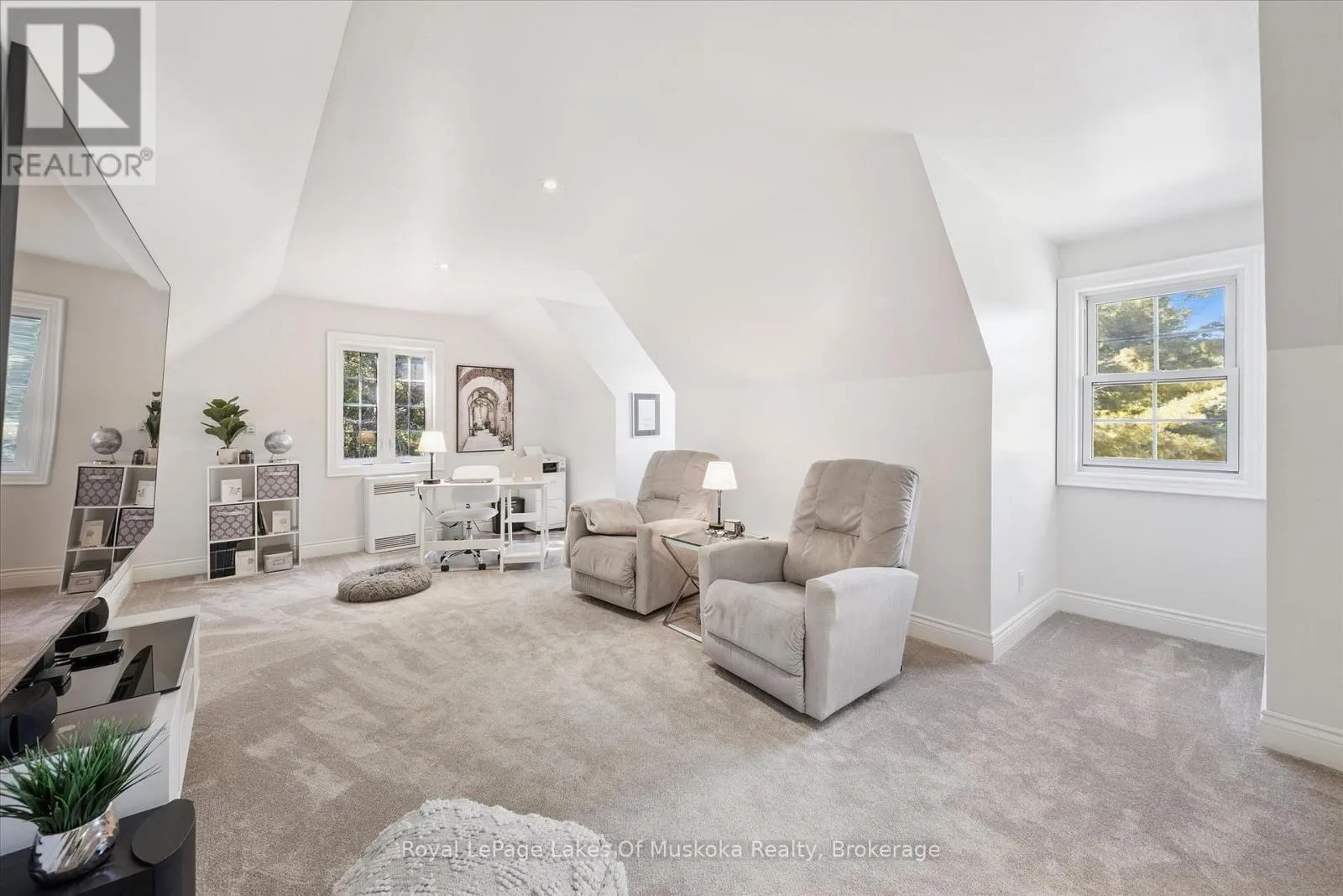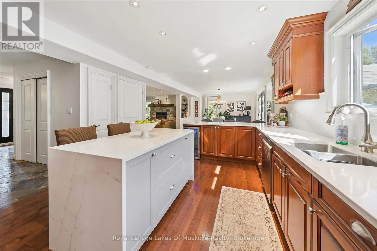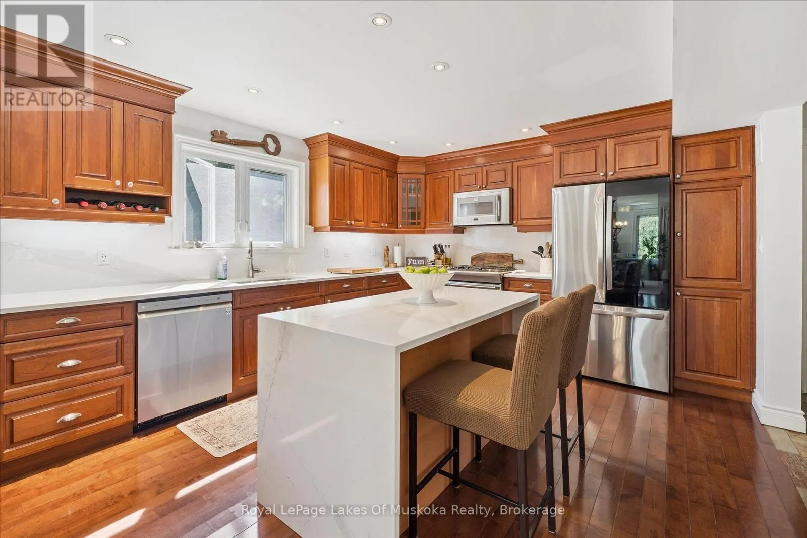 Cross Streets: Brunel and Renwick. ** Directions: Brunel Rd to Renwick Dr to Thomas. It starts with the drive in. Just minutes from Huntsville's downtown, you arrive in Riverview Estates, where the pace slows and nature feels close. The Muskoka River winds nearby, connecting Fairy Lake to Mary Lake, quietly shaping the lifestyle around it. A granite walkway leads you to the front porch, the kind of place where mornings begin with coffee and evenings end watching deer pass through. Inside, the home opens into a warm, connected living and dining space, anchored by a stone, wood-burning fireplace. Hardwood floors lead into a kitchen that's both stylish and functional, with new quartz countertops, a gas oven, a large island, and views into the wooded backyard. Upstairs offers three generous bedrooms, including a primary suite with ensuite and double sinks, plus updated bathrooms throughout. The lower level adds even more room to live, with a finished basement featuring a rec room, bedroom, office space, and full bath. Above the garage, a bonus room with its own heat creates the perfect space for movie nights, a playroom, or a quiet office. Out back, privacy takes over. A tree-lined yard, pool with a new heater, large deck, and screened-in shed set the stage for summer days and relaxed evenings. With major updates already done, including A/C, roof, Generac system, and hot water on demand, the focus stays on living, not maintaining. Being just across from Riverside Public School, over 50 acres of trails, plus nearby boat launches, complete the picture. This is where everyday life starts to feel like Muskoka. (id:27476)