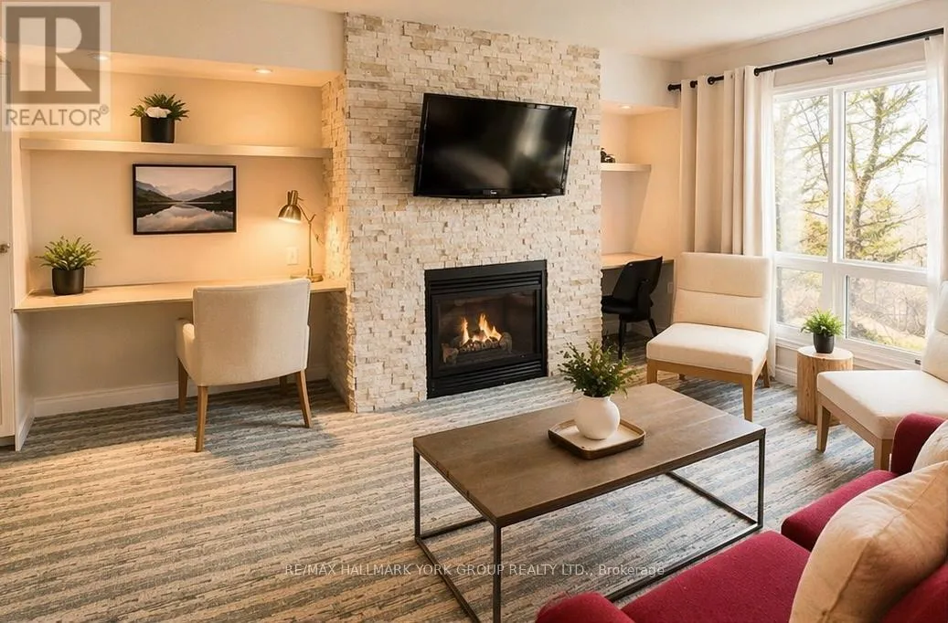Cross Streets: Canal Rd/Hwy 60. ** Directions: Hwy 60 east from Huntsville, Turn right on Canal Rd. Keep left onto Deeerhurst Dr. First building. Experience resort-style living on Peninsula Lake in this furnished third-floor Summit Lodge condo at Deerhurst Resort. This bright suite features a private balcony with lake and garden views, a cozy gas fireplace and a bedroom furnished with two double beds.All-inclusive lease includes heat, hydro, water, cable and internet. Enjoy access to Deerhurst Resort amenities including pools, fitness centre, waterfront, trails, restaurants and year-round activities.Located just minutes to Downtown Huntsville, shopping, dining and Huntsville District Memorial Hospital. A great opportunity to enjoy Muskoka waterfront living with the convenience of nearby town amenities. (id:27476)
