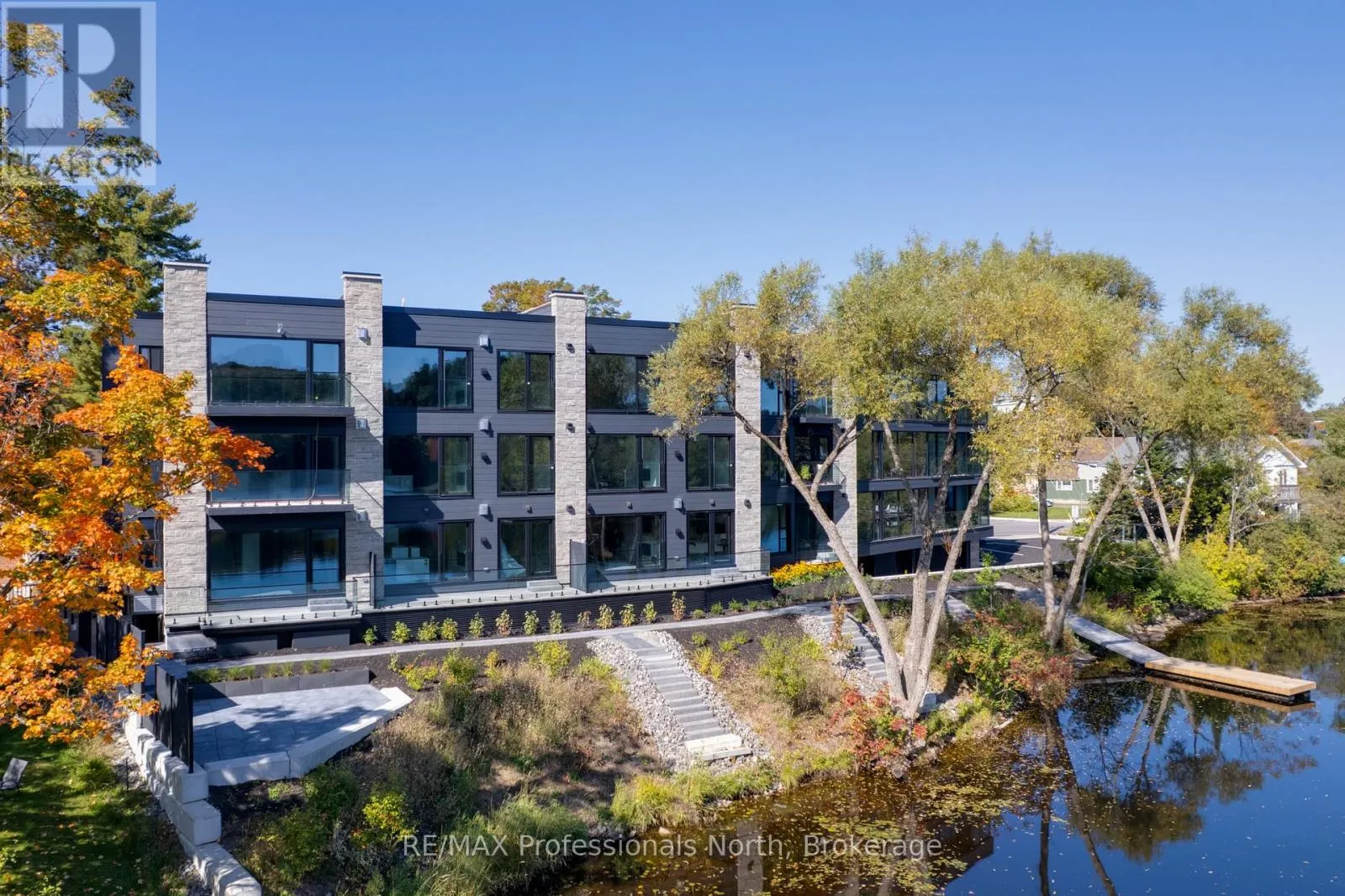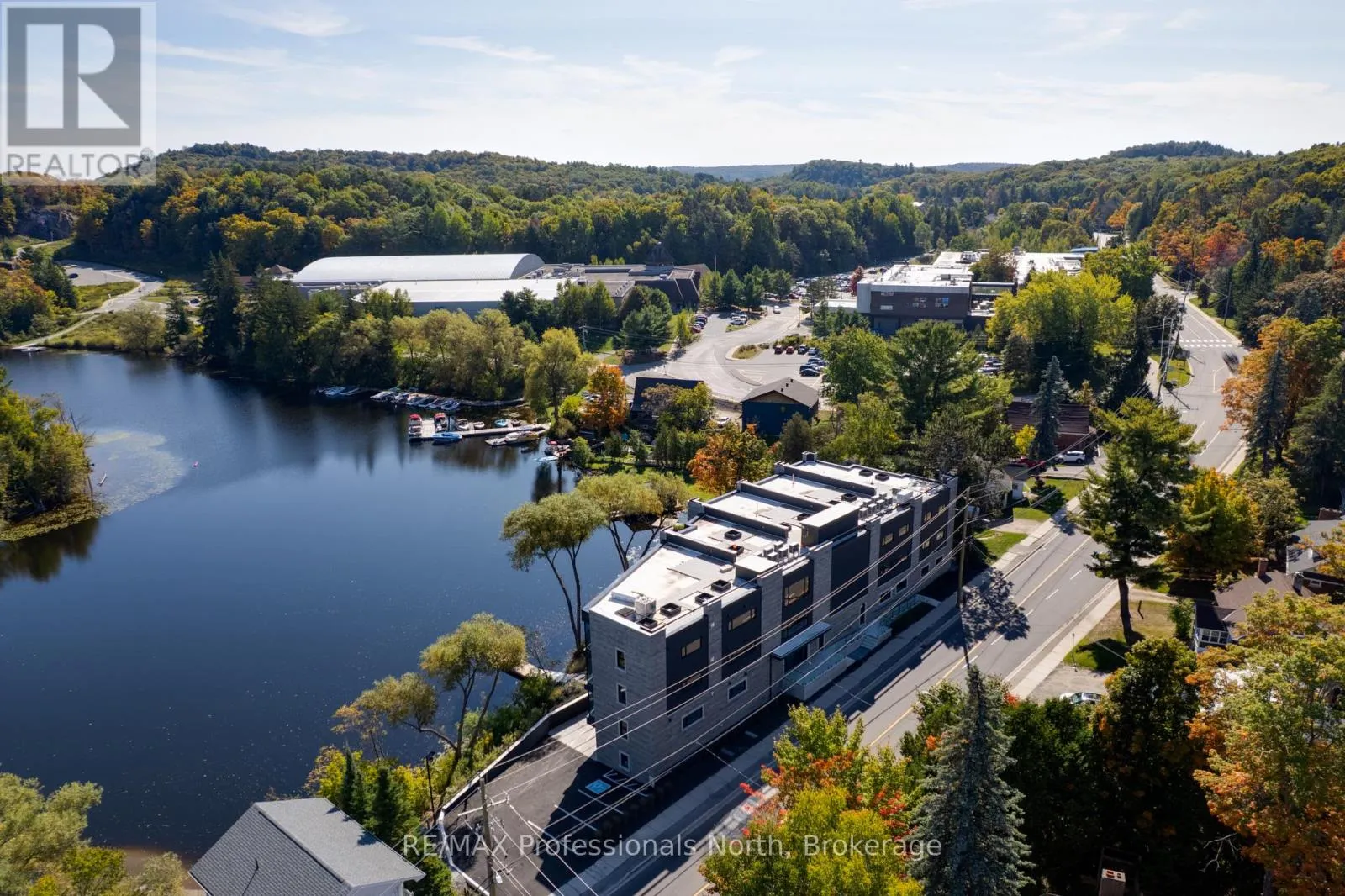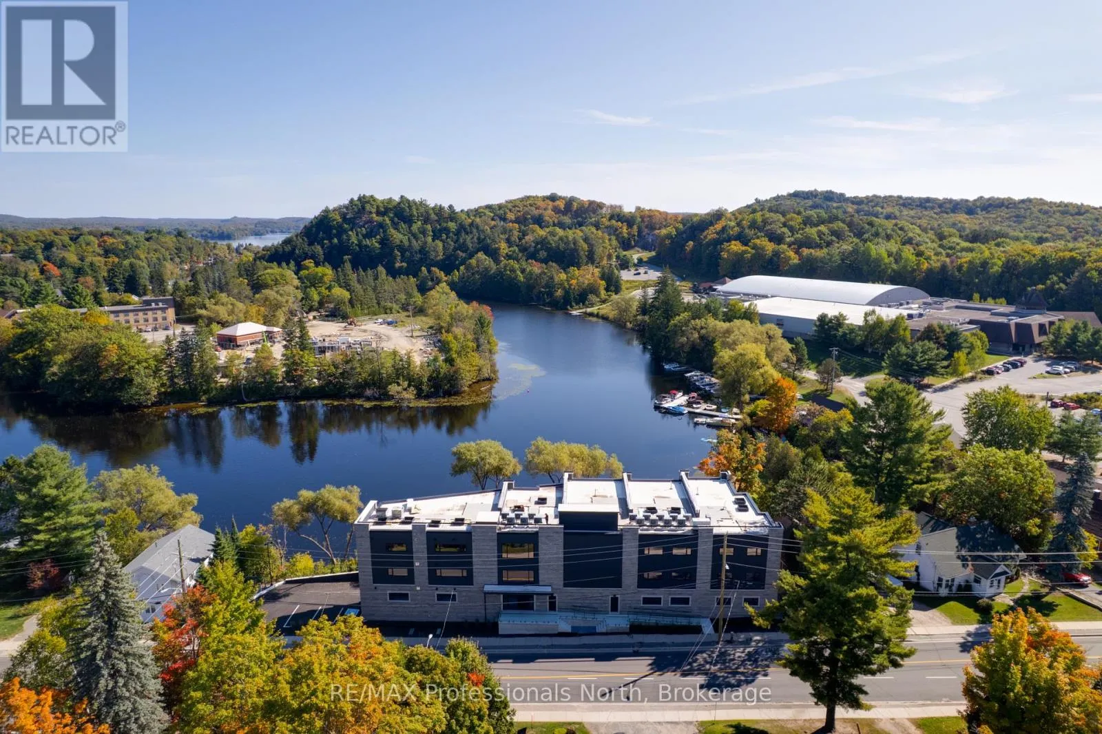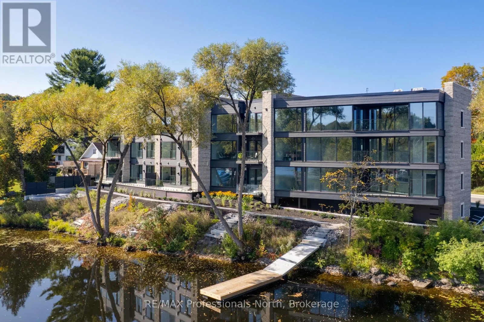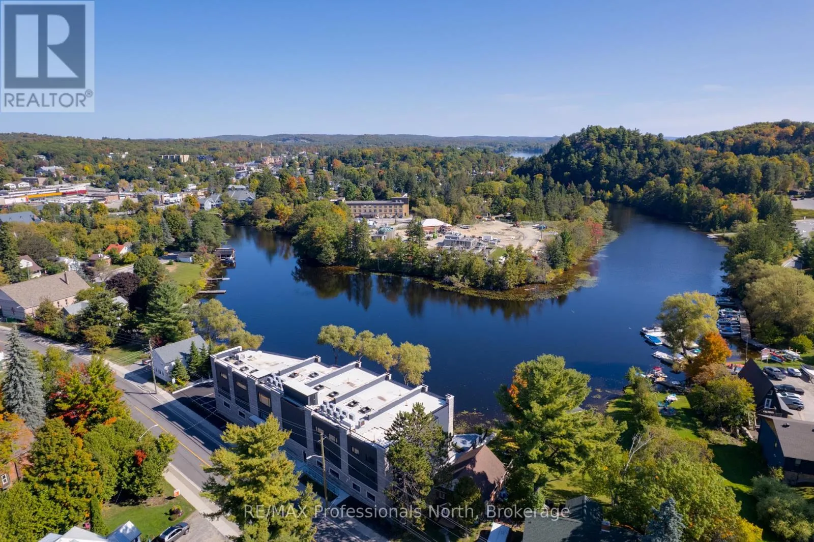 Cross Streets: Brunel and Veterans Way. ** Directions: Brunel Road to Property. Welcome to Muskoka Riverbend Condominiums at 32 Brunel Road in Huntsville. This beautifully appointed 1-bedroom plus den suite offers first floor convenience with an exceptional blend of comfort, style, and waterfront tranquility in an exclusive boutique building of just 15 residences.Suite 104 features a spacious open-concept layout with a modern kitchen, generous living and dining areas, and a private large balcony overlooking the Muskoka River-perfect for relaxing or entertaining. The versatile den provides an ideal space for a home office or guest area.Enjoy upscale finishes throughout, including custom cabinetry, engineered wide plank hardwood flooring, large format tile in the bathroom, and premium plumbing fixtures.Located just a short walk to vibrant Main Street Huntsville, you'll have convenient access to shops, dining, and everyday amenities while enjoying the serenity of riverside living.The unit includes one underground parking space and is available soon for a minimum one-year lease.Experience refined Muskoka living in one of Huntsville's most desirable condominium communities. (id:27476)