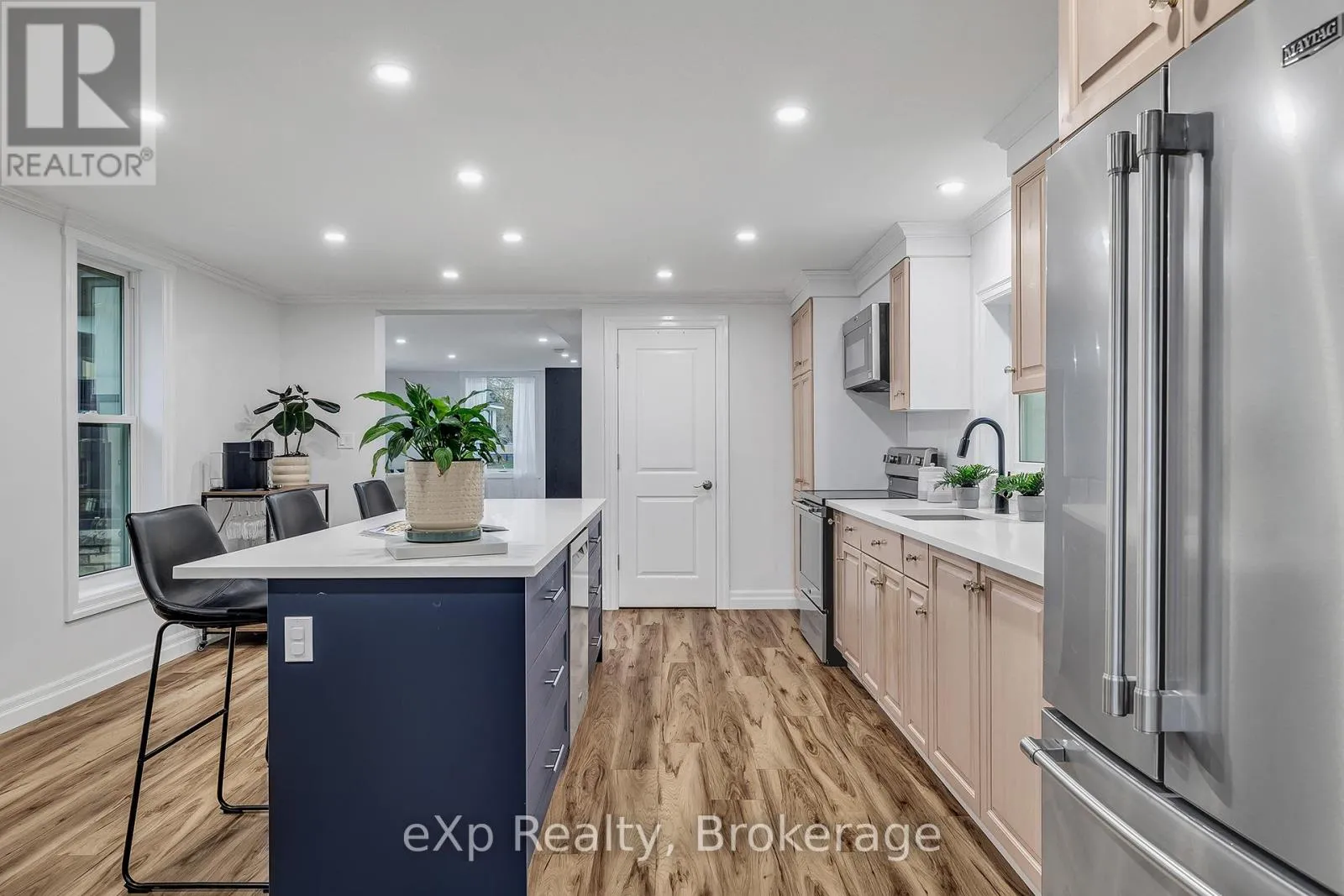 Cross Streets: Brussels Line & Queen St. ** Directions: Heading south on Turnberry Street, turn east onto Queen, then turn North onto Princess St. Property is half way down street on left. Welcome to this charming and fully renovated brick family home in the heart of Brussels. Fresh, bright, and thoughtfully designed for comfort and everyday living, this home combines modern style with timeless character. COMPLETELY RENOVATED FROM TOP TO BOTTOM, it features all-newelectrical and plumbing systems (2021), updated ductwork with added vents upstairs, and new insulation in key areas, including spray foam around thefoundation and in the attic (2021). The main floor has been completely gutted and rebuilt with new joists, leveled subfloors, and new flooring throughout the kitchen, bathroom (2025), entryway, and living room (2021). The spacious eat-in kitchen showcases brand-new cabinetry, stainless steelappliances, and quality finishes, with a large island that's perfect for cooking and gathering (2021). A new patio door leads to the newly built deck (2025) with apoured foundation around the kitchen addition (2021), ideal for entertaining, summer BBQs, or relaxed evenings outdoors. Also on the main level, you'llfind a convenient bathroom with laundry, a versatile family room or formal dining area, and a cozy living room filled with natural light and plentyof pot lights to keep things bright and welcoming. Following the renovated stairs (2025), you'll be met with two comfortable bedrooms and an updated bathroom (2021) (with plumbing readyfor a future shower if desired), plus additional storage to suit a growing family's needs. Step outside to a large private backyard featuring a shedand firepit area-a perfect retreat for relaxation and play. The home's exterior has been refreshed with all the windows being replaced (2021), a new black frontdoor and awning, and repointed brickwork completed in (2023), giving it stylish curb appeal that complements its modern interior. Located in afriendly small-town community close to schools, parks, and amenities, this move-in-ready home offers a perfect blend of character, function, and value. (id:27476)