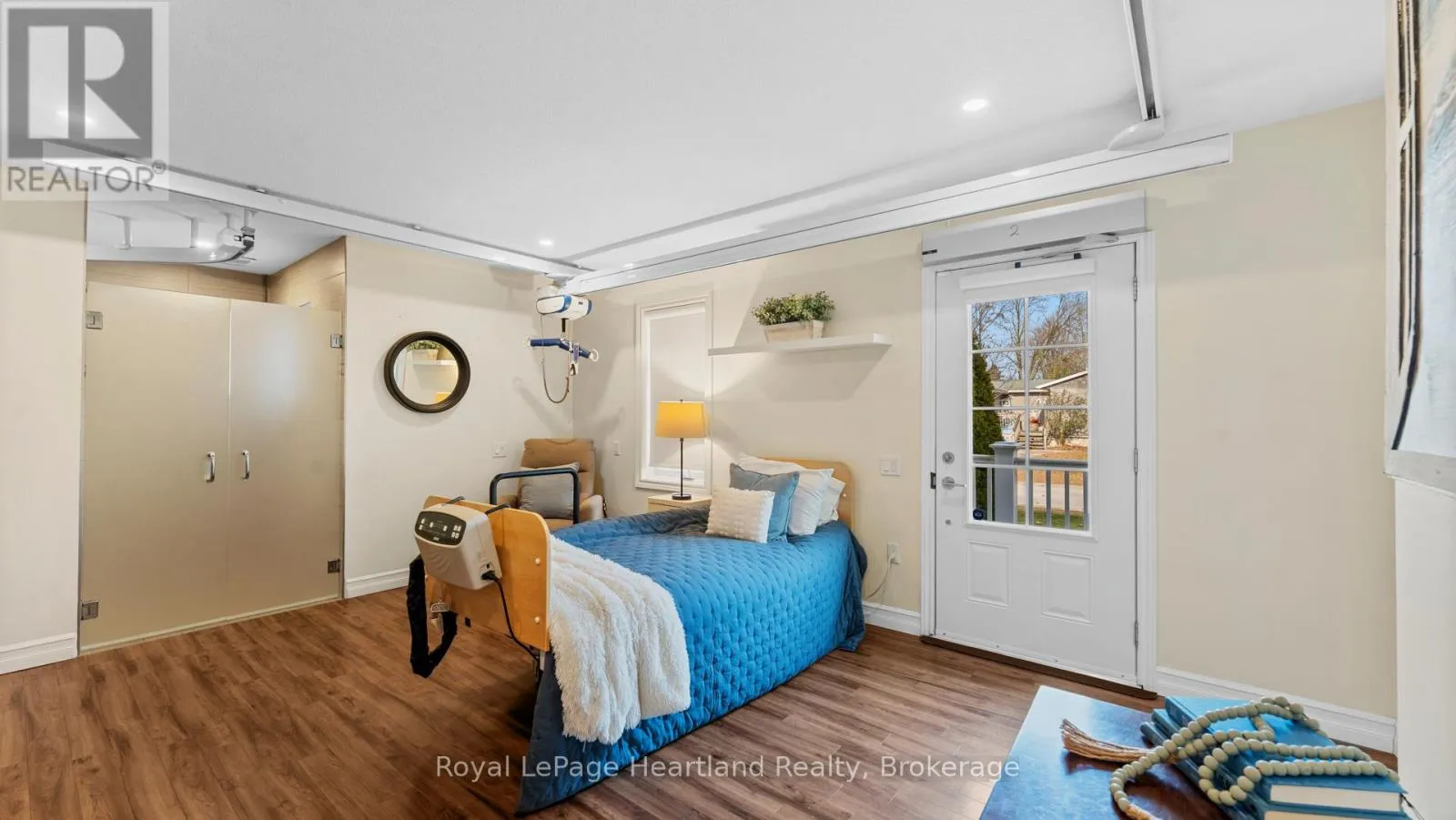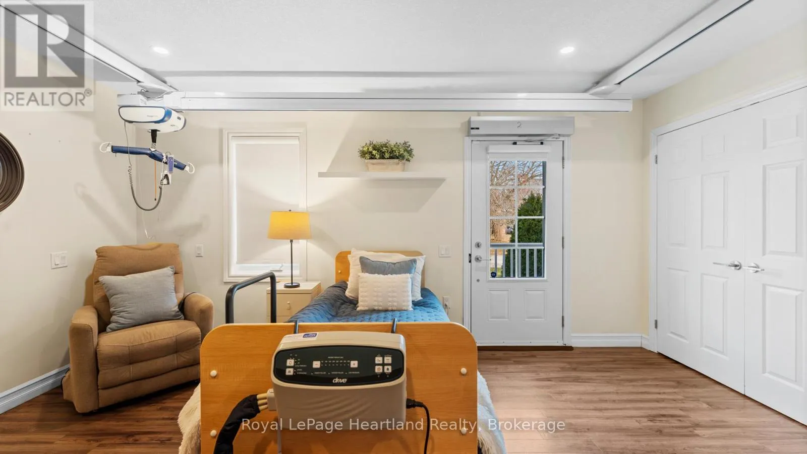 Cross Streets: Brantford / Isabella. ** Directions: From the Main Street in Seaforth, head down Brantford Street, and the property is on the corner of Isabella and Brantford. Welcome to an exceptional custom brick bungalow, built in 2016 and located in the heart of Seaforth, offering complete barrier-free living with every detail thoughtfully designed for full accessibility. This rare home features extensive exterior concrete walkways and ramps for effortless entrance, automatic interior doors, in-floor heating, and tile and laminate flooring throughout. The beautifully finished cherry kitchen offers excellent functionality with customized cabinetry designed for wheelchair access and opens to a cozy living room with a gas fireplace. With three bedrooms including a primary suite fully equipped with ceiling tracking, lift systems, an automatic adjustable bed setup, and a completely barrier-free shower, this home is built for independence, comfort, and dignity. Additional highlights include an automatic generator, gutter guards, an invisible pet fence, a water softener, reverse osmosis drinking system, an alarm/security system, a heated two-car garage with lift and elevator access, a bonus room above the garage perfect for an office or guest space, two sheds, a fully fenced yard, an inground sprinkler system, a steel roof, and newer windows throughout. An extraordinary amount has been invested into concrete around the exterior for seamless mobility, making this truly a one-of-a-kind offering. If you were to build this home today with similar adaptive technology and features, the cost would be significant-proving that at this price, it is an exceptional value for anyone seeking a fully accessible home. Move-in ready and built to exceed expectations, this is barrier-free living at its finest. (id:27476)