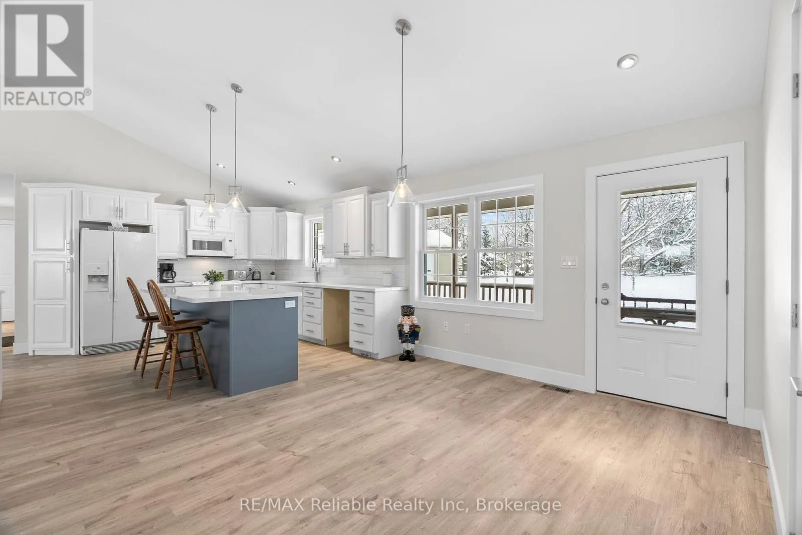 Cross Streets: Centre St. ** Directions: Head north on Main St. N. Turn left (west) onto Centre St. Turn right (north) onto Wilson St. Discover the ideal blend of country charm and town convenience with this ranch-style home set on 2.55 scenic acres bordering outskirts of town with Municipal services. Offering approximately 1,800 sq.ft on the main level, newly decorated including flooring plus a fully finished basement with in-floor heat, this property is designed for comfort, space, and relaxed rural living. The bright eat-in kitchen features a large island, perfect for gatherings and daily living. The impressive living room offers cathedral ceilings, a cozy gas fireplace, and a walkout to private deck plus the front has a wrap around deck-ideal for entertaining or enjoying peaceful country views. The home has a total of three bathrooms, including a primary bedroom with its own ensuite, this home delivers both function and style. Every room showcases warm country character throughout. A rare opportunity for country lovers seeking the perfect setting just bordering the town with private setting. The cull attached double car garage has a basement entrance for convenience to the storage area. The 2400 square foot shop is ideal for all different types of Buyers. The shop is divided into insulated portion with a 2 piece bathroom, in-floor heat and lots of storage with 2- 12 feet doors, steel sided maintenance free. Check this impressive-secluded property that has best of both worlds. (id:27476)