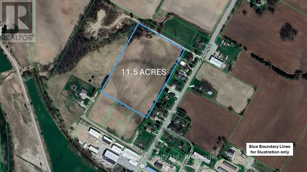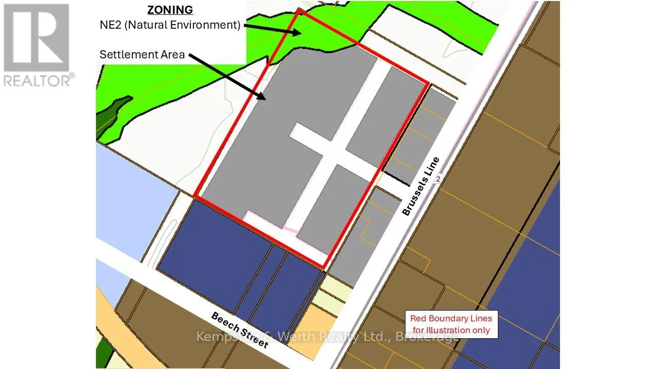 Cross Streets: Brussels Line. ** Directions: Brussels Line South to Beech Street West. Sizeable 11.5 acre industrial property just off Brussels Line in busy Brussels ON. Services available at highway. Zoned DNE2 (Settlement Area with small Natural Environment piece). Can be purchased separately or together with adjoining parcel to the South (MLS# 40803935). (id:27476)