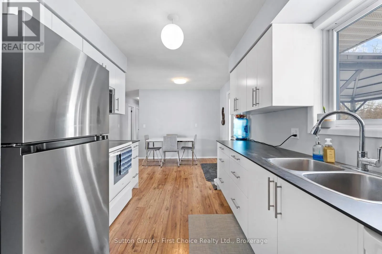 Cross Streets: Water St/Stapleton Ave. ** Directions: Heading South on Kippen Rd, West onto Stapleton Ave. Home on the West side of Water St. Charming all-brick bungalow set on an exceptional 95' x 330' residential lot, tucked away on a quiet street in a welcoming small-town setting. This rare oversized property offers incredible outdoor space with endless potential - whether you envision lush gardens, a future pool, a workshop, or simply room to enjoy wide-open green space. Inside, the home is warm, bright, and thoughtfully updated. The inviting living room is filled with natural light from a large picture window, creating a comfortable space to relax or entertain. The beautifully renovated kitchen (2024) features modern finishes and stylish updates, making it both functional and appealing for everyday living. The main floor offers three well-sized bedrooms, including a primary bedroom complete with its own private 2-piece ensuite. Two additional bedrooms are served by a recently renovated 4-piece main bathroom (2023), finished with contemporary touches. The fully finished basement extends your living space with a spacious recreation room highlighted by a cozy gas fireplace - perfect for movie nights, family gatherings, or a games area. A 3-piece bathroom and dedicated laundry space add convenience and flexibility for guests or growing families. Additional updates include a newer gas furnace, central air conditioning, a new hot water tank (2025), water softener, and water filtration system (2024), providing comfort and peace of mind. An attached garage and a new deck overlooking the expansive backyard complete this impressive property. This move-in ready home combines solid construction, modern updates, and an extraordinary lot size - all in a peaceful small-town community that offers the best of relaxed living. (id:27476)