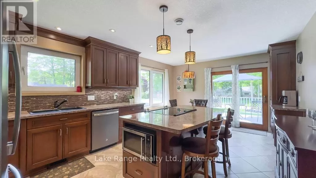 Cross Streets: Wilson Ave. ** Directions: From Lake Range Drive head west onto Wilson Ave. Property is on the corner of Shadywood and Wilson. Sign on property. Welcome 201 Shadywood Crescent in picturesque Point Clark! Perfectly situated on a spacious, landscaped lot, this beautifully maintained raised bungalow is just a short stroll from the white sand beaches and world-famous sunsets of Lake Huron. Step into the grand foyer featuring skylights that flood the space with natural light. Upstairs, the bright and airy living room opens onto a cozy enclosed porch, the perfect spot to sip your morning coffee or unwind with a drink while watching the seasons change. The kitchen flows seamlessly into the dining area, where patio doors lead to a low-maintenance composite deck an ideal space to enjoy outdoor meals or simply relax in a quiet, natural setting. The primary bedroom is generously sized, and just down the hall you'll find a luxurious 5-piece spa-style bathroom complete with a Jacuzzi tub. A second bedroom offers its own walk-in closet, providing ample storage. Downstairs, you will find a versatile lower level with a third bedroom, a second full bathroom, laundry room, second living room with fireplace, utility room, and additional storage spaces. Oversized windows throughout the home ensure every corner feels open and bright. Additional features include an oversized double garage with an attached sunroom, double car driveway, a storage shed, and low-maintenance landscaping that lets you enjoy the outdoors without all the upkeep. Whether you're looking for a peaceful year-round home or a relaxing weekend escape, this beautifully kept property offers comfort, space, and a welcoming community atmosphere. (id:27476)