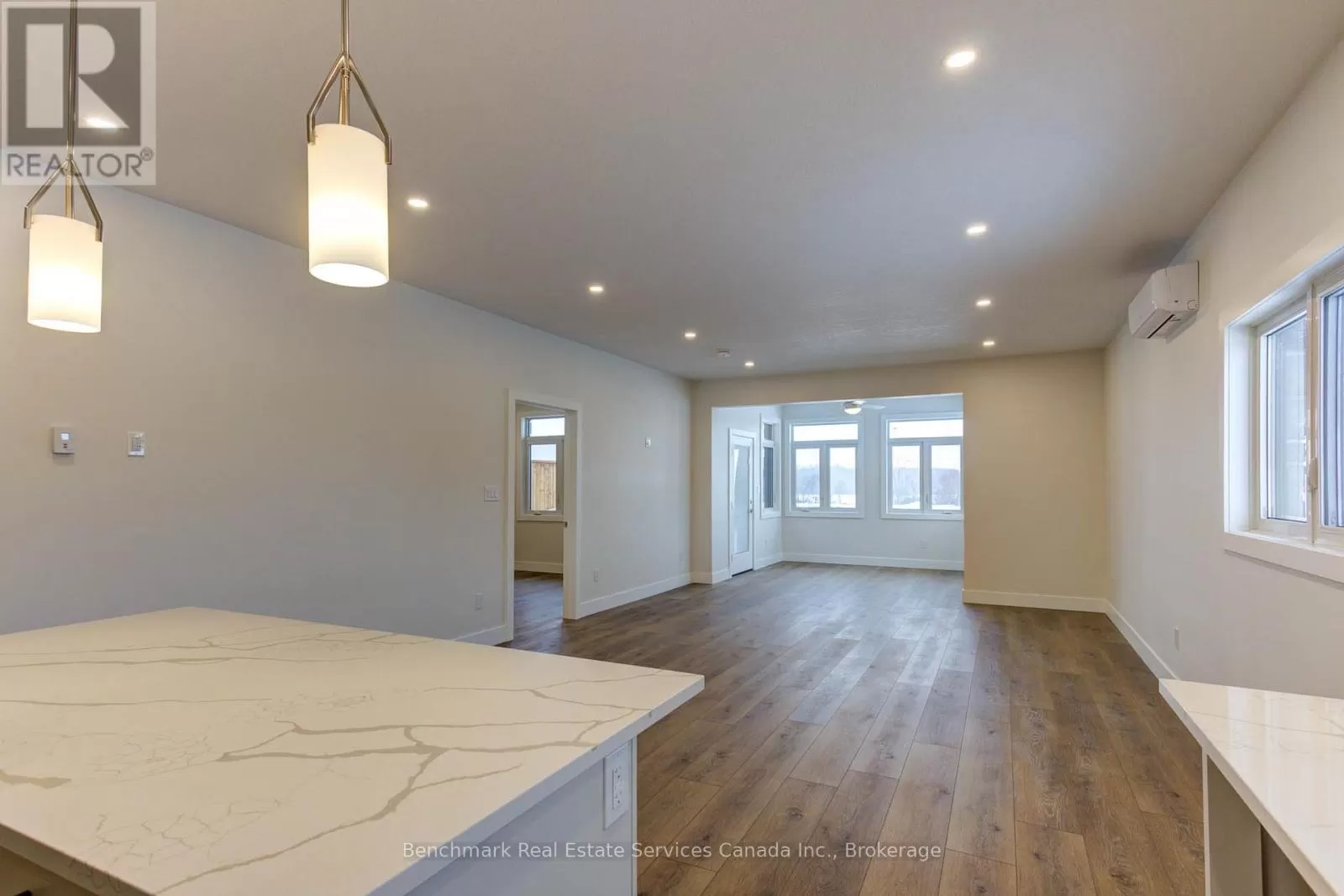 Cross Streets: #6 and #7. ** Directions: From #7 and #6, Head North on #7, Turn Left on McTavish Crescent, Cavalier Crescent will be on your left. Welcome to easy, carefree living in this beautifully designed 2-bedroom, 2-bathroom end unit bungalow condo, nestled in the quiet and welcoming town of Ripley. With 1,310 square feet of thoughtfully laid-out living space, this home offers the perfect blend of comfort, convenience, and low-maintenance living, all on one floor for true one-level accessibility. Step inside to an open-concept layout with wide hallways and doorways, ideal for those seeking a barrier-free lifestyle. The spacious kitchen flows seamlessly into the bright living and dining areas, perfect for entertaining or simply enjoying everyday life. Two generously sized bedrooms include a primary suite with an accessible ensuite bath and walk-in closet. Enjoy the benefits of condo living with snow removal and lawn care handled for you, so you can spend more time doing what you love. Just minutes from the sandy shores of Lake Huron, this home offers small-town charm with easy access to the beach, local shops, and nearby amenities.Whether you're downsizing, retiring, or simply looking for a fresh start in a friendly community, this bungalow condo is a perfect fit. Don't miss this rare opportunity to own a stylish and accessible home in one of Huron-Kinlosss most desirable locations. (id:27476)