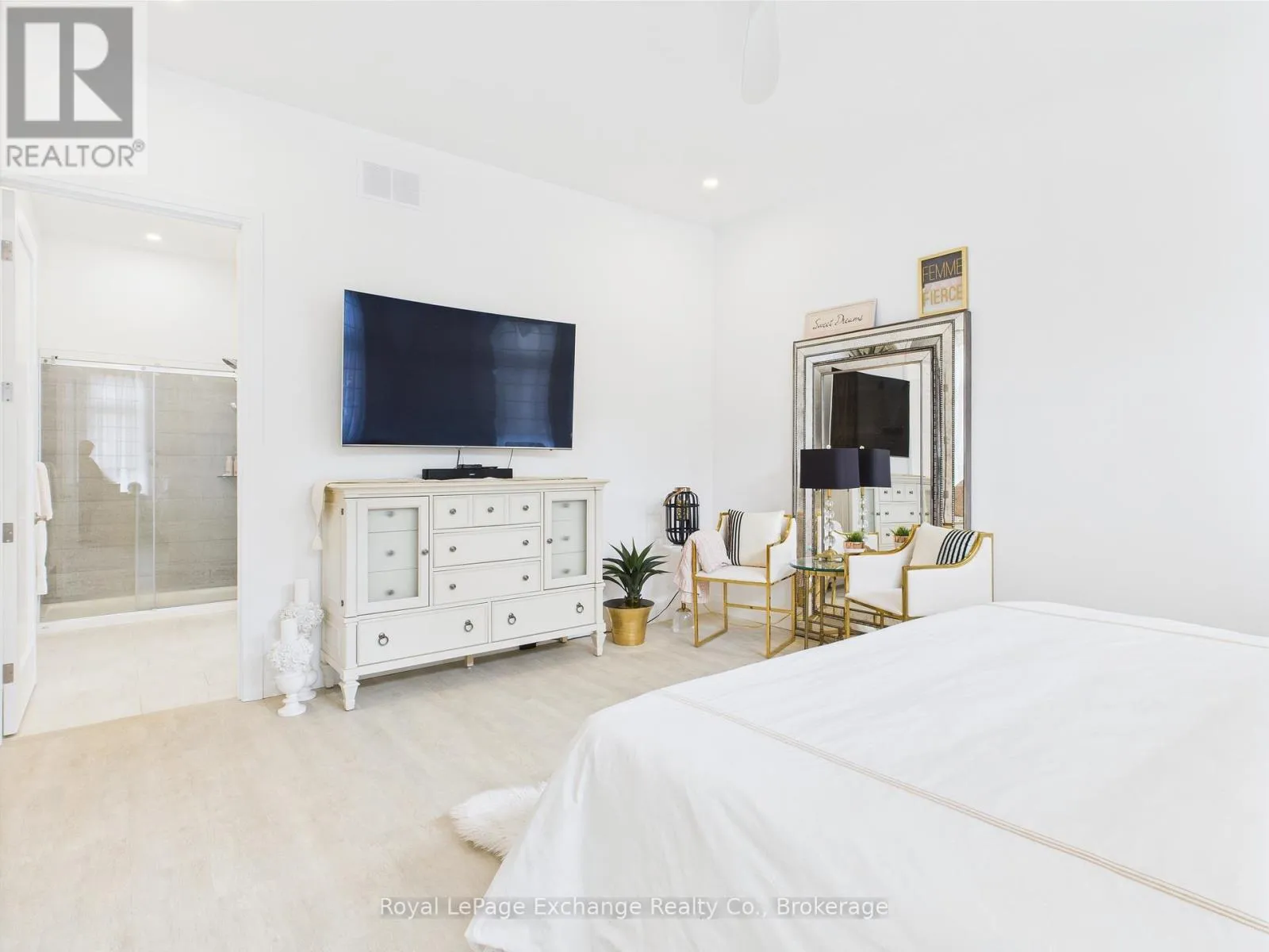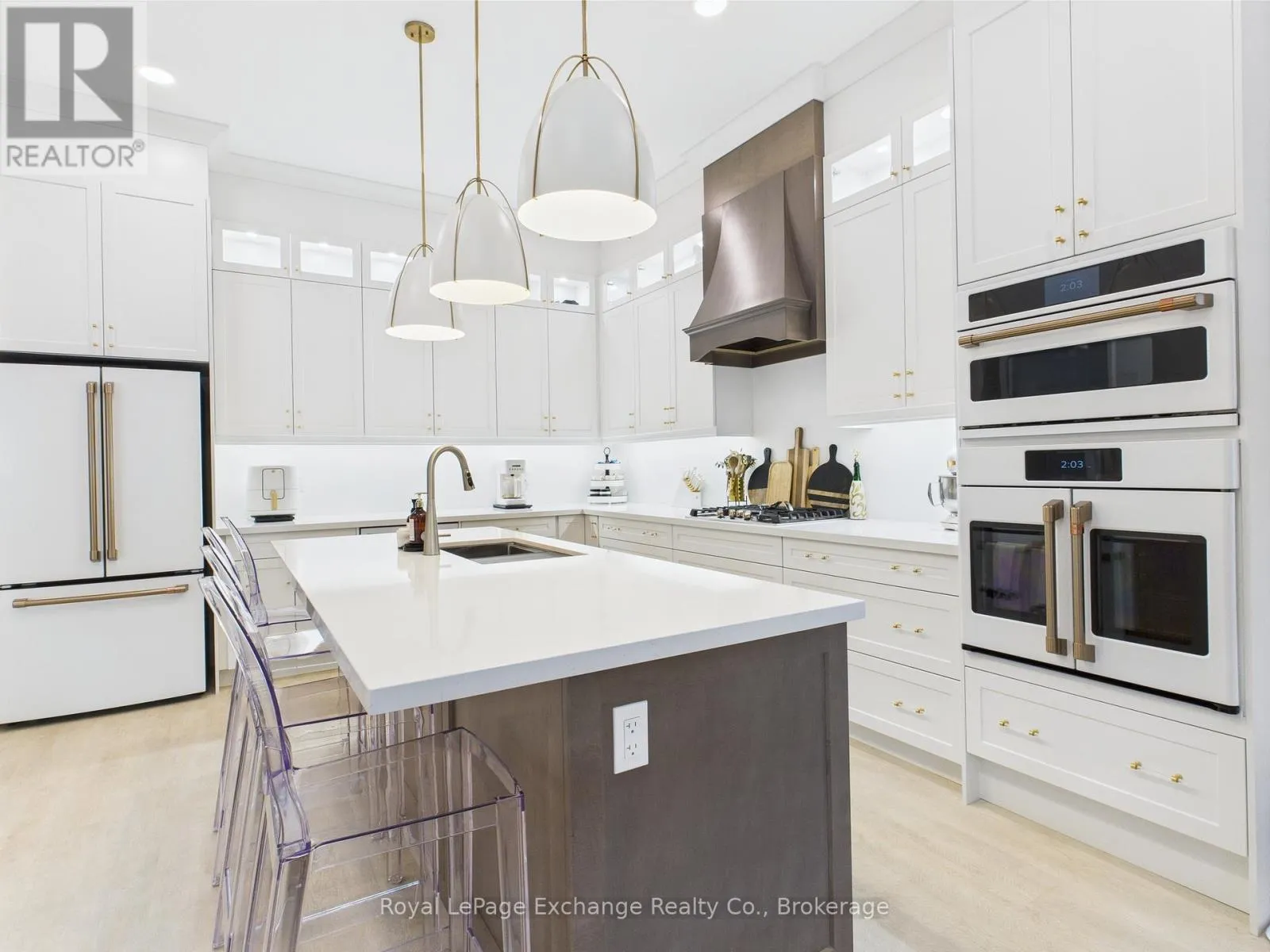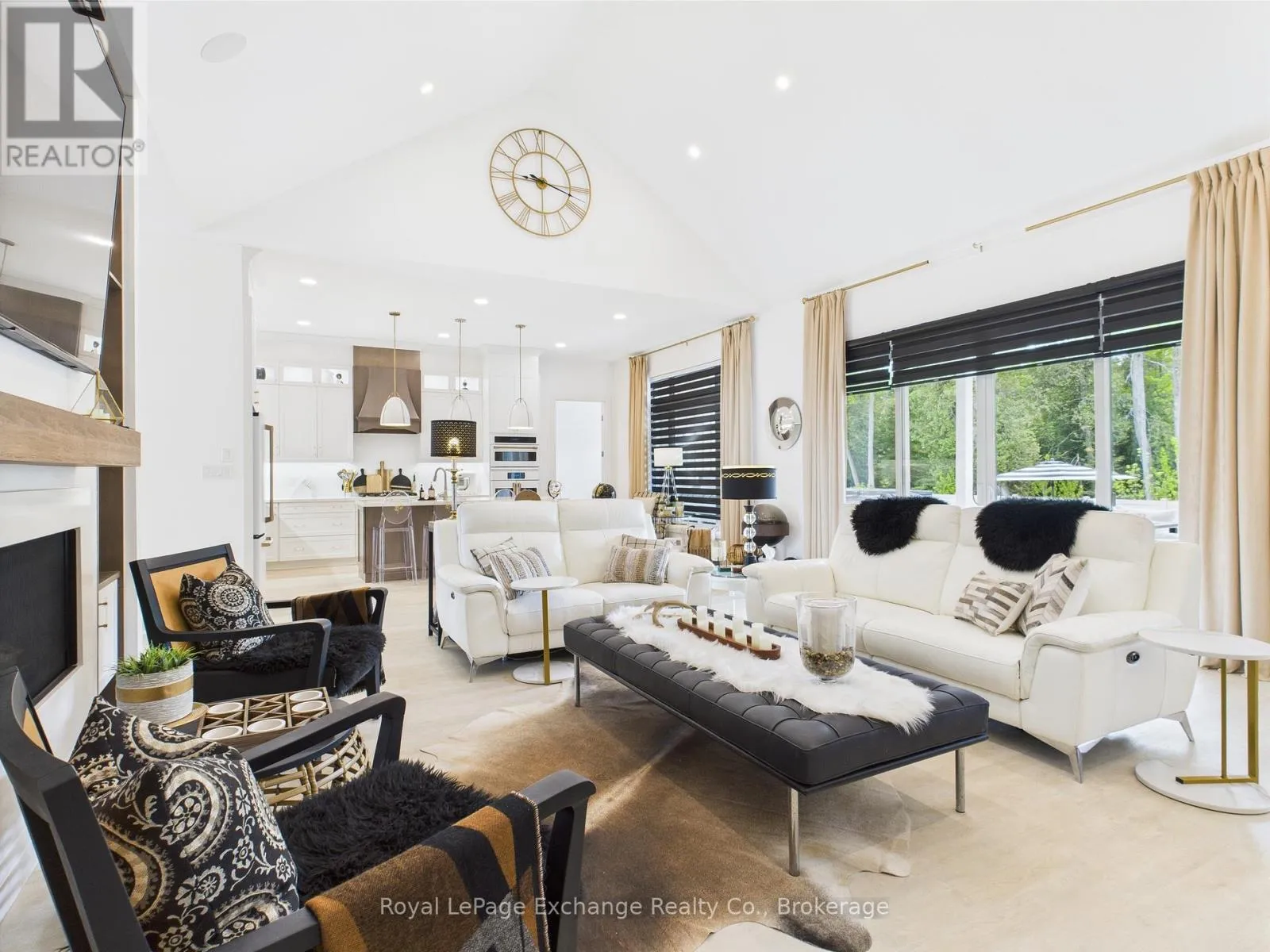 Cross Streets: Sunset Pl & Huron Rd. ** Directions: Travelling south on Hwy 21 turn right onto Hwy 86, right onto Lake Range Dr, left onto Huron Rd, right onto Sunset Place, property is located on the right #12. Experience luxury, comfort, and modern design in this executive bungalow just a short walk from the shores of Lake Huron in Point Clark. Exceptional curb appeal highlights the stone and brick façade, welcoming covered porch with extra-height front door, and triple-car garage complete with EV charger.Inside, the grand foyer opens to soaring 10' ceilings, an open-concept layout filled with natural light, and stylish LVP flooring. The dining room features a tray ceiling and dual-sided fireplace shared with the great room, which offers a cathedral ceiling, ceiling speakers, patio doors, and included 80" LG TV. The chef-inspired kitchen boasts extended-height cabinetry, quartz countertops, a large island, Café appliances, and a walk-in pantry.The primary suite is a private retreat with a spa-like ensuite and spacious walk-in closet. Two additional bedrooms each feature walk-in closets and private ensuites. Step outside to a fenced backyard oasis with covered porch, ceiling speakers, lounge areas, and a swim spa. Smart home features complete this exceptional property near the lake. (id:27476)