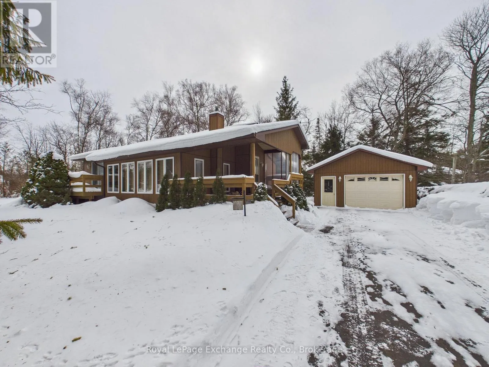 Cross Streets: Tyendinaga and Huron Rd. ** Directions: From Hwy 21 turn W on Amberley Rd, turn R onto Lake Range Dr, L onto Huron Rd, turn R onto Tyendinaga, arrive at 323 on R. Welcome to this charming Royal Home in the heart of Point Clark. Set on a beautiful, mature treed lot with detached garage (18' x 24'), this well-cared-for property offers comfort, practicality and an unbeatable location near the water. The open-concept kitchen and dining area provide a welcoming space for everyday living and entertaining, while the sunken living room adds character and a cozy place to relax. With two bedrooms and one bathroom, this home is an ideal option for first-time buyers, downsizers, or those looking for a relaxed lakeside lifestyle. This home also offers a covered porch (11' x 14') and patio door walkouts from both bedrooms. Recent updates that add peace of mind and efficiency include heat pump (2023), water heater (2024) and air exchanger. Family room, storage area and potential 3rd bedroom and rough-in bathroom in lower level. Whether you're looking for a full-time residence or a weekend cottage getaway, this home fits the bill. Enjoy the laid-back charm Point Clark is known for - from beach walks and stunning sunsets to a friendly, close-knit community. (id:27476)
