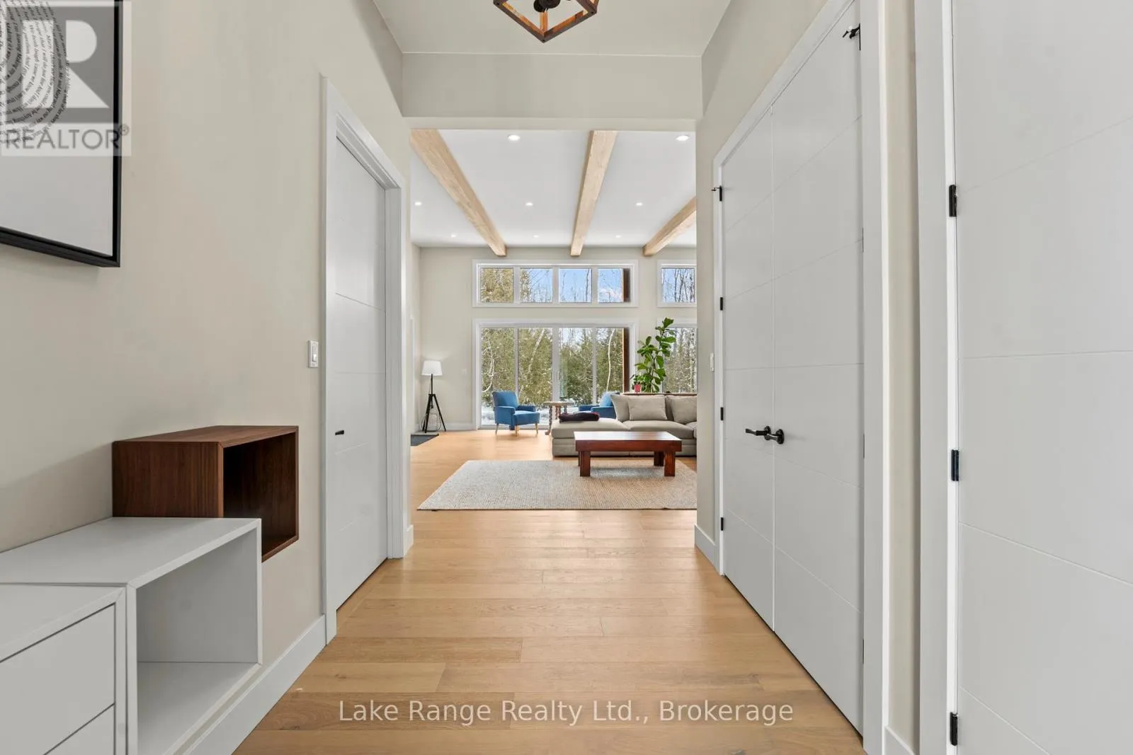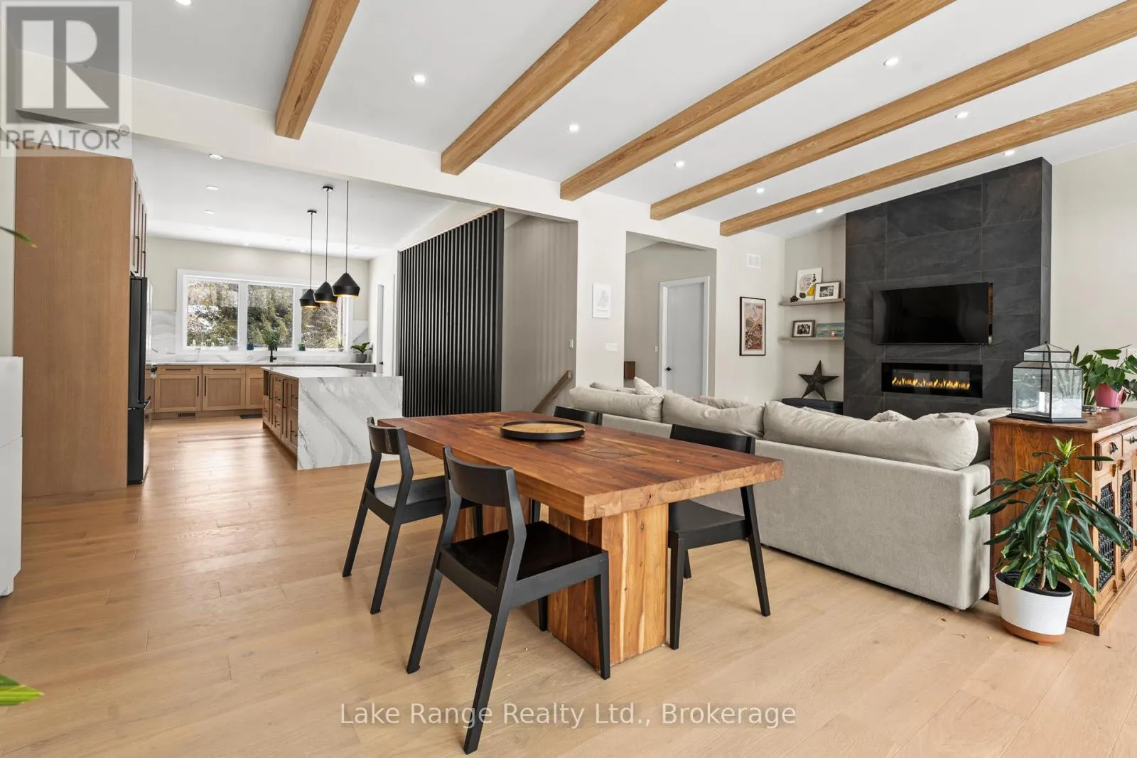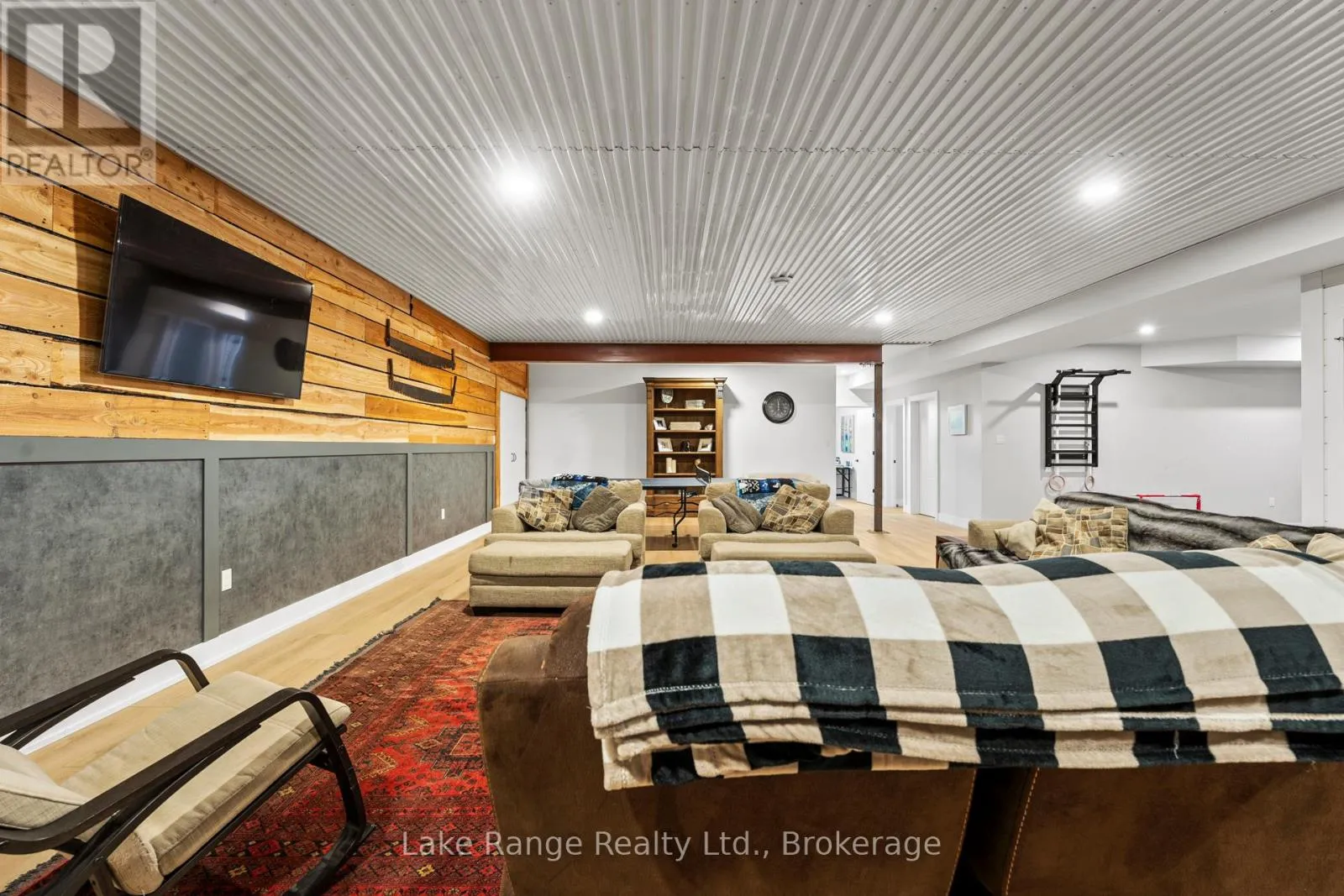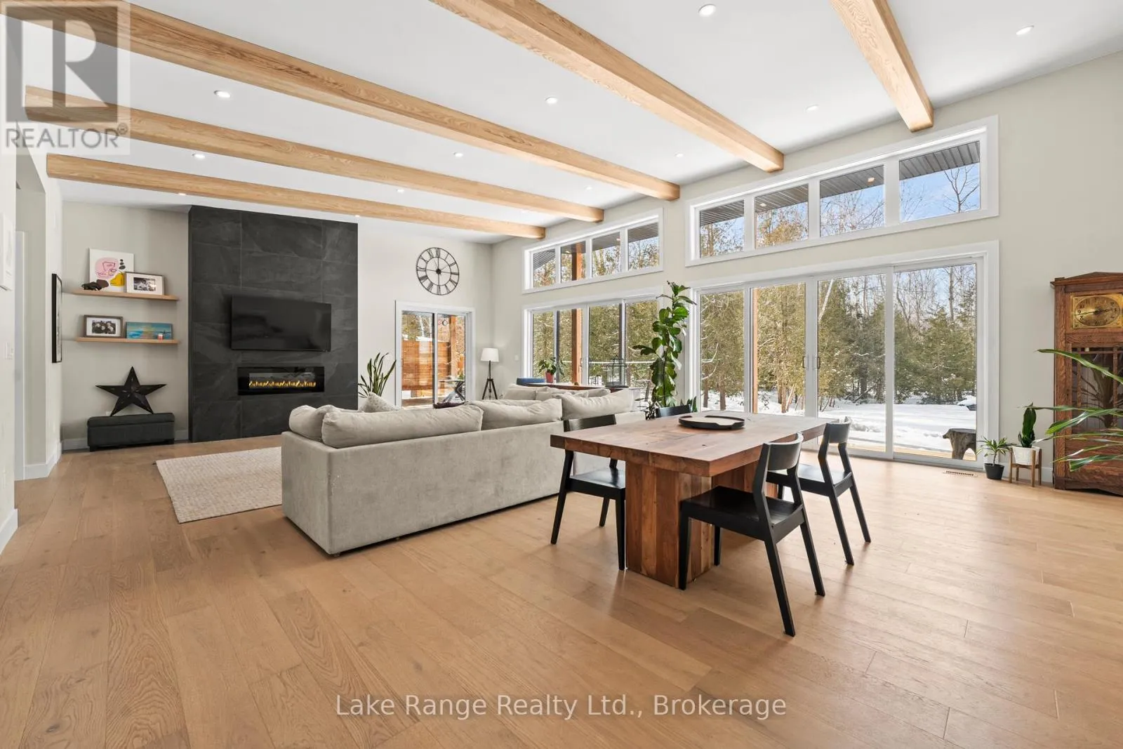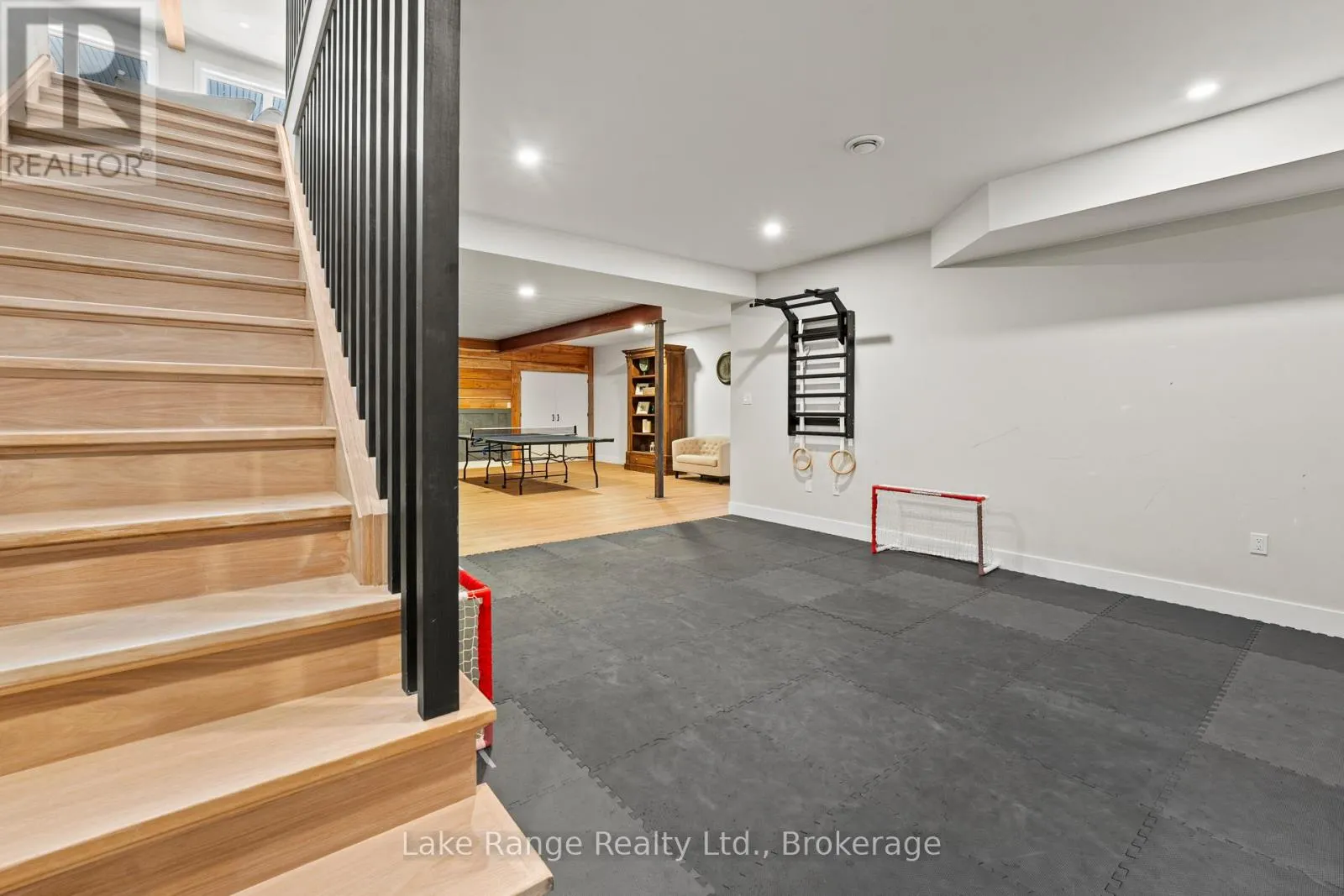 Cross Streets: lake range and bell drive. ** Directions: Lake Range then right on Bell Drive, then right on Blairs Trail then left on Green Brae. Welcome to this warm and modern custom-built 2024 home, ideally located just steps from the beach in the sought-after community of Blairs Grove. This one-of-a-kind residence features soaring 14-foot vaulted ceilings with exposed beams in the open-concept living and dining area, complemented by expansive windows and sliding glass doors that flood the space with natural light and offer serene forest views. Ten-foot ceilings extend throughout the three main-floor bedrooms, including a spacious primary suite with a walk-in closet featuring custom shelving and a spa-inspired ensuite with heated floors. The stunning kitchen showcases an 11-foot quartz island, white oak cabinetry, waterfall accents, and sleek modern finishes. Engineered hardwood floors flow throughout the main level, which also includes a five-piece bathroom, modern fireplace, and three sliding doors leading to a 56-foot covered back deck with beautiful 16 foot Douglas Fir posts. The fully finished lower level offers 3 additional bedrooms and ample storage space with 9 foot ceilings throughout and a 1,200 sq. ft. custom-finished rec room, perfect for family time or entertaining. The striking exterior combines brick with LP Smart Side board-and-batten siding and backs onto 25 acres of nature trails for added privacy. Located just 160 meters from beach access, this exceptional home offers the best of modern design and beachside living. Contact your Realtor today and come take a look. (id:27476)