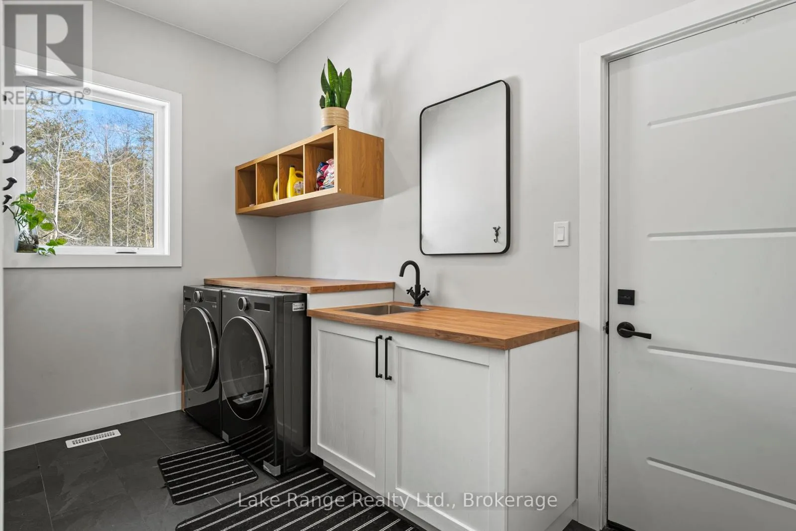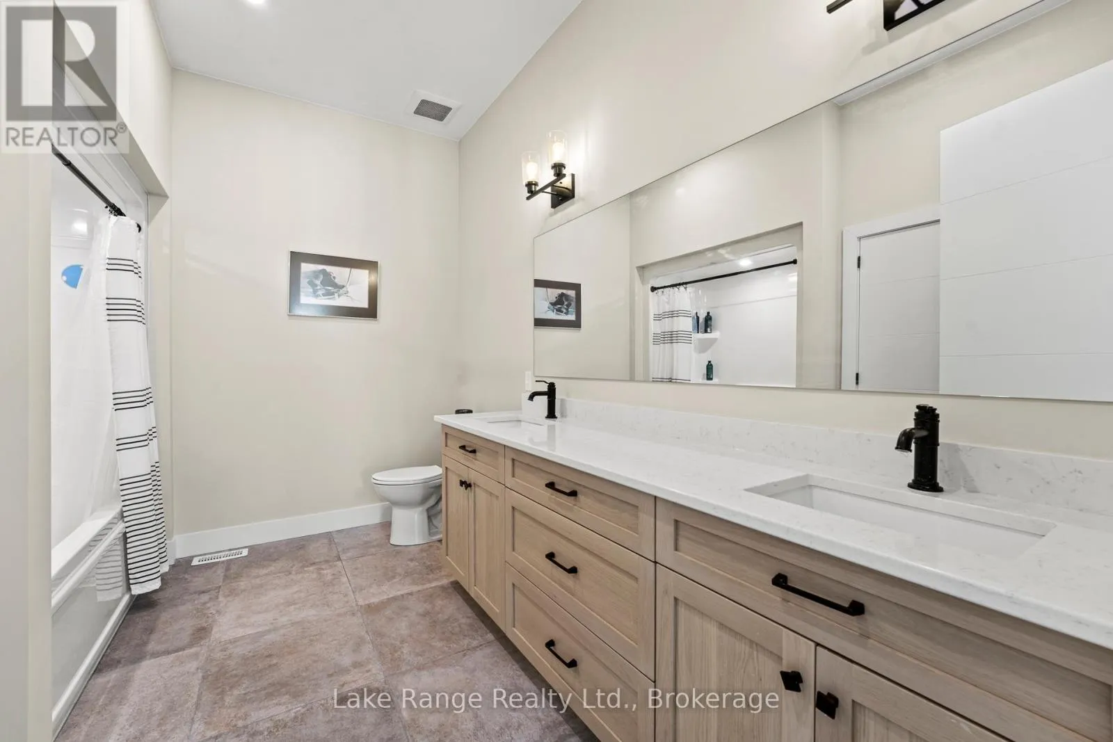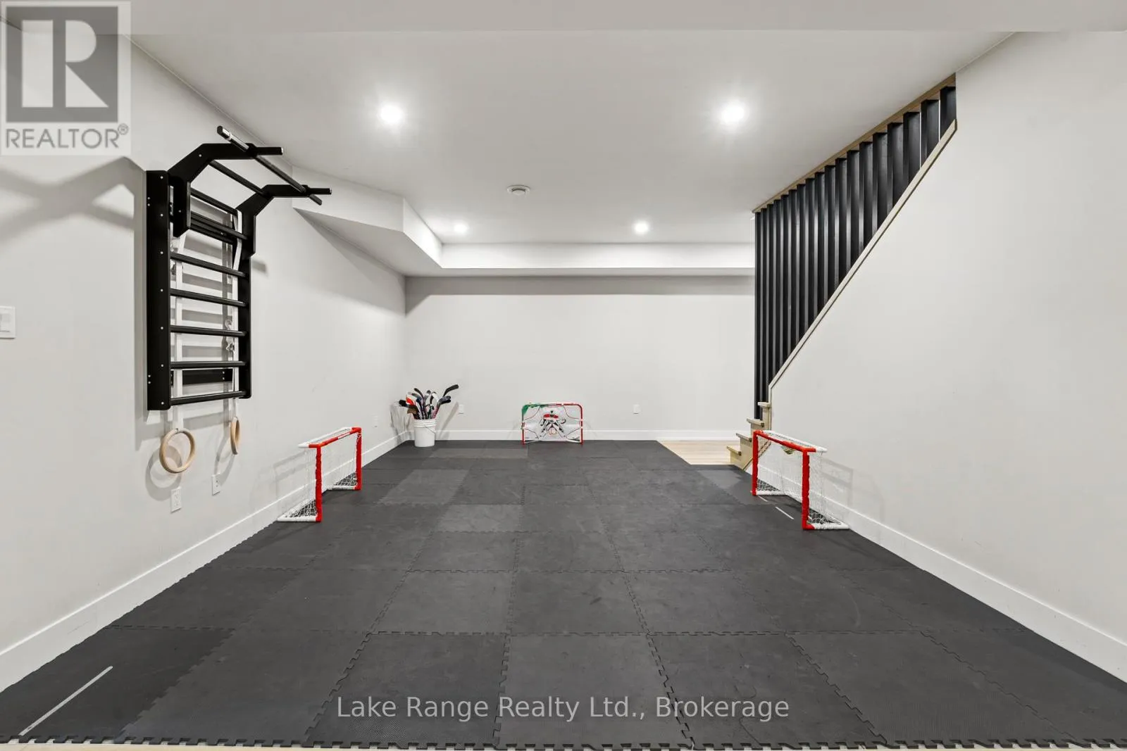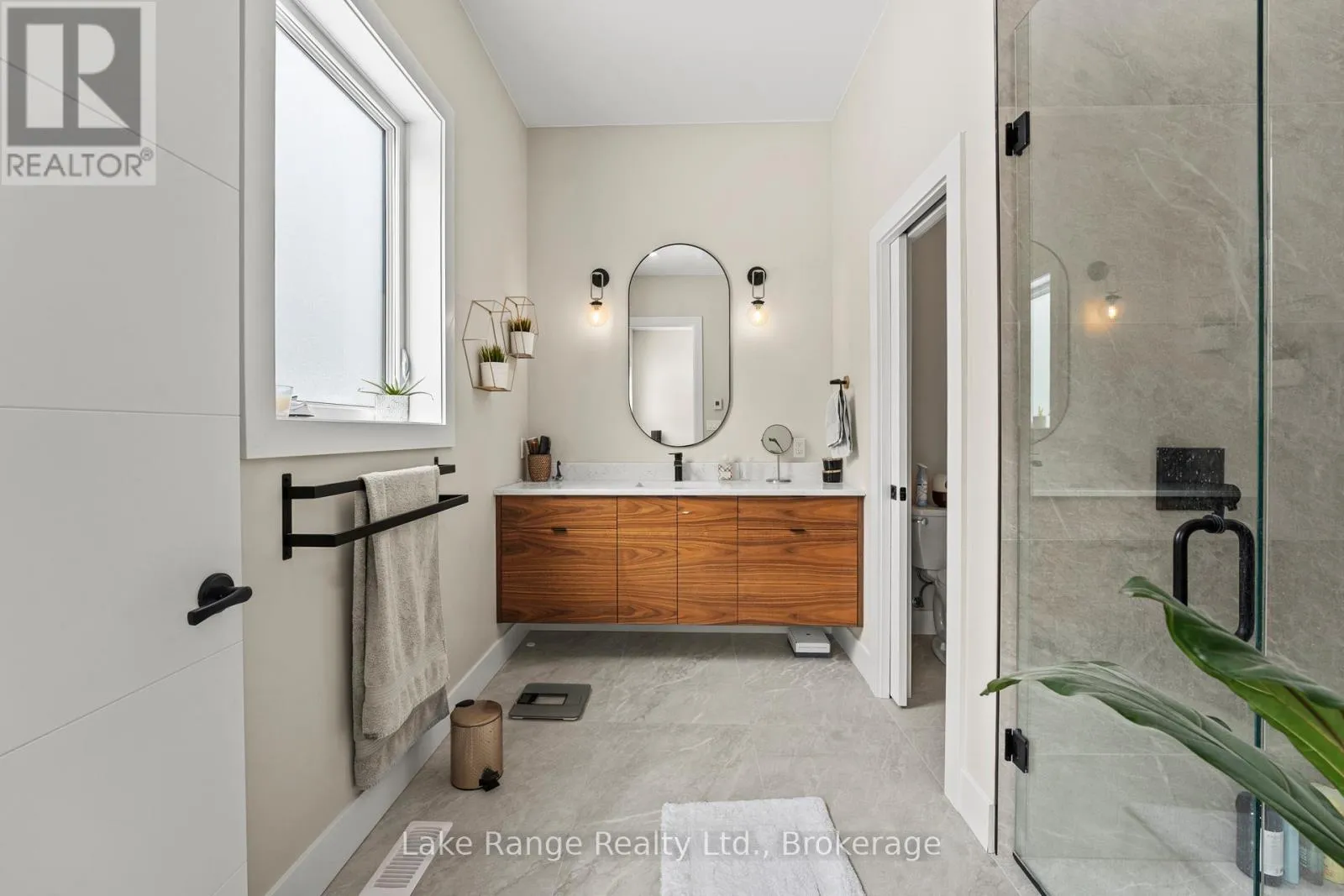 Cross Streets: lake range and bell drive. ** Directions: Lake Range then right on Bell Drive, then right on Blairs Trail then left on Green Brae. Welcome to this warm and modern custom-built 2024 home, ideally located just steps from the beach in the sought-after community of Blairs Grove. This one-of-a-kind residence features soaring 14-foot vaulted ceilings with exposed beams in the open-concept living and dining area, complemented by expansive windows and sliding glass doors that flood the space with natural light and offer serene forest views. Ten-foot ceilings extend throughout the three main-floor bedrooms, including a spacious primary suite with a walk-in closet featuring custom shelving and a spa-inspired ensuite with heated floors. The stunning kitchen showcases an 11-foot quartz island, white oak cabinetry, waterfall accents, and sleek modern finishes. Engineered hardwood floors flow throughout the main level, which also includes a five-piece bathroom, modern fireplace, and three sliding doors leading to a 56-foot covered back deck with beautiful 16 foot Douglas Fir posts. The fully finished lower level offers 3 additional bedrooms and ample storage space with 9 foot ceilings throughout and a 1,200 sq. ft. custom-finished rec room, perfect for family time or entertaining. The striking exterior combines brick with LP Smart Side board-and-batten siding and backs onto 25 acres of nature trails for added privacy. Located just 160 meters from beach access, this exceptional home offers the best of modern design and beachside living. Contact your Realtor today and come take a look. (id:27476)