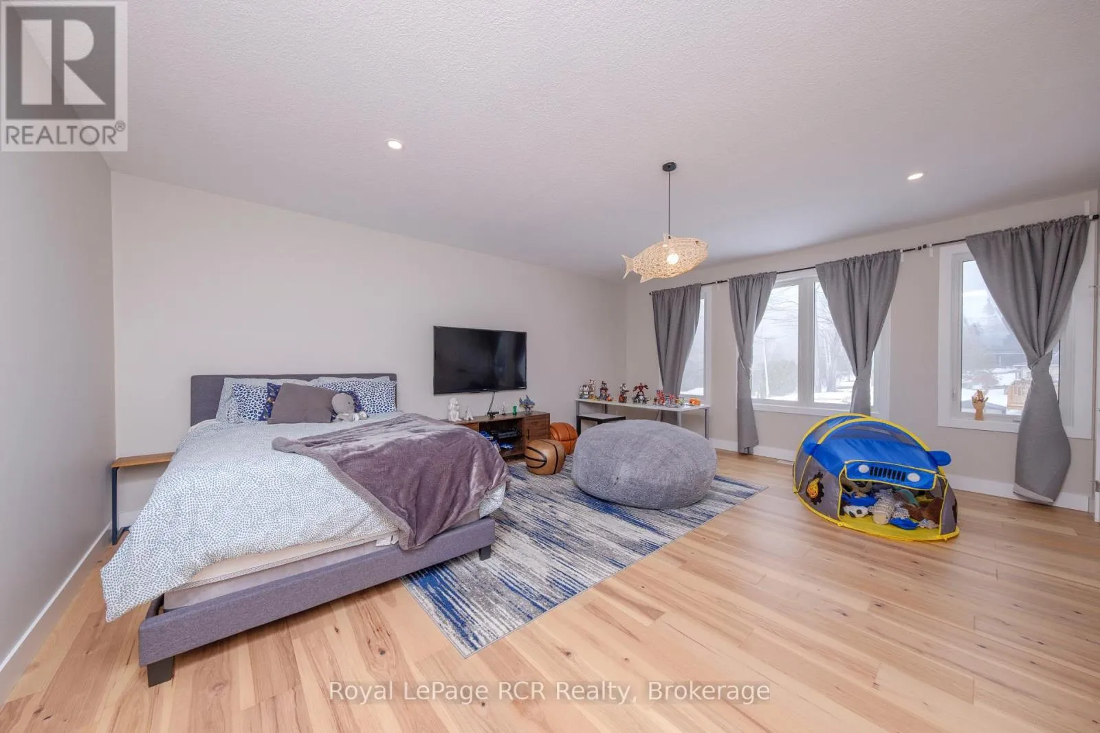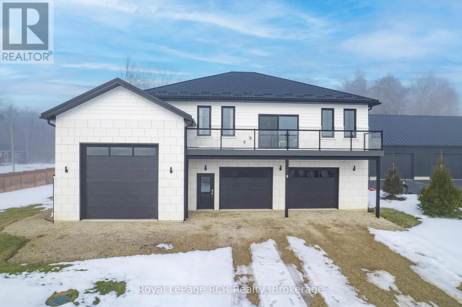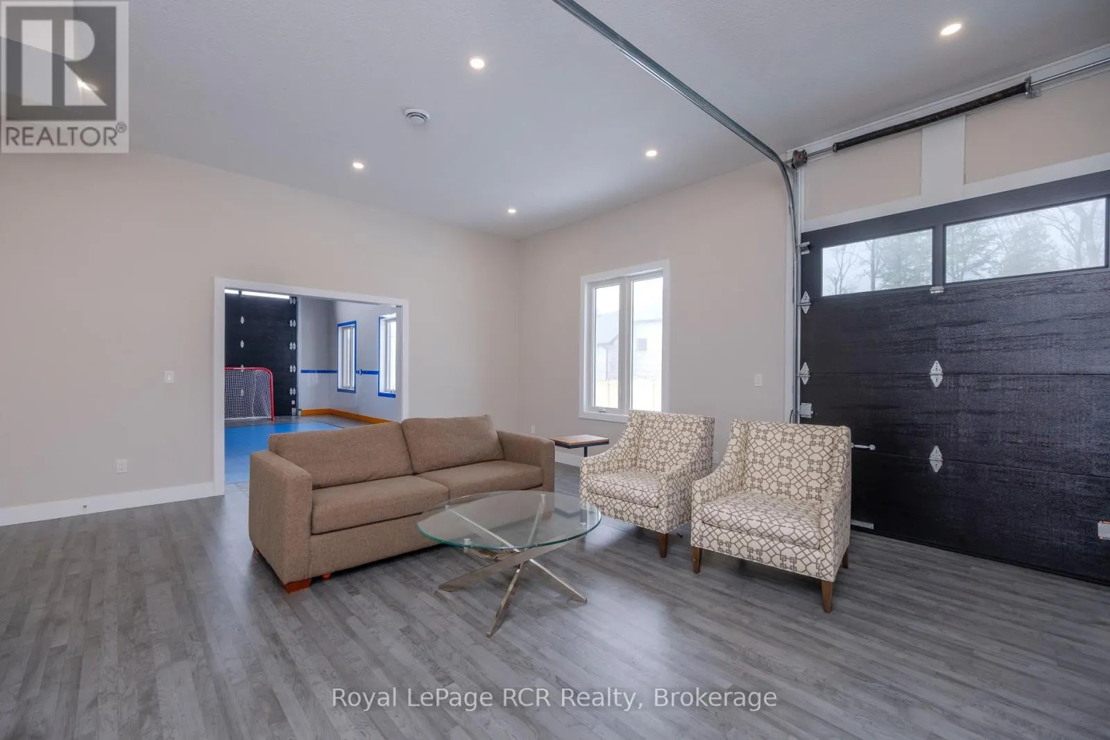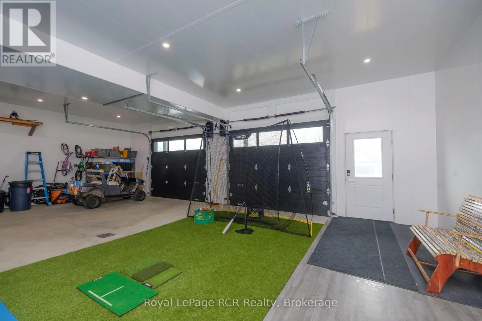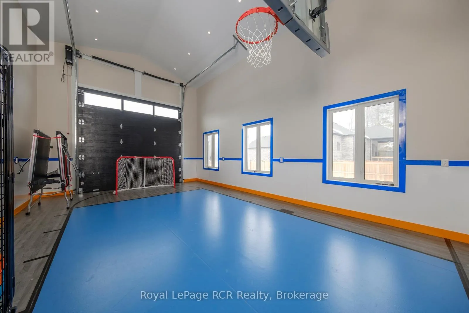 Cross Streets: Sunset Place/Huron Road. ** Directions: From Highway #21 turn onto Amberley Road at Amberley, then turn North onto Lake Range Drive, a quick left onto Huron Road and then turn East onto Sunset Place to property. Welcome to a one-of-a-kind opportunity in the lakeside community of Point Clark, a peaceful enclave on the shores of Lake Huron known for its beach, historic lighthouse, and relaxed coastal lifestyle. This custom 5-year-old home was purpose-built for active living and effortless entertaining, featuring a rare main-floor indoor sports court that flows seamlessly to the outdoors. Set on a large over half-acre lot, the property offers ample space for kids, pets, and backyard projects, all just a short walk from the water's edge.Designed with function and comfort in mind, the main level centres around the bright sports court, perfect for year-round basketball, pickleball, hockey training, climbing, or a home gym. Multiple roll-up doors connect the court, oversized 2-car garage, and yard, creating an impressive indoor-outdoor hub for gatherings and play in every season. Upstairs, you'll find a spacious living area with an open-concept kitchen/dining/living room, plus a walk-out balcony for morning coffee or famous sunsets. Three large bedrooms complete the upper level, including a well-appointed primary suite with ensuite, two additional generous bedrooms, and convenient upper-level laundry.The lower level is finished with in-floor radiant heat, while the upper level is served by a forced-air gas furnace with central air, combining to provide efficient, quiet comfort year-round. Whether you're an active family, an athlete, or simply seeking a distinctive home near the lake with room to spread out, this property offers a rare blend of lifestyle, comfort, and location in Point Clark. (id:27476)