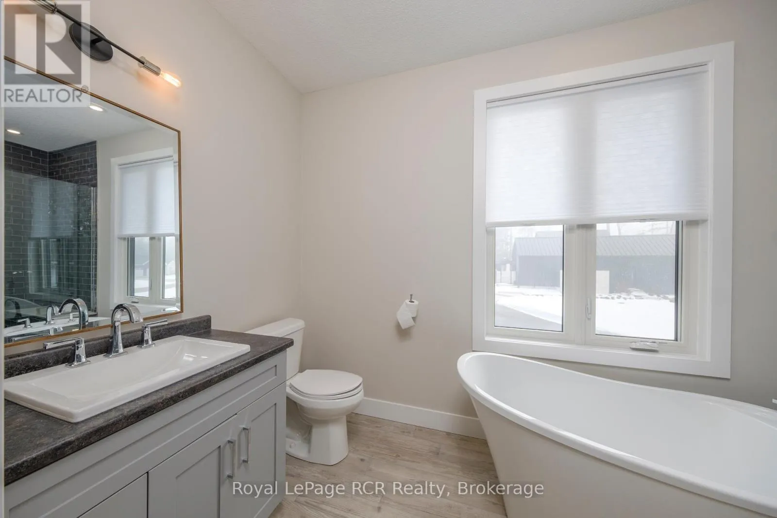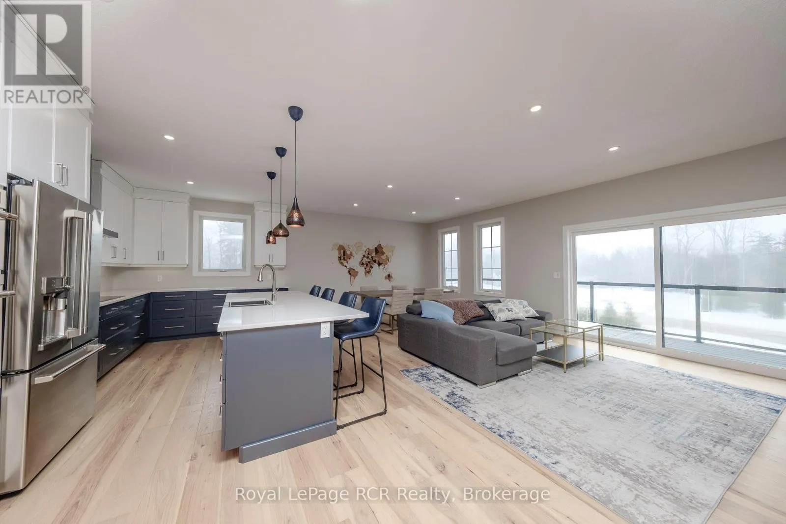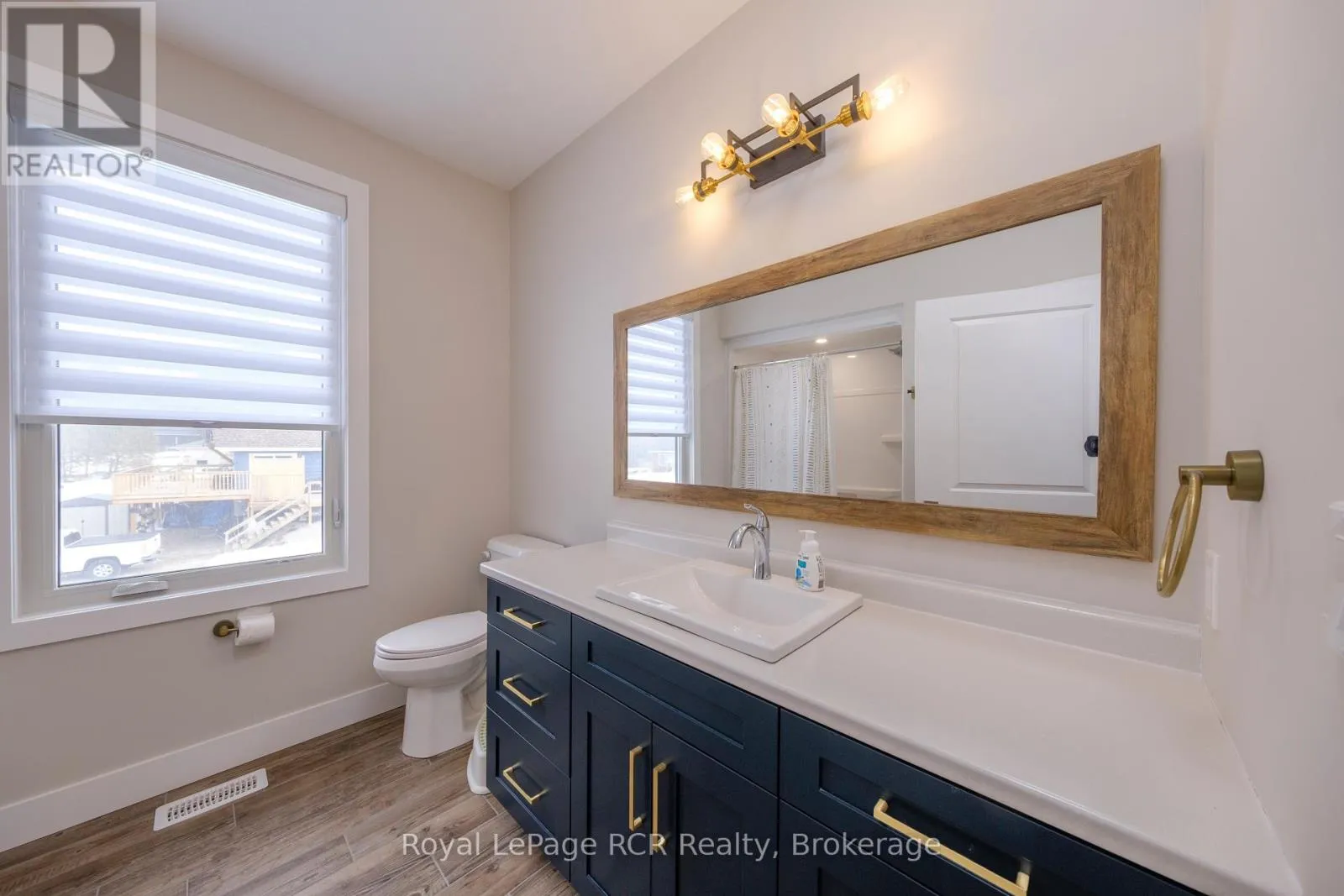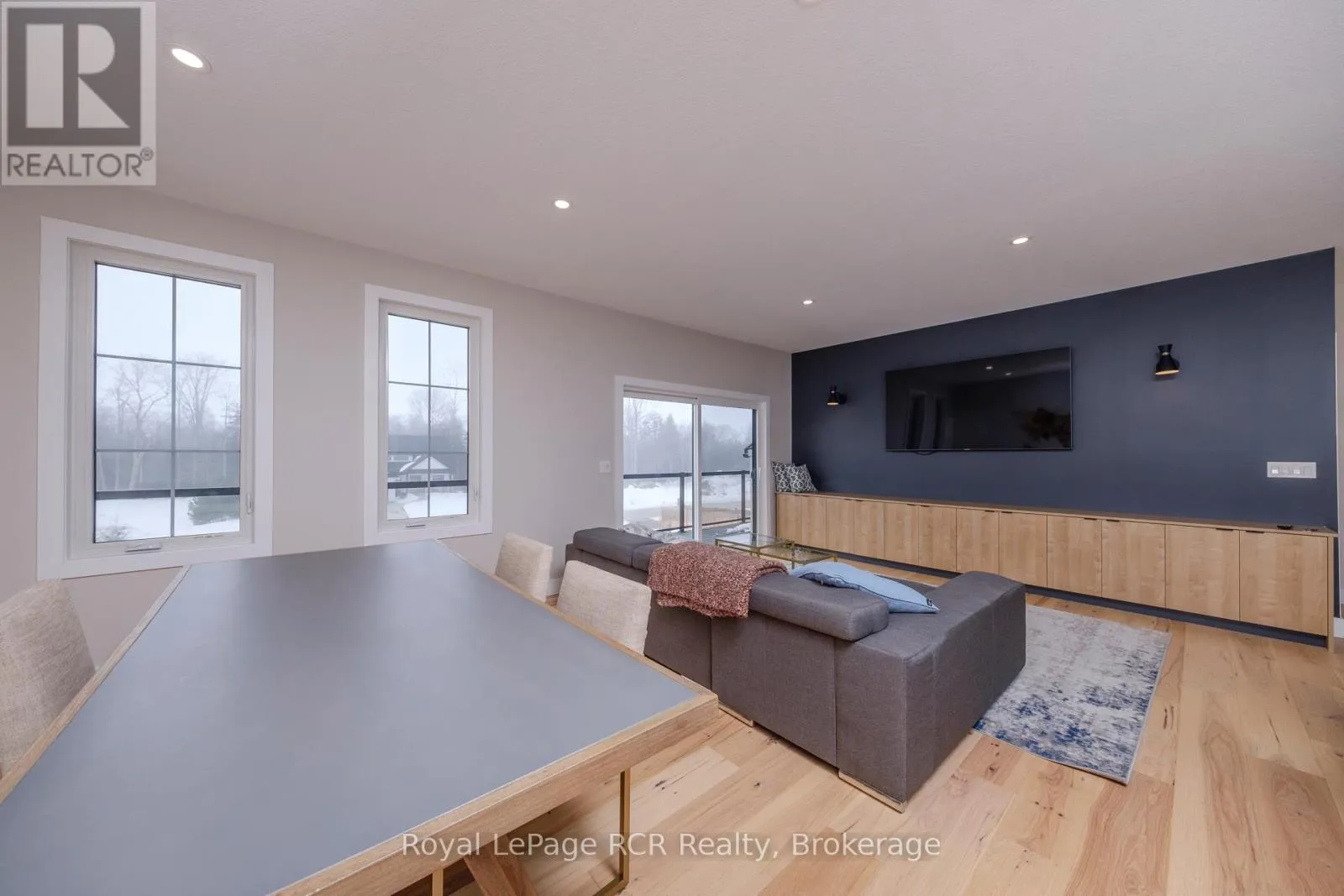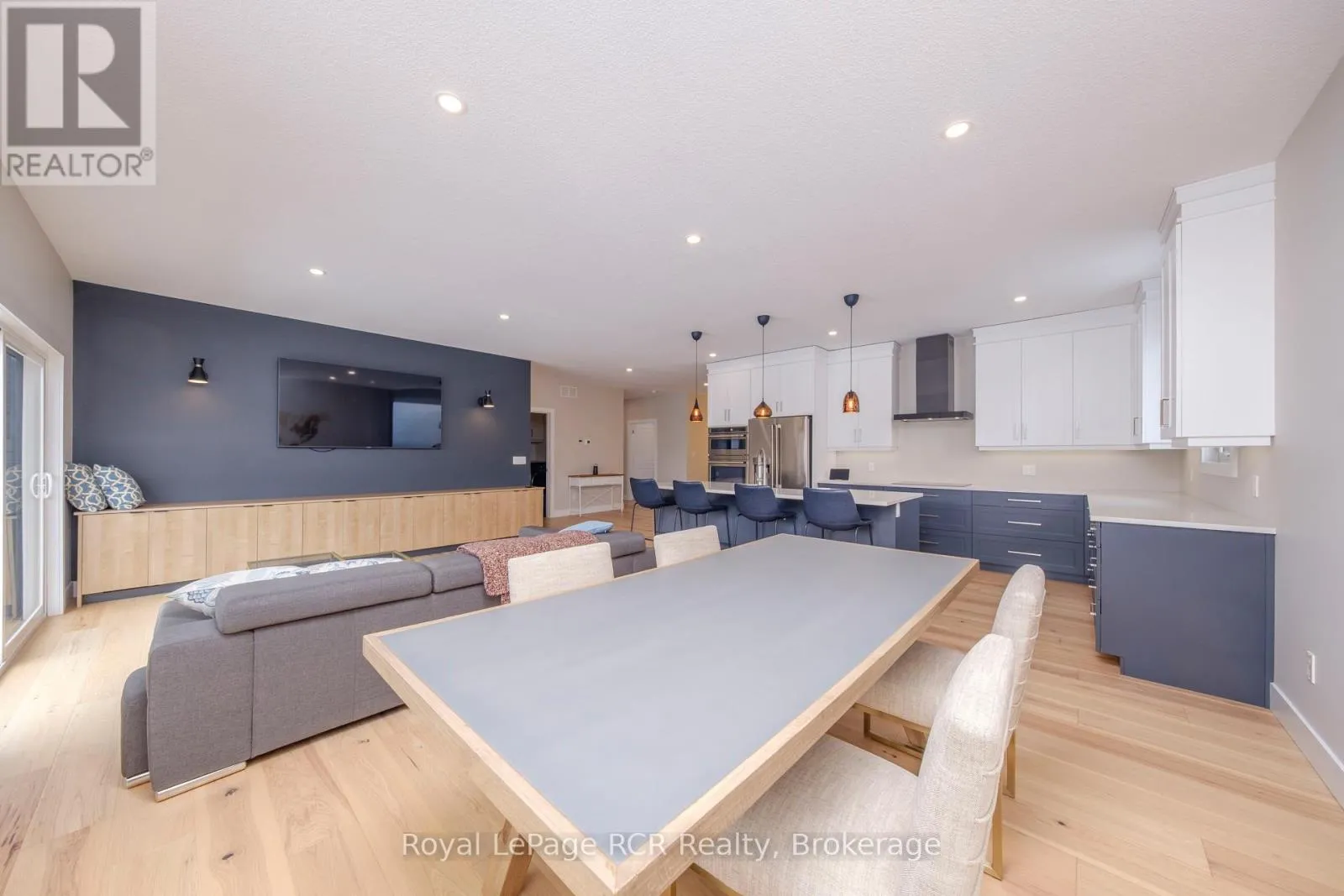 Cross Streets: Sunset Place/Huron Road. ** Directions: From Highway #21 turn onto Amberley Road at Amberley, then turn North onto Lake Range Drive, a quick left onto Huron Road and then turn East onto Sunset Place to property. Welcome to a one-of-a-kind opportunity in the lakeside community of Point Clark, a peaceful enclave on the shores of Lake Huron known for its beach, historic lighthouse, and relaxed coastal lifestyle. This custom 5-year-old home was purpose-built for active living and effortless entertaining, featuring a rare main-floor indoor sports court that flows seamlessly to the outdoors. Set on a large over half-acre lot, the property offers ample space for kids, pets, and backyard projects, all just a short walk from the water's edge.Designed with function and comfort in mind, the main level centres around the bright sports court, perfect for year-round basketball, pickleball, hockey training, climbing, or a home gym. Multiple roll-up doors connect the court, oversized 2-car garage, and yard, creating an impressive indoor-outdoor hub for gatherings and play in every season. Upstairs, you'll find a spacious living area with an open-concept kitchen/dining/living room, plus a walk-out balcony for morning coffee or famous sunsets. Three large bedrooms complete the upper level, including a well-appointed primary suite with ensuite, two additional generous bedrooms, and convenient upper-level laundry.The lower level is finished with in-floor radiant heat, while the upper level is served by a forced-air gas furnace with central air, combining to provide efficient, quiet comfort year-round. Whether you're an active family, an athlete, or simply seeking a distinctive home near the lake with room to spread out, this property offers a rare blend of lifestyle, comfort, and location in Point Clark. (id:27476)