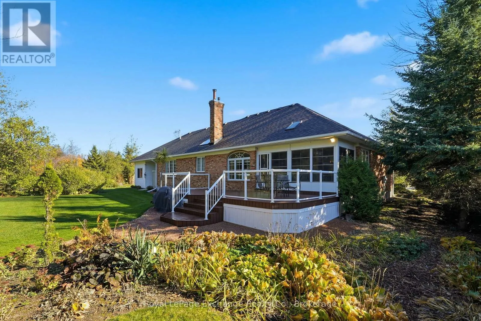 Cross Streets: FAWN RIDGE. ** Directions: FROM LAKE RANGE DR, TURN WEST ONTO DEERHURST DR, CONTINUE UNTIL SIGN ON LEFT HAND SIDE. This home truly has it all! A solid red-brick bungalow located in desirable Point Clark, a quiet lakeside community just a short drive to Kincardine, Goderich & Ripley. Set on just over 1/2 acre of beautifully groomed private grounds, this property offers a peaceful natural setting with a creek bordering one side & a walking trail directly behind the home. Tucked away on a quiet cul-de-sac, it's the ideal setting for family living or peaceful retirement living. The main floor features a bright, open-concept layout filled with natural light. At the heart of the home is the kitchen, complete with solid wood cabinetry, quartz countertops, a sprawling island & spacious dinette/breakfast nook. A formal dining room overlooking the sunroom and backyard provides the perfect space for family gatherings & entertaining. The sunken living room has a cozy atmosphere with a propane fireplace & den sits just off this space for additional flexibility, currently used as a craft room. Two bedrooms are located on the main level, including a generously sized primary suite with ensuite & walk in closet, plus a full guest bath. Convenient main-floor laundry with wash tub is located just off the garage entrance. The attached 28' x 28' garage is fully insulated, equipped with hydro, concrete floors & heated by propane - ideal for hobbyists, storage, or secure parking. The lower level offers incredible versatility depending on your needs. Currently finished with an exercise area, rec room featuring a wood stove, pool room, bedroom, bathroom, oversized mechanical room, cold cellar & additional storage space - perfect for guests, hobbies, or extended family living. Step into the backyard oasis featuring a 2023 composite deck, lush lawn, charming gardens & a welcoming firepit area - ideal for family nights & summer gatherings. This property has been meticulously cared for; pride of ownership is evident throughout. A rare opportunity to enjoy comfort, space & nature in a wonderful community. (id:27476)