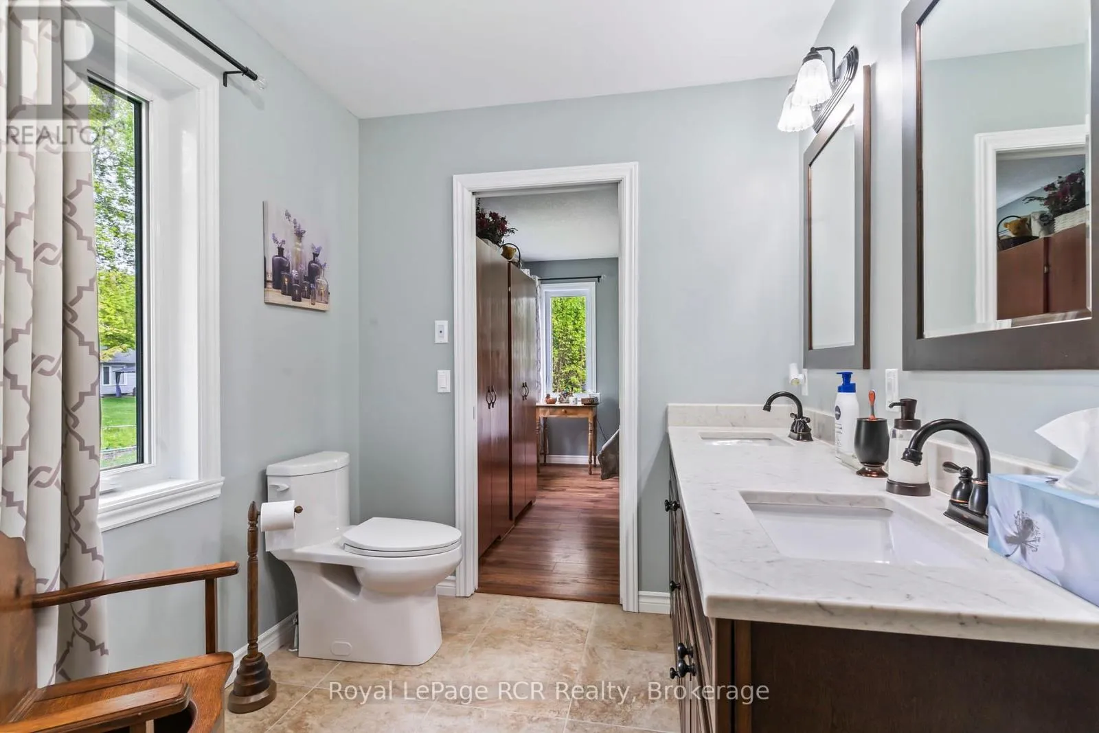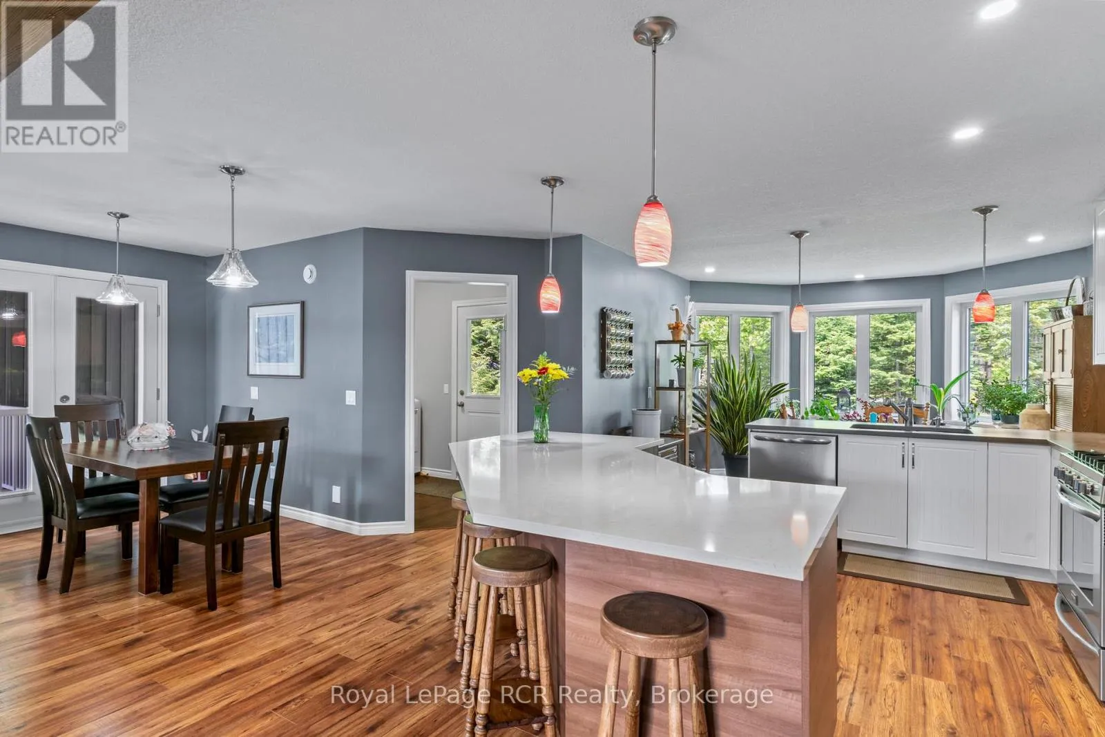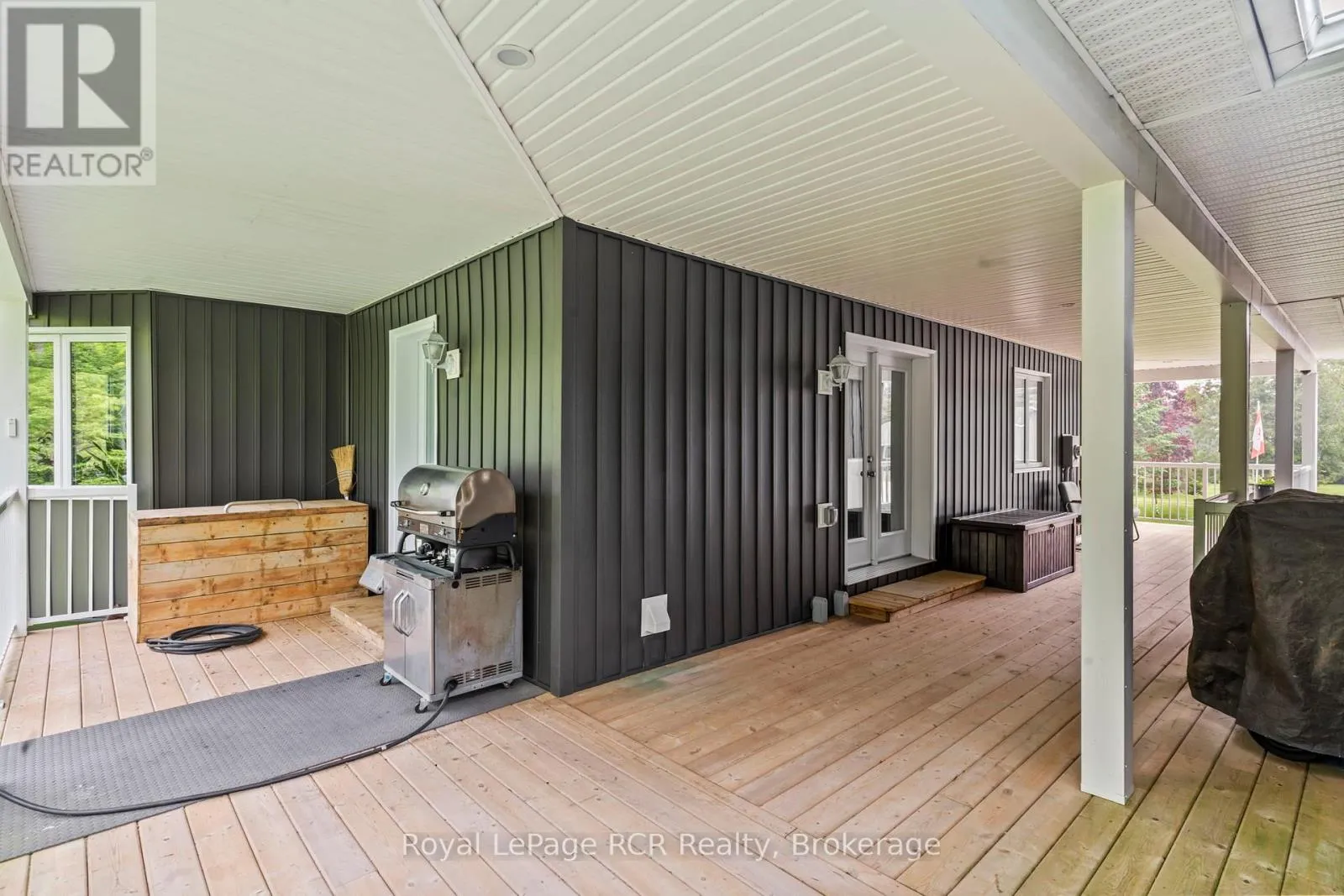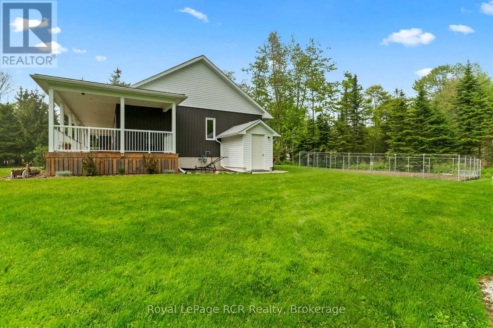 Cross Streets: Abenaki and Cayuga. ** Directions: Turn East off Huron Road, onto Abenaki then onto Cayuga Crescent. Welcome to this charming 3 bedroom bungalow located in the peaceful village setting of Point Clark. Situated on a dead-end cul-de-sac, this beautiful 8 year old home offers a serene and private setting, perfect for those seeking tranquility. Upon entering the home, imagine relaxing on the 130' of covered deck space, then you will be greeted by an open concept layout, creating a spacious & inviting atmosphere. The open kitchen, dining room, dinette and living room offer an entertainers delight. With an abundance of cabinetry, large working island with quartz and concrete countertops making it a chefs delight. Impressive ensuite bathroom with double sinks and large walk in shower, conveniently located off the primary bedroom with a large walk-in closet with custom made barn door. Added in 2025 was a split heat/air unit which will be a perfect for the summer heat. Whether you envision a home gym, a play area for the kids, or a cozy entertainment space, the full unspoiled basement provides ample room to bring creative ideas to life. For car or woodworking enthusiasts you will be pleased to know that this property includes a detached double car garage with an attached workshop. The home features in-floor heat throughout the main floor, basement and workshop. This additional space allows you to indulge in your hobbies or provides ample storage for your vehicles and equipment. The exterior of the house boasts immaculate landscaping, creating a visually appealing and well maintained curb appeal. The yard is thoughtfully designed, making it a perfect space for outdoor activities, gardening (which if fully fenced to avoid wild life) or simply to enjoy the fresh air. Another major bonus is the location to the beach/lighthouse and marina. Imagine taking leisurely strolls along the shoreline, enjoying the sunsets, and embracing the natural beauty mother nature surrounds you in. (id:27476)