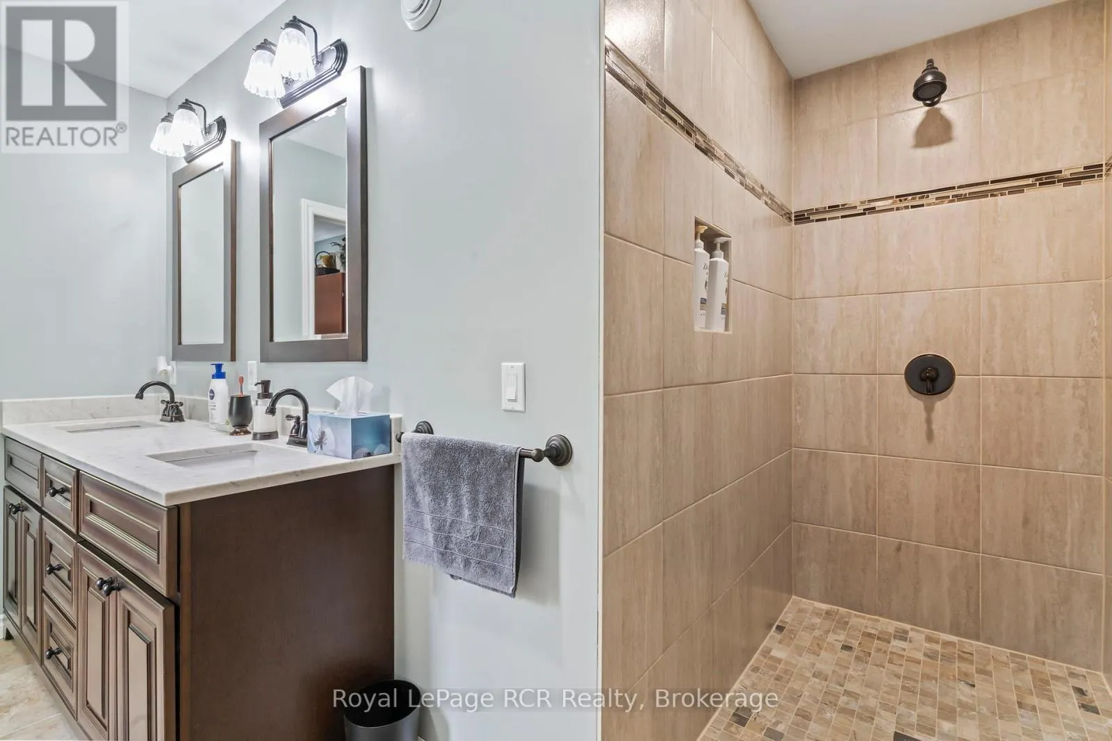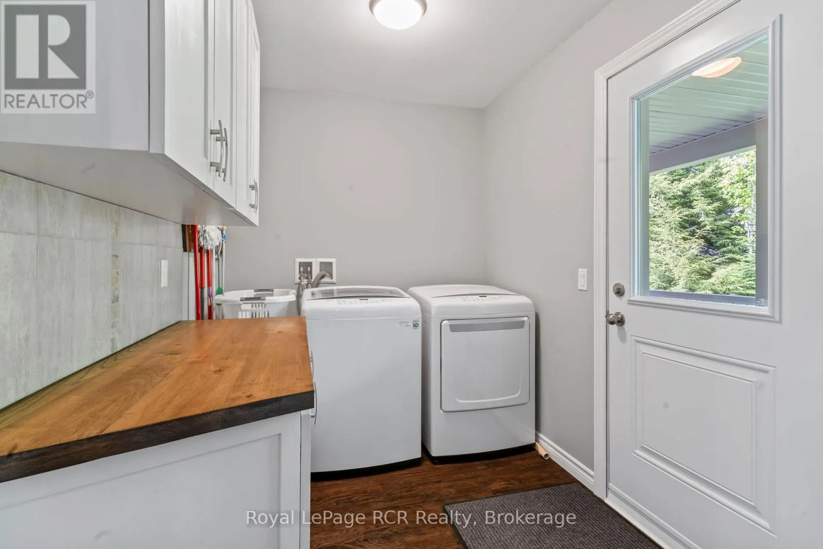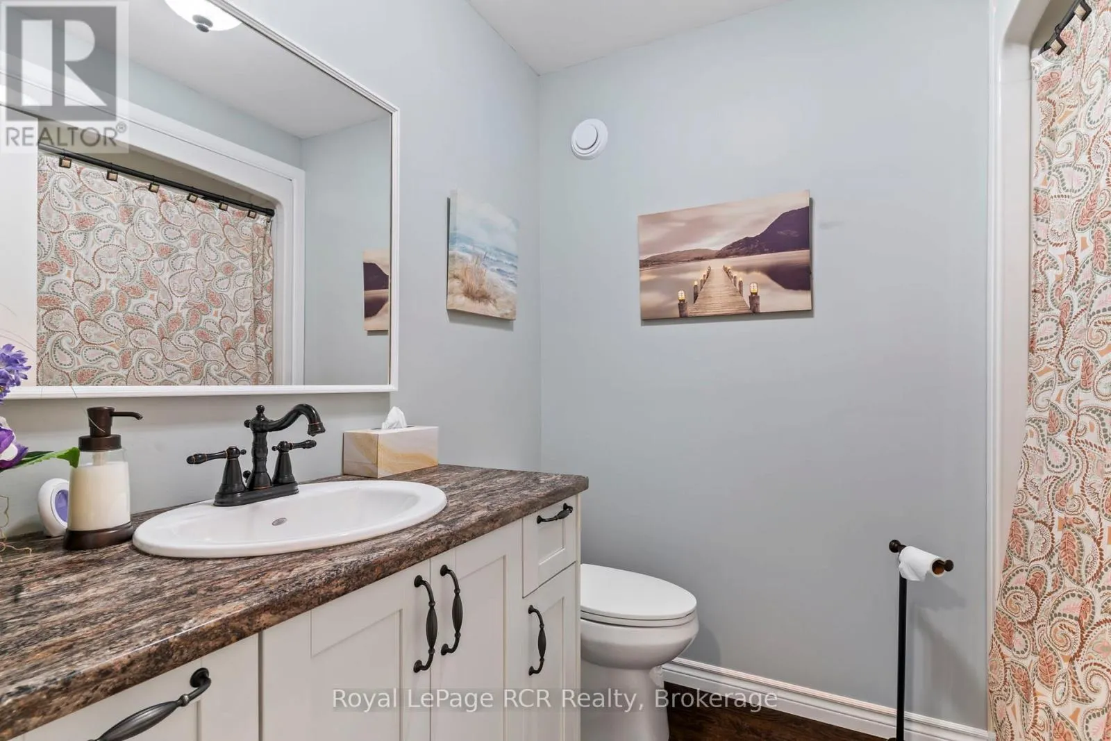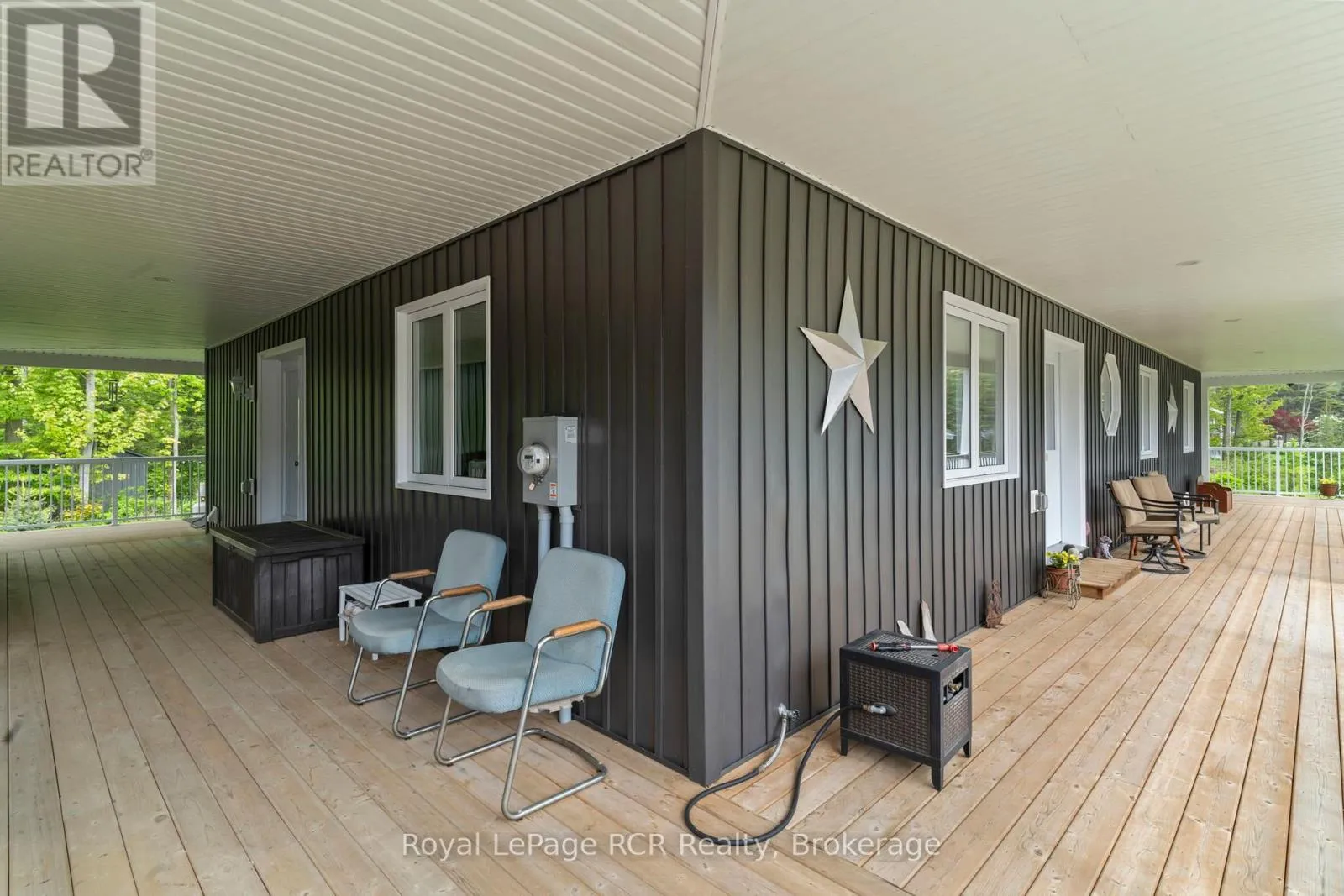 Cross Streets: Abenaki and Cayuga. ** Directions: Turn East off Huron Road, onto Abenaki then onto Cayuga Crescent. Welcome to this charming 3 bedroom bungalow located in the peaceful village setting of Point Clark. Situated on a dead-end cul-de-sac, this beautiful 8 year old home offers a serene and private setting, perfect for those seeking tranquility. Upon entering the home, imagine relaxing on the 130' of covered deck space, then you will be greeted by an open concept layout, creating a spacious & inviting atmosphere. The open kitchen, dining room, dinette and living room offer an entertainers delight. With an abundance of cabinetry, large working island with quartz and concrete countertops making it a chefs delight. Impressive ensuite bathroom with double sinks and large walk in shower, conveniently located off the primary bedroom with a large walk-in closet with custom made barn door. Added in 2025 was a split heat/air unit which will be a perfect for the summer heat. Whether you envision a home gym, a play area for the kids, or a cozy entertainment space, the full unspoiled basement provides ample room to bring creative ideas to life. For car or woodworking enthusiasts you will be pleased to know that this property includes a detached double car garage with an attached workshop. The home features in-floor heat throughout the main floor, basement and workshop. This additional space allows you to indulge in your hobbies or provides ample storage for your vehicles and equipment. The exterior of the house boasts immaculate landscaping, creating a visually appealing and well maintained curb appeal. The yard is thoughtfully designed, making it a perfect space for outdoor activities, gardening (which if fully fenced to avoid wild life) or simply to enjoy the fresh air. Another major bonus is the location to the beach/lighthouse and marina. Imagine taking leisurely strolls along the shoreline, enjoying the sunsets, and embracing the natural beauty mother nature surrounds you in. (id:27476)