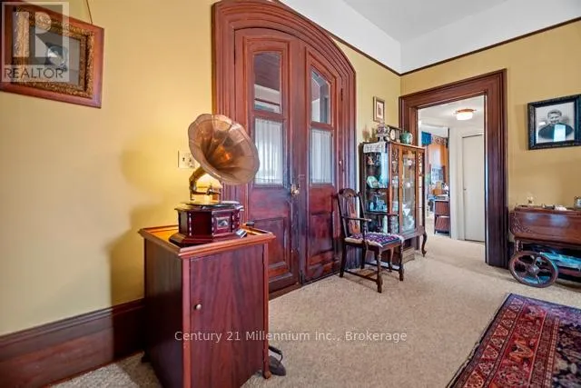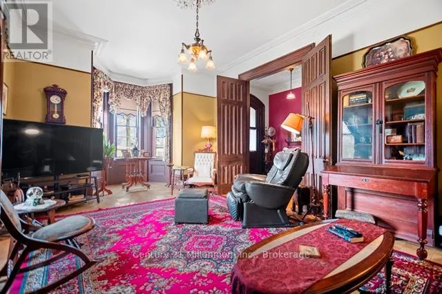 Cross Streets: MacDonald at Jessie. ** Directions: if travelling on Bruce Rd 6 to Ripley. trun onto MacDonald Street turn onto Jessie; if at Ripley where Bruce Rd 6 and 7 intersect- continue south turn onto Jessie. Property is at the very end of Jessie . Watch for the Sign. A timeless icon in Ripley. named in admiration of a French actress, "Bernhardt" has stood proudly at 1 Jessie Street since 1878. With a vision of serving this rural community young Dr Daniel Smith purchased 25 acres , planted trees, subdivided the land, built a pharmacy and designed the home to sit in the middle of the acreage which included his surgery. Incredible craftsmanship, ceilings, walnut doors, cherry woodwork and amazing plaster artisanry adorn this 3000 sq foot home;truly avant garde for the period. At the end of Jessie Street, this property remains defined by the majesty of walnut and other trees. Two working fountains adorn the yards- both will be operational the long weekend in May. The drive winds its way around the home to an amazing garage/shop and the original carriage house. Over the years the property was reduced to just under 1.5 acres. With loving care the common thread has been family. Purchasing the property in 1918, the Martyn family was the third family to occupy the property; a family of 13 children!. Having deep roots in Ripley, the family ownership crossed over two generations. Always a quandary how the modest kitchen provisioned 30 plus guests! The concrete floor basement accommodates the modern heating system with walk ups to the side yard. The current owners purchased this property in 1999 with a passion for heritage and antiquities they lovingly care for every inch of the home and property. Converting one of the six bedrooms into a spa-like bath greatly improved the functionality of the second floor; the original bathroom is now a great storage closet. The den on the second floor is adorned by intricate plaster detail at the ceiling similar to the main floor "parlour". Most of the rooms throughout the home have unusually tall windows ( about 5 feet each!). So many stories to share it's difficult to describe it all here. Loved by families for over 100 years. It's ready to love your family next. (id:27476)