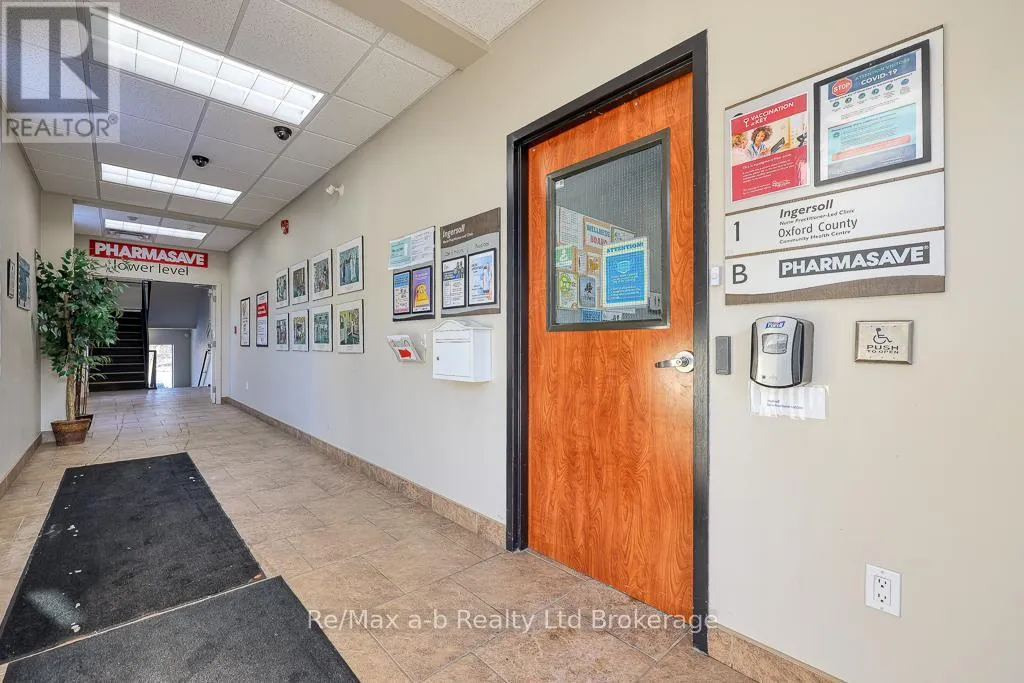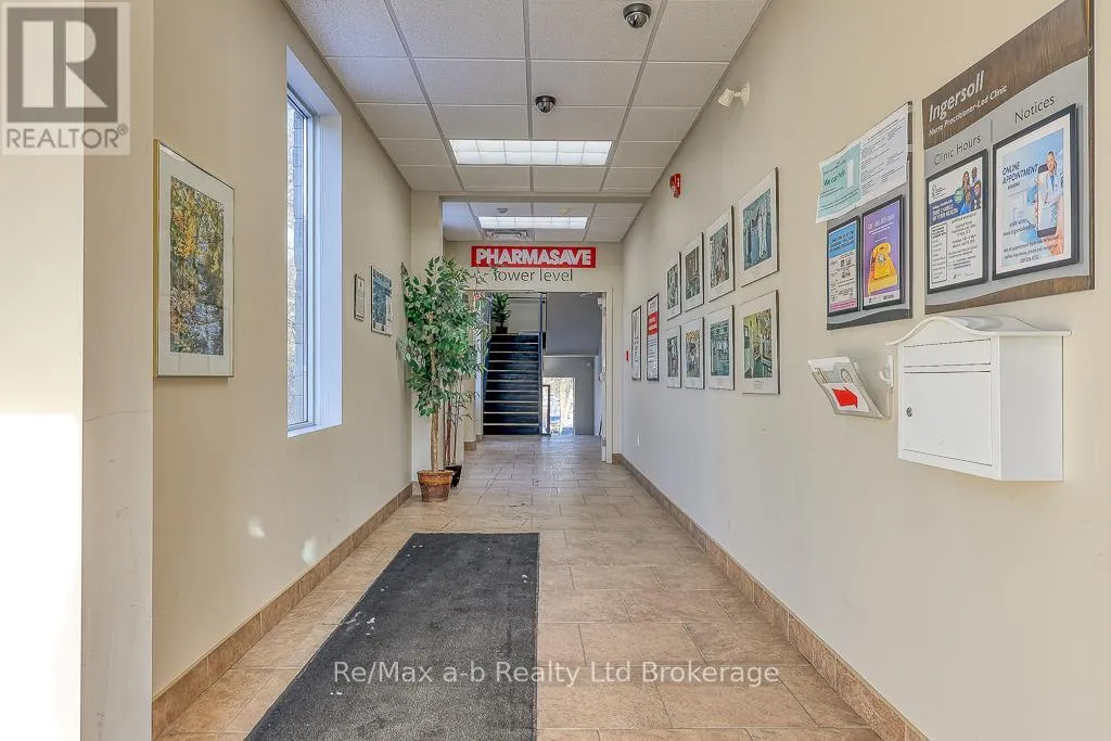 WATER Boost your business's profile and image within this highly visible and professional building located in downtown Ingersoll. This high-profile Health & Wellness Centre has 1476 sq feet of bright open space available for your business. Currently in this space there are three offices, two washrooms and a huge open room with large windows. This space is turnkey for professional offices, retail or service space such as a boutique shop, spa or retail outlet. The building is well laid out and extremely well maintained, it is wheelchair accessible and equipped with automatic door pads both front and rear entrances for easy access. As well as a spacious elevator. Plenty of onsite parking for clients, plus the King Street parking and the building is adjacent to a municipal parking lot. WE HAVE THE SPACE -BRING YOUR DREAM IDEAS! **EXTRAS** TMI $10.00, utilities included in TMI. (id:27476)