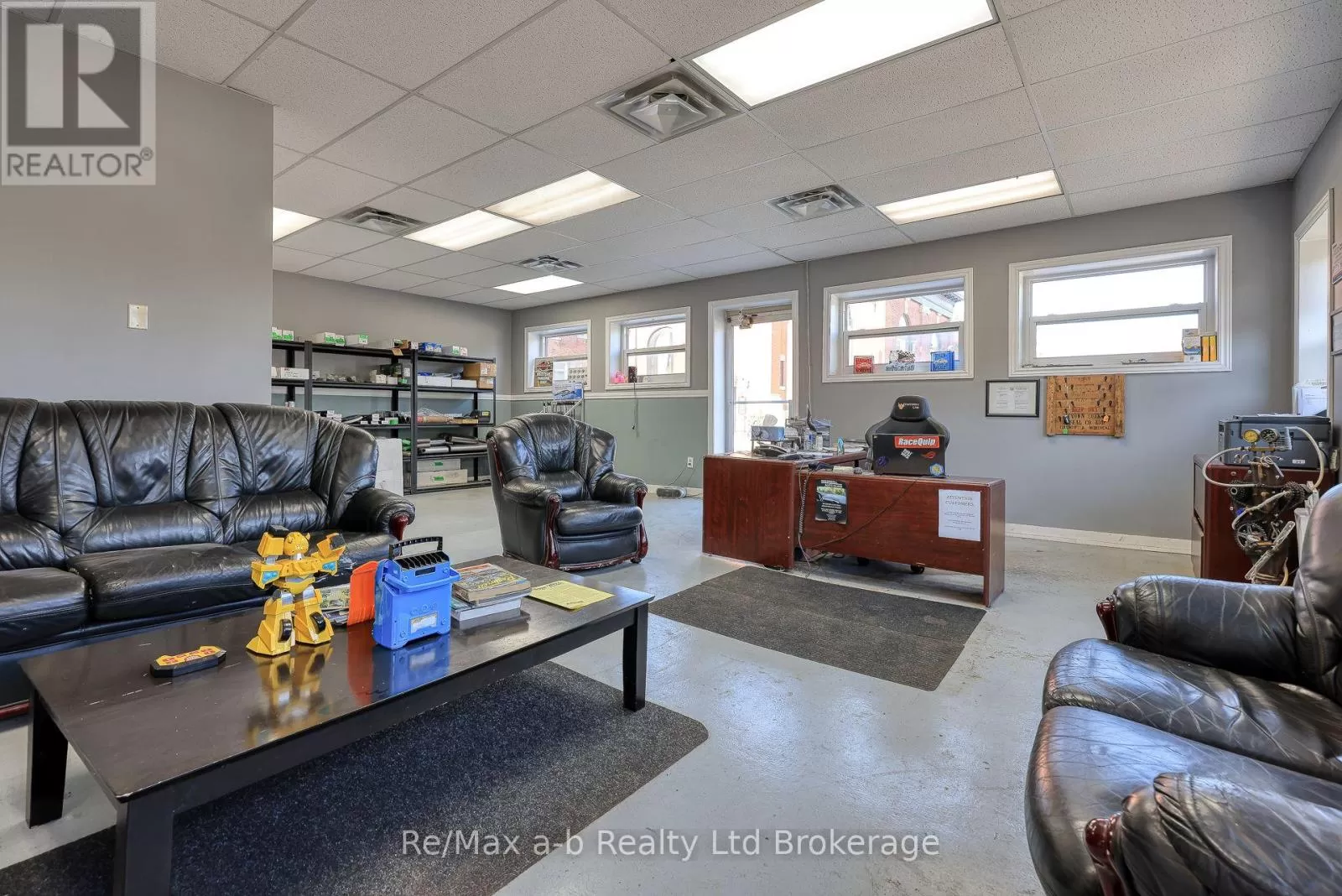 Cross Streets: Water and Charles. ** Directions: East on Charles from Thames Street, corner of Water and Charles Street East, Parking lot across the road included in sale. UNBELIEVABLE POTENTIAL!! Ingersoll Automotive is a thriving full service automotive shop in the heart of Ingersoll. This business comes with two parcels, the 15,000 square feet property that houses two buildings, with a total interior floor space of 6,456 square feet, 4 bathrooms, 8 bays, plenty of office and retail space, and a quick change oil pit. The back building has two bays and plenty of storage, could be used for detailing (has separate sewer, water hook-up) or rented out separately. The large front office used to be a separate business and could easily be rented out again or used for retail space. Across Water Street is the second parcel (over 2,000 sq ft) with more than ample parking and tire storage trailer. Ingersoll Auto Glass is also operated within Ingersoll Automotive. The current owner has established a large customer base with fantastic google reviews and repeat clientele. The online security system links to your phone for peace of mind. This is a must see property for anyone that wants to continue growing this business. The possibilities are endless!! The current owner/mechanic would entertain staying on and has over 20 years experience and a great rapport with the current clients. (id:27476)