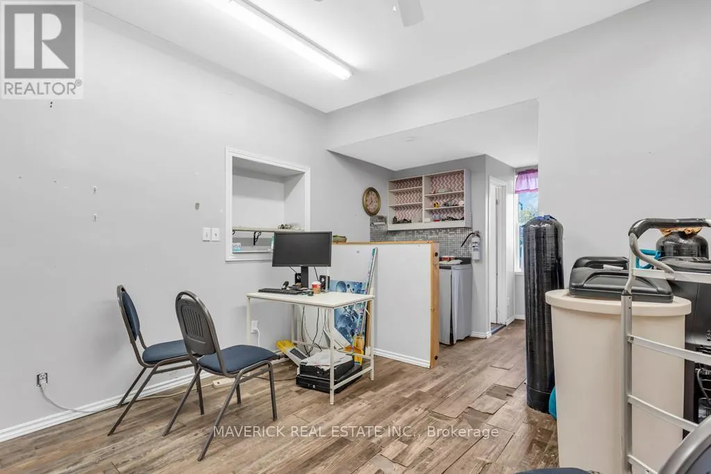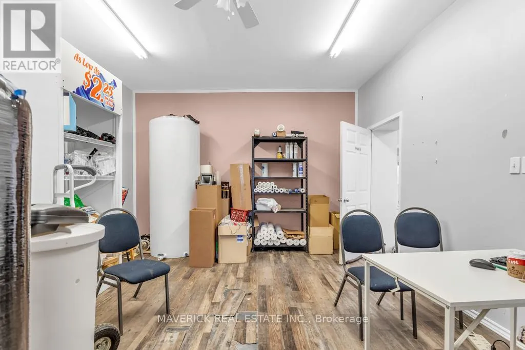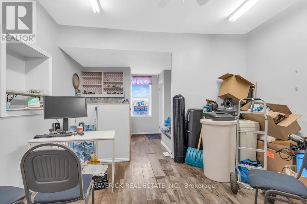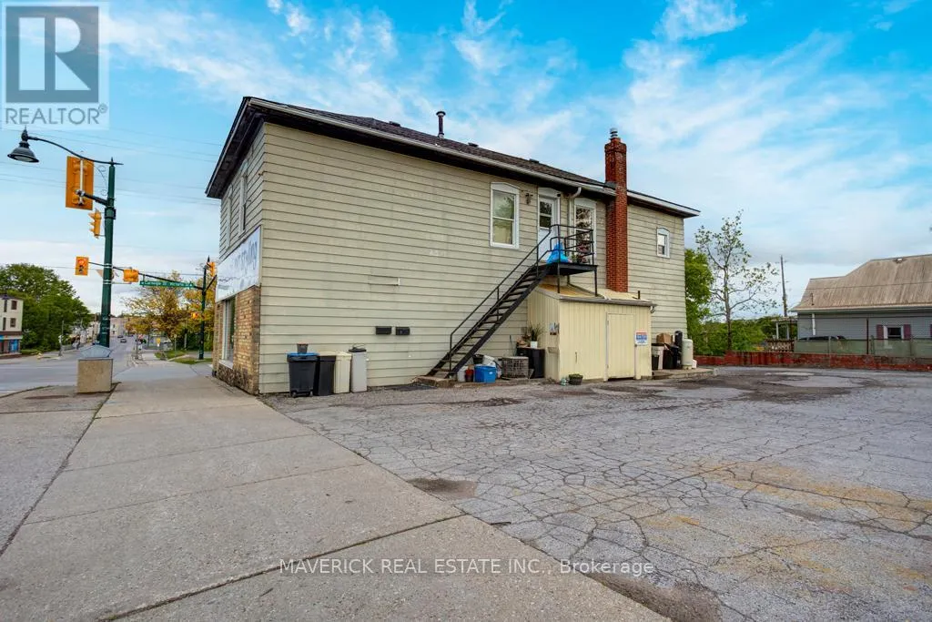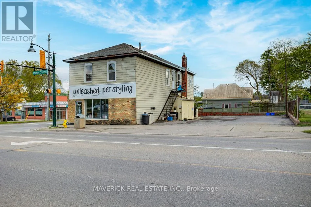 Cross Streets: Victoria St. ** Directions: Corner of Victoria St & Thames St N. Located at the high-traffic corner of Victoria and Thames in the heart of Ingersoll, this turn-key two-storey commercial building offers an exceptional opportunity for investors, or those looking to be business owners, with a versatile live/work setup. The property features two well-maintained 2-bedroom residential units on the upper level, both pay their own utilities and are currently rented to long-term tenants with the option to vacate if desired. On the main level, there are two fully leased commercial storefronts; one home to a pet grooming business and the other to a water treatment equipment company providing immediate rental income and business continuity. The buildings corner lot location ensures maximum visibility and easy access, with two entrances and ample on-site parking for tenants, customers, or clients. Inside, the main floor boasts a carpet-free, open-concept layout with a welcoming reception area, dedicated storage space, and a separate entrance for convenience. Additional storage is available in the basement, making the property even more practical for businesses with inventory or equipment needs. This mixed-use property presents multiple possibilities: continue operating as a reliable income-generating investment, occupy the commercial space while living upstairs, or explore redevelopment options in this prime, central location. Expenses include; Gas for the calendar year 2024 total $1443.56 & Hydro $3974.07. With strong foot traffic, great exposure, and flexible zoning, this is a rare opportunity to own a truly dynamic building in one of Ingersoll's most prominent intersections. (id:27476)