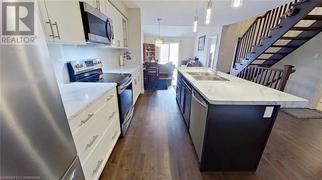 Harris St & Chamberlain Ave. 1.5 storey townhouse, built in October 2017, main floor bedrooms for convenience, has walk-in closet with cheater door to ensuite and main floor laundry. The upper level is fully carpeted and has good size bedroom. All bedrooms have large closets, loft for relaxing or entertaining, partially finished lower level with rough in for third bathroom, well maintained, all appliances included, energy efficient, HRV system and located in quiet area. This property is minutes to highway 401, close to school, hospital, grocery store, gas station. (id:27476)