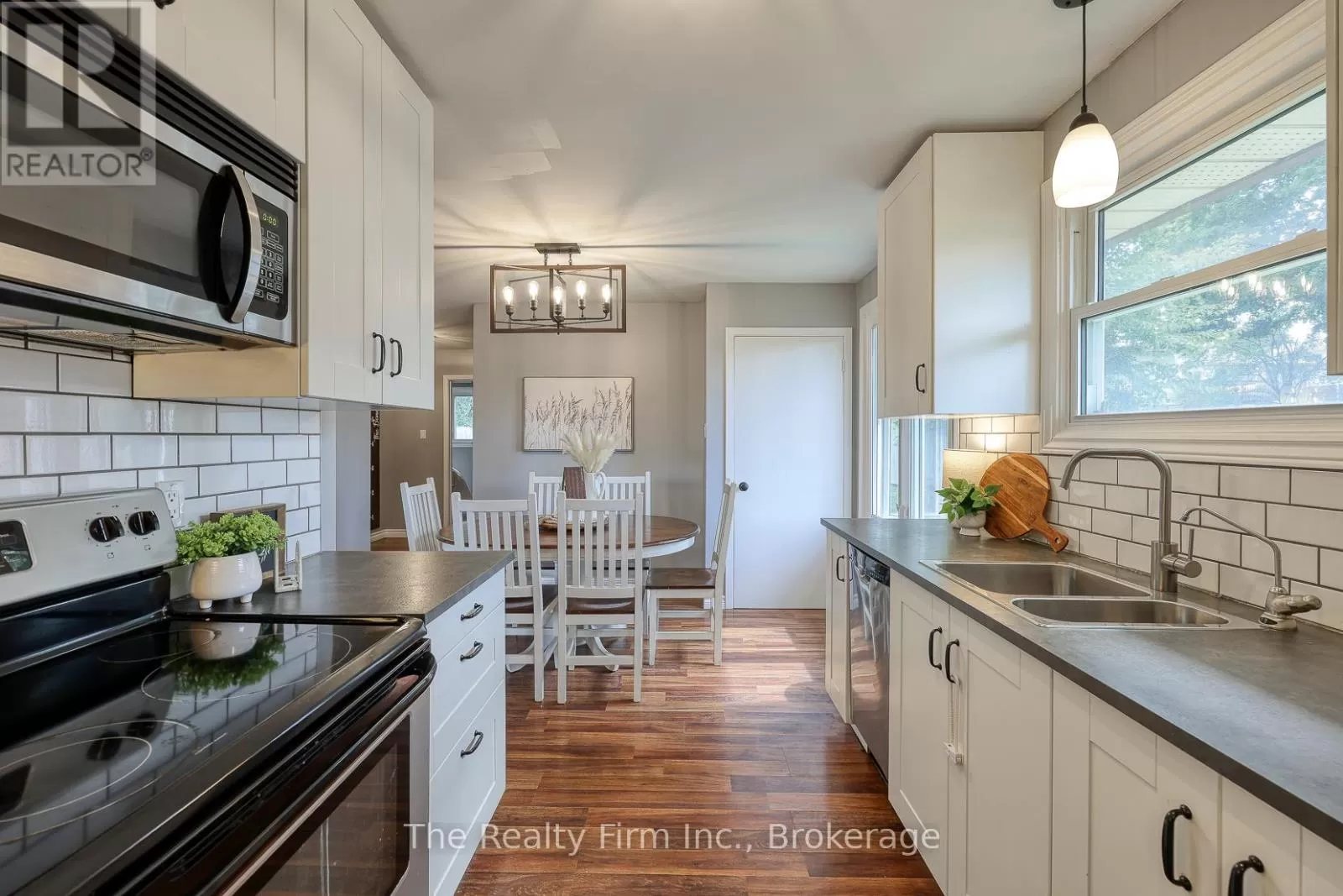 Cross Streets: Charles St East & Taylor St. ** Directions: Beachville Road into Ingersoll changes into Charles Street. Adorable and Affordable! This super cute home is move in ready! Perfect for first time home buyers offering 3 + 1 bedrooms and 2 bathrooms, 2nd bedroom has patio door to huge fully fenced private backyard. Inviting front foyer is ideal for welcoming guests which opens up to a sun-filled living room featuring an oversized picture window which showcases stunning sunsets all year round and serene views of snow-covered treetops in the winter! The heart of this home is a spacious, upbeat eat-in kitchen offering access to side yard and lower level. The Lower level is finished featuring a Family Room with new flooring, a 4th bedroom or office, utility room w/ laundry and 2 pc bathroom. The oversized single car garage is attached and has inside entry to the basement. Prime location offering seamless access to highways for daily commuters. Ideally situated within walking distance to downtown and most amenities. Walking distance to Royal Roads Public School and convenient school bus pick up for St. Jude's Catholic Elementary School is just 3 doors down from the home! Updates: Furnace 2020, newer windows on main floor, Washer & Dryer 2022, Back steps 2025, Water Softener, main floor lighting 2025. (id:27476)
