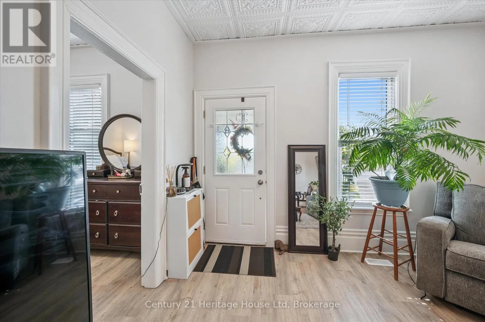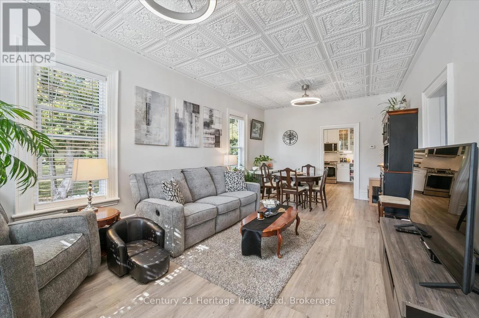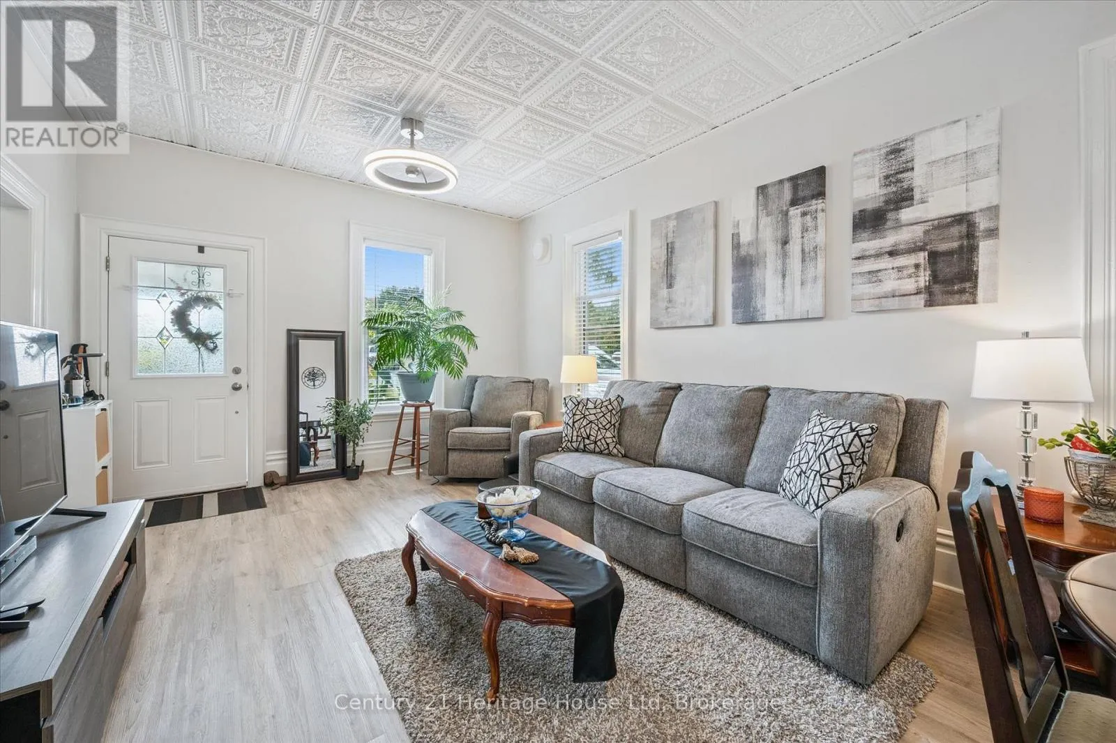 Cross Streets: Bell Street. ** Directions: FROM HWY 401 TAKE EXIT 218 (HARRIS ST/19 NORTH) TO INGERSOLL. AT 3 WAY STOP, FOLLOW CANTERBURY ST TOWARD DOWNTOWN. TURN NORTH ON THAMES ST S THAT TURNS INTO THAMES ST N. PROPERTY ON EAST SIDE. Step into this stunningly renovated 2-bedroom bungalow, where modern finishes meet timeless charm. Set on a generous lot, this home offers an abundance of outdoor living space, perfect for gardening, entertaining, or simply relaxing in your own private retreat. Inside, you'll be welcomed by an open-concept design that creates a bright and airy flow throughout the main living areas. Oversized windows allow natural light to pour in, highlighting the new chic natural flooring and fresh, modern palette that runs seamlessly through the home. The heart of the home is the beautifully redesigned kitchen, complete with brand-new stainless steel appliances, sleek countertops, and refreshed cabinetry. Whether you're preparing a quick meal or hosting friends and family, this kitchen delivers both style and function. The spacious bathroom has been fully updated, featuring contemporary finishes and a thoughtful design that blends comfort with practicality. Both bedrooms are generously sized, offering cozy retreats with ample closet space. Outdoors, the possibilities are endless. With its large lot, you'll have plenty of room to create your dream backyard whether that means a garden, play area, or outdoor entertaining space. This home is truly move-in ready, with every detail carefully considered. Perfect for first-time buyers, downsizers, or anyone seeking a stylish and functional single-level home, this bungalow is a must-see. (id:27476)