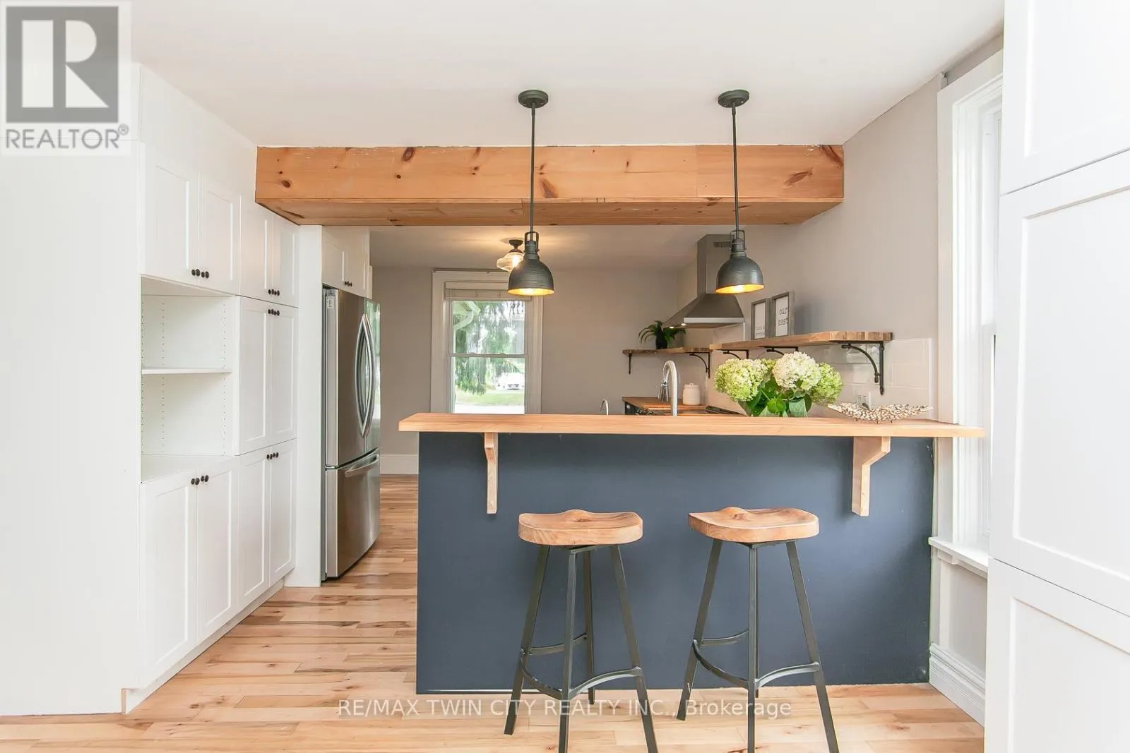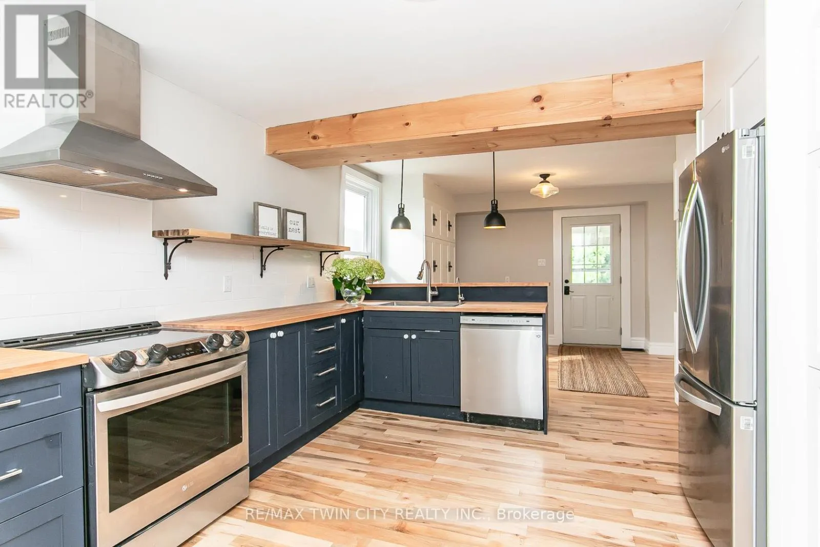 Cross Streets: Clarke and King. ** Directions: Just Off 401exit. Clarke to Wellington. This beautifully restored Farmhouse seamlessly blends timeless character with modern upgrades. Set well off the road, on a generous 2/3 acre lot, the property offers privacy, space & incredible potential - all just minutes from amenities & 401 highway access. The heart of the home is the skillfully renovated kitchen, showcasing rich indigo cabinetry, maple counter tops, new SS appliances, floating shelves, and breakfast bar. With a raised sink and vintage tile, the spacious main floor powder room complements the farmhouse feel. The main living & dining areas showcase classic trim work, large new windows & garden doors that lead to the remodeled covered porch perfect for enjoying tranquil views of mature trees, lilacs, raspberry & mulberry bushes alongside frequent visits from birds & local wildlife. Upstairs, the expansive primary suite offers flexibility keep it as an impressive retreat, add a nursery or creative space, or easily convert the home back into a 3 bedroom layout. The breathtaking, spa-inspired bathroom features a freestanding soaker tub, large open walk-in shower, private water closet & ample storage. A conveniently located second floor laundry room comes complete with new appliances (a 2nd set in bsmt!) & a tub/shower combo for everyday conveniences. Step out onto the upper balcony to enjoy views of the park & nearby trails. Hardwood floors throughout and lighting fixtures thoughtfully chosen to complement the rustic charm. Freshly painted from trim to ceiling, this home is move-in ready! The expansive lot offers room to dream consider adding a pool, workshop, or exploring the possibility of a secondary dwelling unit, with ample parking for 4+ vehicles & a detached garage. Ideally located across from the community center (with pool!) and no back neighbours! This is more than a home its a lifestyle! Come experience the perfect blend of City conveniences and country charm. Dont miss the chance to make it yours! (id:27476)