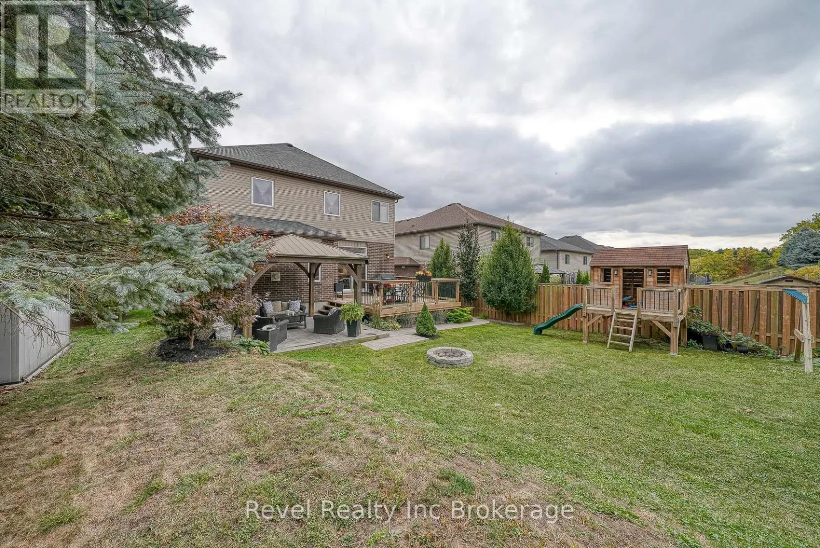 Cross Streets: Kirwin. ** Directions: From 401, take Harris St Exit, continue to Harris St, Left onto Clarke Rd, Right onto Kirwin Dr, Left onto Brookfield Court. Welcome to 2 Brookfield Court, nestled in one of Ingersolls most desirable family-friendly neighbourhoods! This beautifully updated 3-bedroom, 3-bathroom, 2-storey home offers the perfect mix of comfort, style, and functionality. The open-concept main floor features hardwood and stone tile flooring, 9ft ceilings, and a stunning kitchen with granite countertops, staggered cabinets with crown molding, under-cabinet lighting, and pot lights. The bright dining area leads to sliding doors and a 15x16 deck with a 12x14 cedar gazebo, ideal for relaxing or entertaining. The cozy living area includes a gas fireplace, and the main floor mudroom offers easy access to the insulated 2-car garage with a man door. Upstairs, you'll find three spacious bedrooms, including a primary suite with ensuite, laundry conveniently located beside the master, and a loft area that can easily be converted into a fourth bedroom. The basement provides excellent potential for future development. Outside, enjoy the partially fenced yard, stamped concrete walkway and pad, shed, and custom-built kids clubhouse. With a double driveway that fits four vehicles and close proximity to public and Catholic schools, parks, and local amenities, this home truly has it all, style, space, and a prime location. (id:27476)