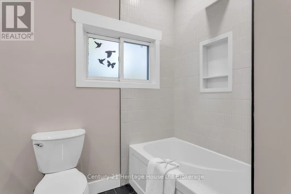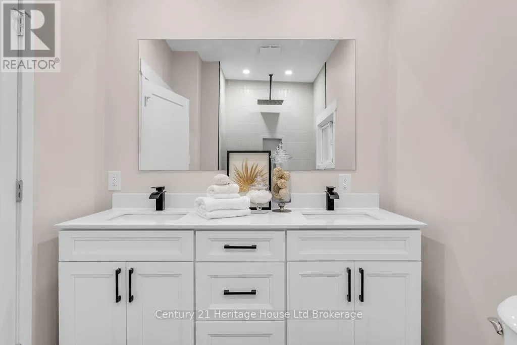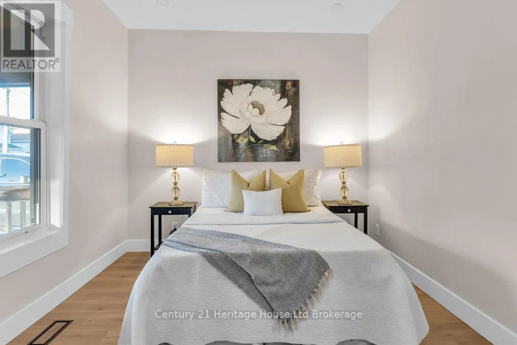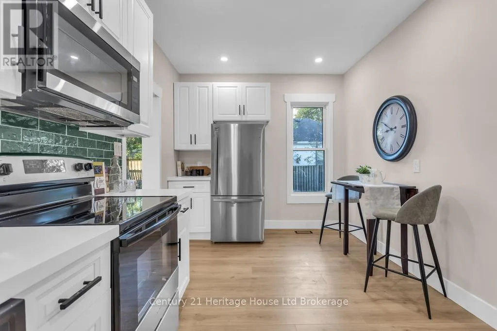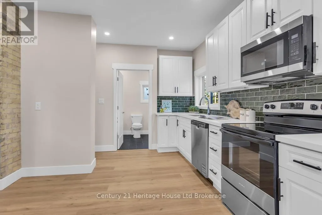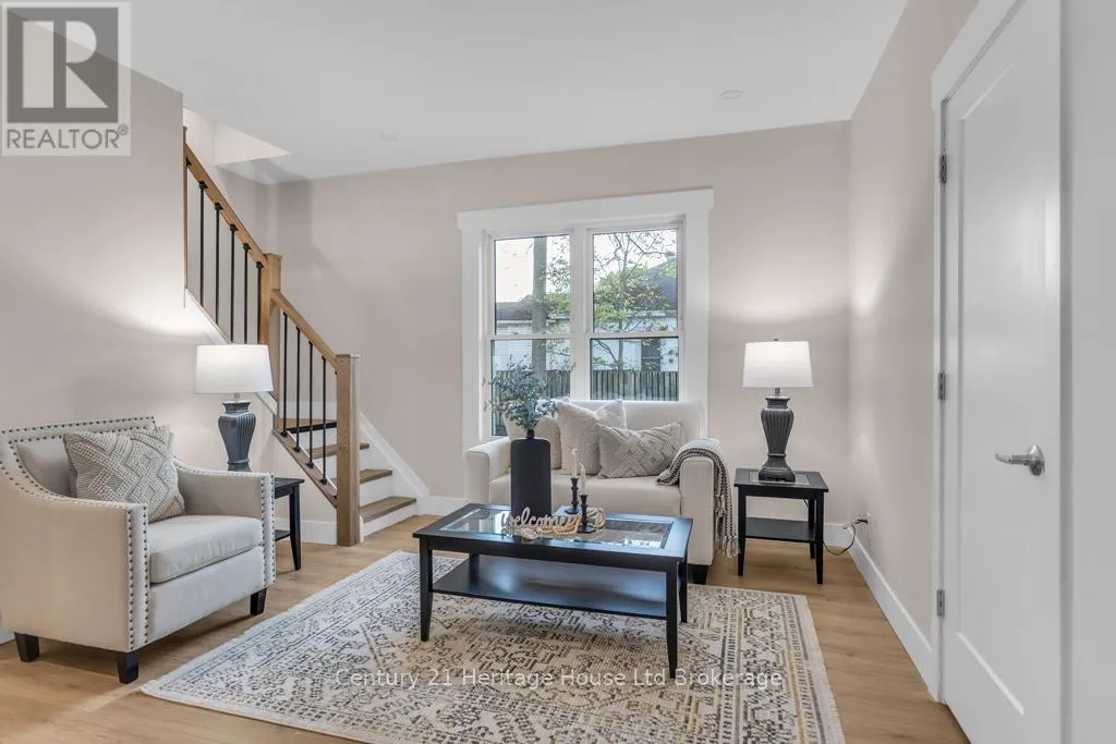 Cross Streets: Thames Street. ** Directions: Heading North on Thames St turn west onto Victoria St. This 3 + 1 bedroom home has been professionally renovated back to the studs. The layout, kitchen, 2 bathrooms, laundry room, roof, flooring, appliances are all brand new. Walking into this charming home, you'll feel like your in trendy Wortley Village however... houses in Wortley don't have a 222 foot deep lot and they certainly don't have an attached double car garage. The beautiful kitchen is at the back of the home overlooking a large backyard, off the kitchen there is beautiful 4 season room, surrounded by windows. It can be used as a dining area or den - it's a perfect spot to hang out. Thru the sliding doors is a deck, another perfect spot to enjoy the deep lot. Your not backing onto houses so it's private. The main bathroom is stylish with all new fixtures including his and her sinks. There is also a new 2 piece powder room for convenience. The main laundry is off the garage with brand new appliances and cabinetry. An added bonus is the upstairs bedroom complete with it's own separate den/office. A covered front porch and some exposed brick inside show that the character of this charming home has been thoughtfully retained. (id:27476)