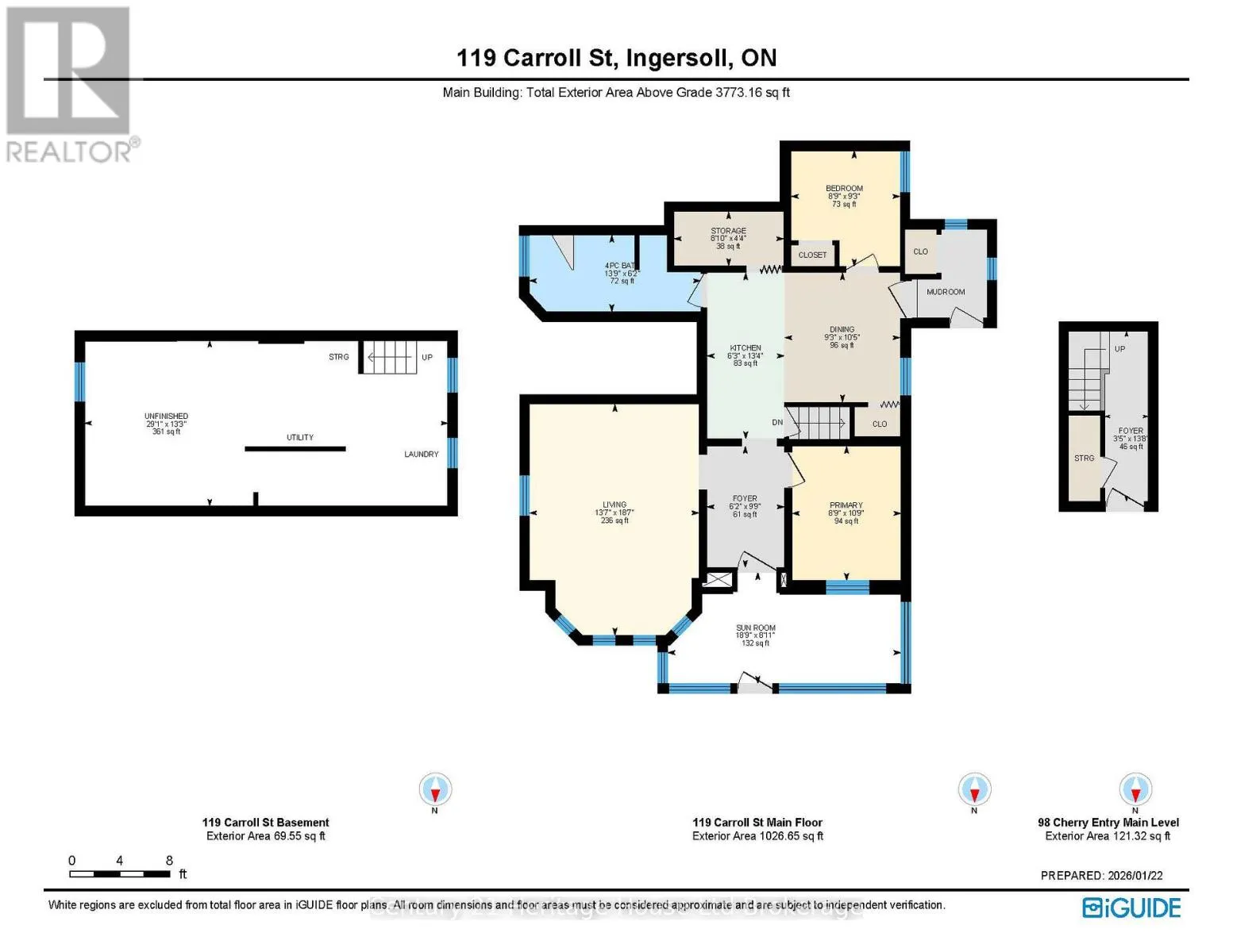 Cross Streets: Cherry Street / Carroll Street. ** Directions: From Charles Street E turn east onto Carroll Street. Home is on the corner of Cherry and Carroll. Well-maintained fourplex offering flexibility, stable income, and future upside in a central Ingersoll location, with one dedicated parking space per unit at the rear, functional layouts, and documented capital improvements. The vacant unit at 100 Cherry Street features two bedrooms, a kitchen, a four-piece bathroom, generous closet space, and attractive high stair access, providing an excellent opportunity for an owner-occupant, extended family living, or leasing at market rent to a tenant of the buyer's choosing. The unit at 100A Cherry Street is a three-bedroom layout offering a kitchen, living room, three-piece bathroom, storage area, and laundry hookups, creating a practical space well suited to long-term tenancy. The unit at 98 Cherry Street is a one-bedroom unit with a large eat-in kitchen, four-piece bathroom, closet space, porch, basement access, and a newer boiler, offering strong functionality and efficient use of space. The unit at 119 Carroll Street features two bedrooms, a spacious living room, kitchen, four-piece bathroom, ample closet space, basement access, a front porch, a newer boiler, and a private driveway with parking for two vehicles. Property updates include a newer roof completed in 2020, updated windows installed at time of purchase, four rented water heaters, and a well-documented expense profile, supporting long-term ownership and ease of management. This property presents multiple possibilities for investors, multi-generational buyers, or those seeking to live in one unit while generating income from the remaining units, with one vacant unit allowing immediate flexibility. (id:27476)