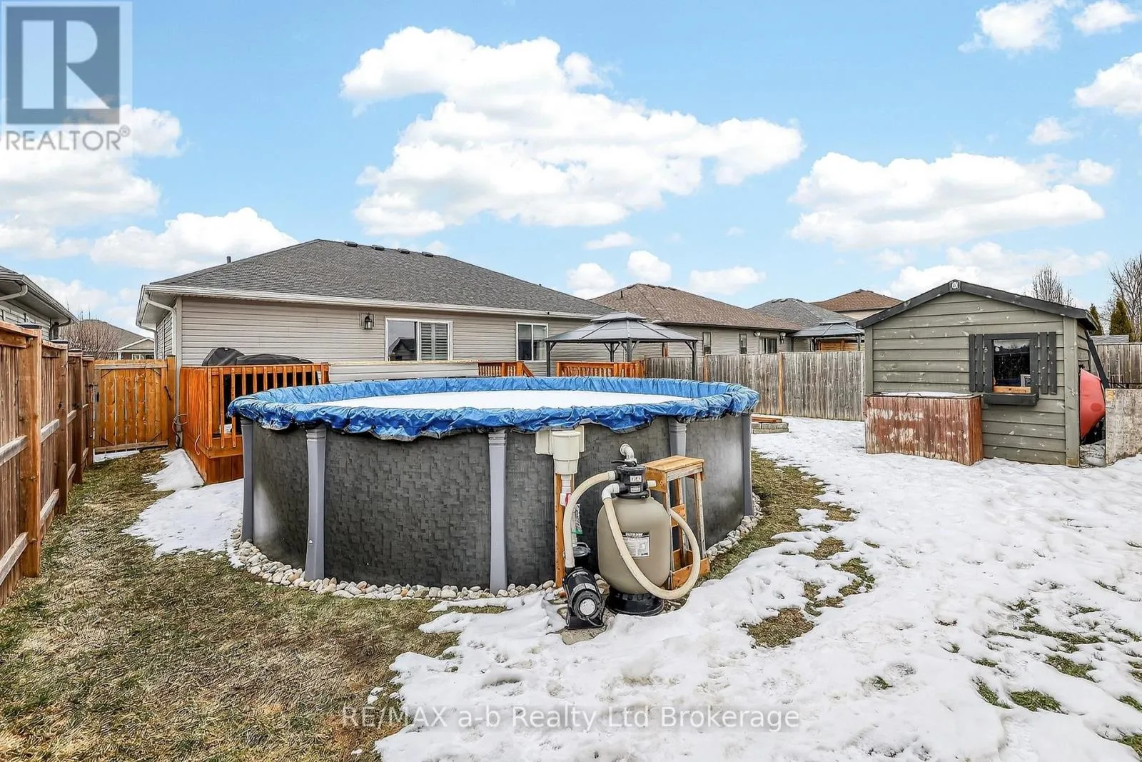Cross Streets: Fuller. ** Directions: From David Street turn onto Walker Rd. Property located on the west side. Welcome to this beautifully maintained 2+1 bedroom bungalow offering 2,018 sq ft of finished living space, located in a desirable Ingersoll neighbourhood within the Royal Roads Public School district. With its bright open layout, quality finishes, and excellent outdoor space, this home offers comfortable living both inside and out.The main floor features 1,325 sq ft with laminate flooring and a spacious open-concept design. The kitchen offers granite countertops, porcelain tile, abundant cabinetry, glass tiled backsplash, stainless steel appliances, and a large breakfast bar that overlooks the living area-ideal for everyday living and entertaining. Large windows fill the home with natural light, creating a warm and inviting atmosphere.The primary bedroom includes a walk-in closet and 5pc ensuite, the main level also offers a second bedroom and full bathroom.The finished lower level expands the living space with a generous family room, an additional bedroom, and a potential fourth bedroom already pre-framed and is currently used as storage, offering excellent potential for growing families or guests.Step outside to the back deck, where you'll find a 2-year-old saltwater above-ground pool, perfect for summer enjoyment, along with a storage shed and fenced yard.Additional highlights include a heated double car garage, great storage, custom blinds, and a location that is close to parks with quick and easy access to Highway 401, making commuting convenient.A wonderful opportunity to own a move-in ready bungalow in a family-friendly neighbourhood. (id:27476)