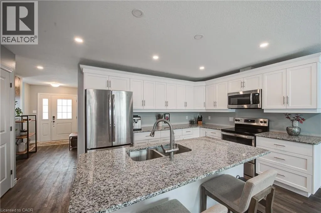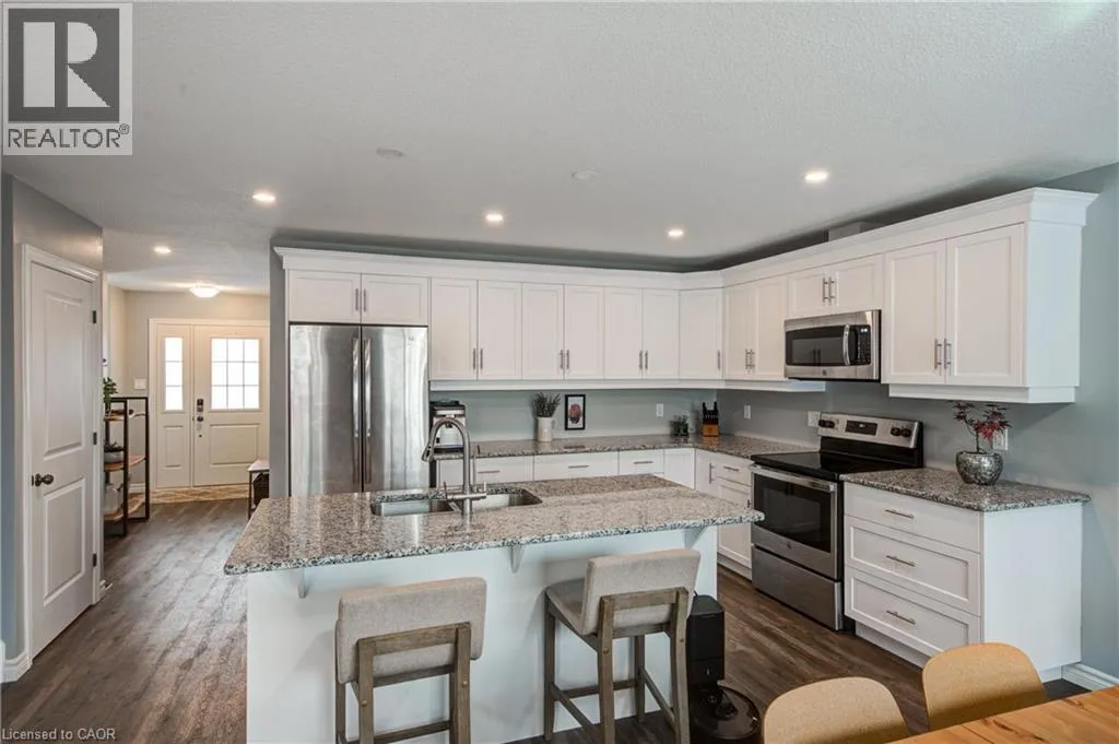 from Whiting Street turn west onto Minler, at end of Minler there is a private road with semi-detached homes, pull in here Move-in ready and nearly new, this stylish semi-detached home with an attached garage is located in the growing community of Ingersoll. Welcome to 3-28 Minler Streetâwhere thereâs truly nothing to do but move in and enjoy. This thoughtfully designed home offers 3 bedrooms and 3 bathrooms, including a private ensuite in the primary bedroom. The main floor welcomes you with a bright, open-concept layout filled with natural light from large windows and enhanced by pot lights throughout. The crisp white kitchen features modern cabinetry, stone countertops, stainless steel appliances, and a large islandâperfect for both everyday living and entertaining. Upstairs, the generously sized primary bedroom includes a walk-in closet and a full private ensuite. Two additional well-proportioned bedrooms and another full bathroom complete the upper level. The unfinished lower level is ready for your ideas, offering ample space for a future family room along with a convenient 3-piece bathroom rough-in. Outside, the home is just as impressive. The well-maintained exterior features a large pressure-treated deck with gazebo, a fully fenced backyard, and a two-year-old shed. Beautiful landscaping creates a welcoming outdoor space to relax and enjoy. Located in a great area close to schools and amenities, this almost-new semi-detached home offers space, style, and convenience in one fantastic package. (id:27476)