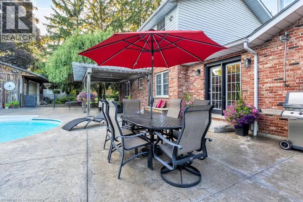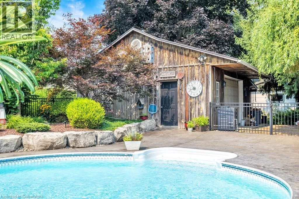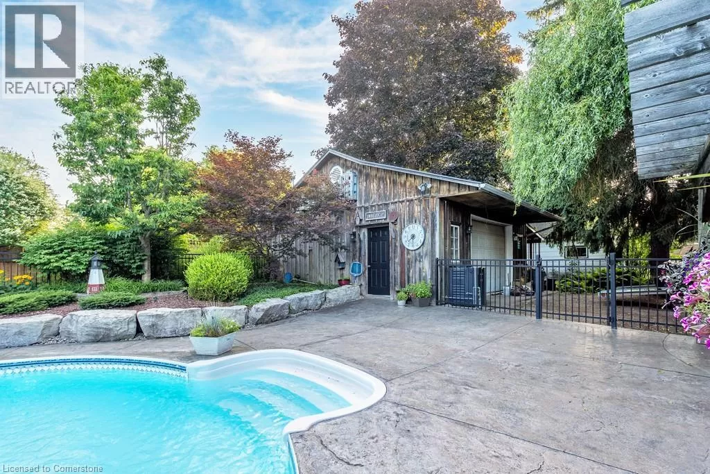Blandford St to Balsam St. Nestled in the heart of Innerkip, this 4 bedroom family home is a true gem that blends modern comfort with small-town charm. From the moment you arrive, the curb appeal shines - mature landscaping with a brick pathway leads you to the front verandah complete with sitting area. The landscaping continues in the rear yard with a stamped concrete patio, pergola, ambient lighting and 20' x 40' salt water pool and creates a back yard oasis. Perfect for summer barbecues and relaxing evenings under the stars. A generous side yard adds even more to the outdoor space - ideal for kids to play or gardening. The detached 24'x 24' workshop is a rare find - gas heated and powered for your tools and is a dream haven for hobbyists or collectors. Step inside to discover an updated kitchen, ample cabinetry and newer stainless steel appliances - a delight for any home chef. Gleaming Japanese hardwood flooring (2016) flows throughout the main living areas, lending warmth and character with its rich tones. The living and dining spaces are bright and inviting, ideal for everyday family living and entertaining guests. A finished basement with convenient walk-down access from the attached double garage offers a versatile area for movie nights, a playroom, gym or potential in-law suite . This home has been meticulously maintained with numerous upgrades, including a new furnace (2023), added insulation (2021) for energy efficiency, water softener, on demand water heater and more. Situated on a quiet street in a family-friendly neighbourhood, you'll enjoy the small town tranquility of Innerkip while being just minutes from Woodstock and Highway 401/403 for an easy commute. Spend weekends at nearby parks, trails and the golf course or simply in your own backyard. With its move in ready condition, modern amenities and ample space inside and out, this property offers everything you need to start making family memories. Your Innerkip dream home awaits - make it yours! (id:27476)