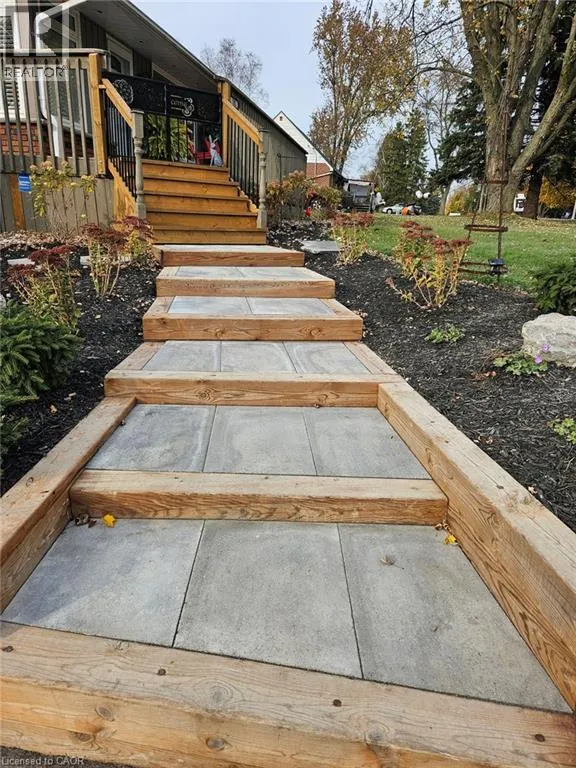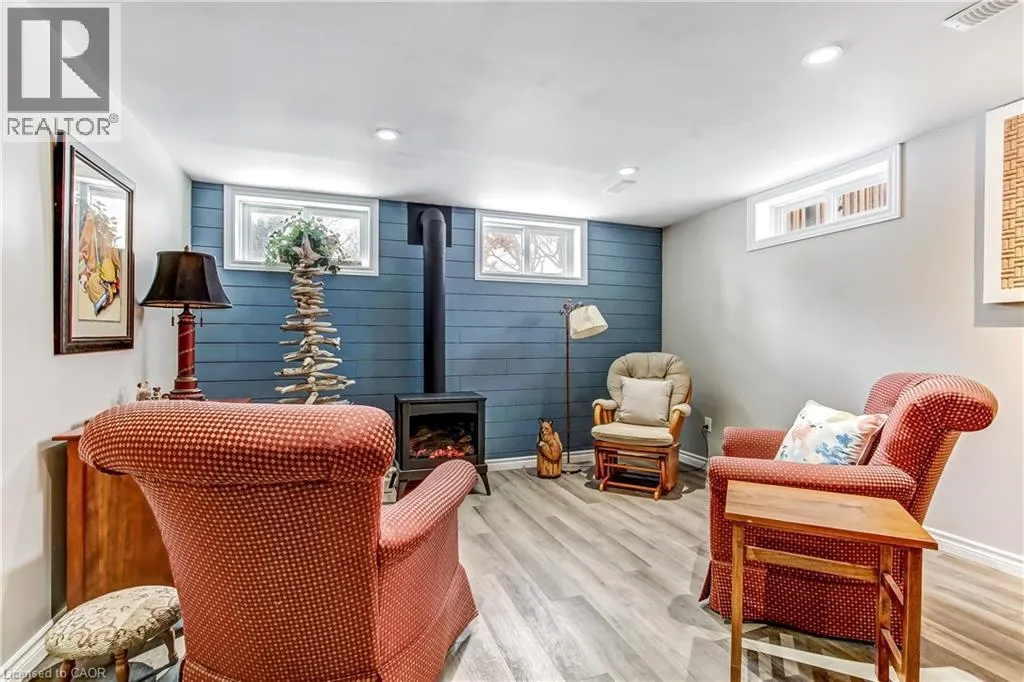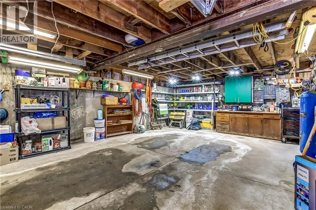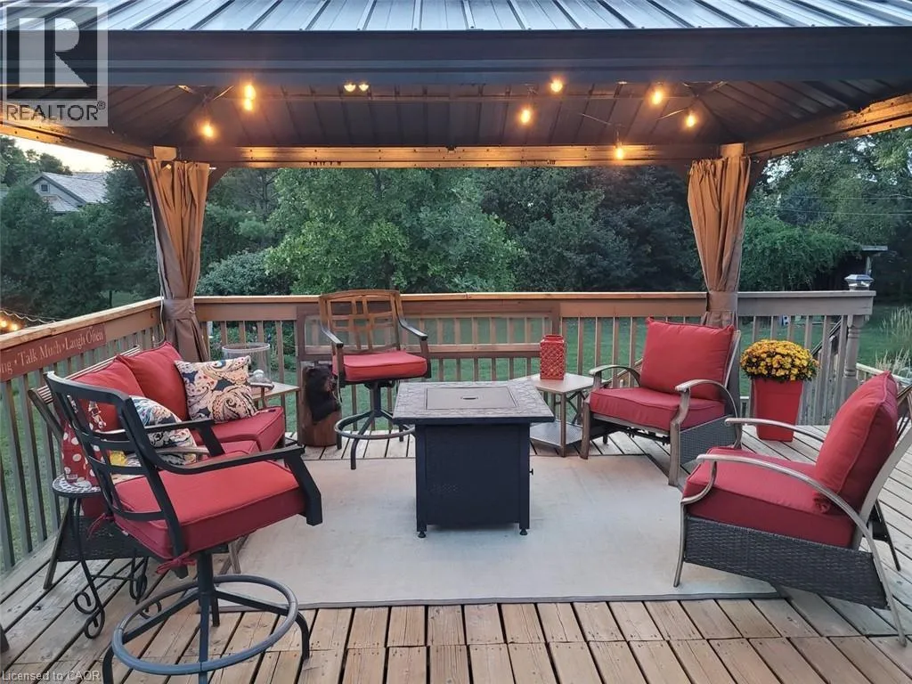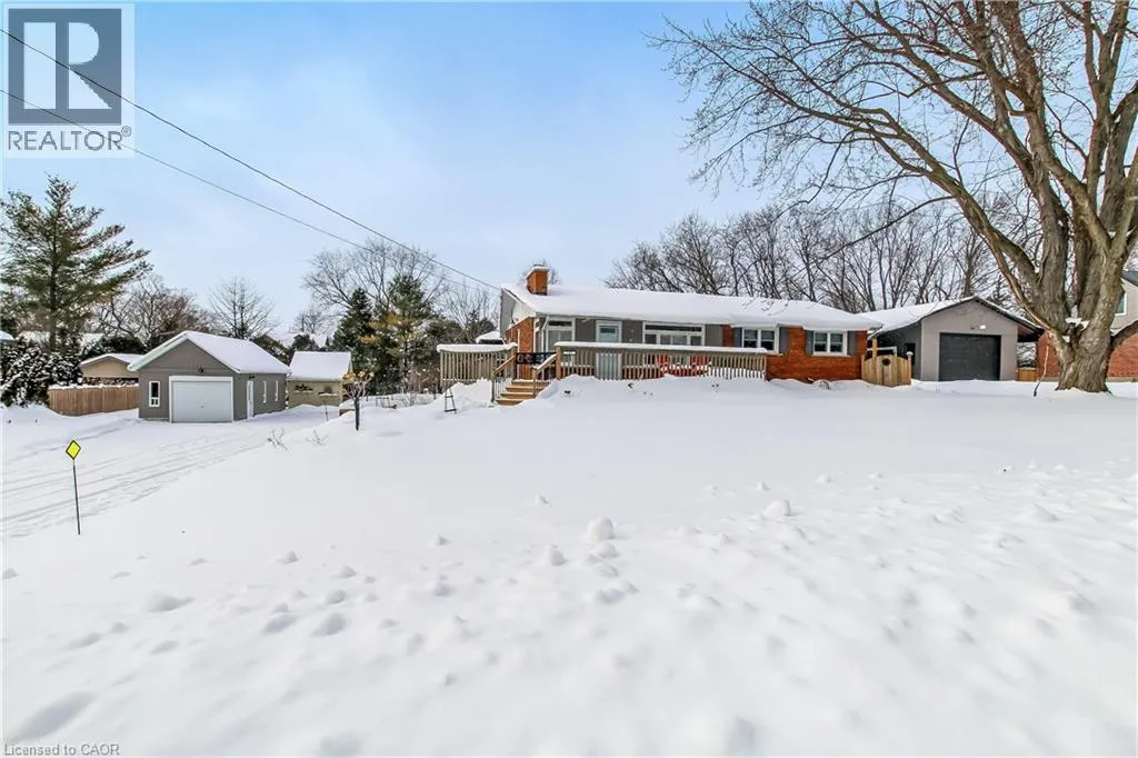From HWY 2 Woodstock, travel North on CTY Rd 4 to Innerkip, just past gas station turn right on Young St and left on Queen St, property on left hand side. This well-kept bungalow on a half-acre landscaped lot in the village of Innerkip offers great opportunities for a young family to grow or someone just looking for privacy and space. The main floor features open an concept Living Room/ Dining Room with bright windows and a gas fireplace. The remodelled kitchen offers lots of cupboard and countertop space with a nice breakfast bar. Rounding out the main floor are 3 bedrooms with the Principal Bedroom having a cheater door to the 4-piece bath and main floor laundry. The basement offers a newly-created Family Room with gas fireplace and cozy spaces for watching TV and having conversation. The additional Sitting Room and 3=piece bath finish off this floor. The basement walks out to the 1.5 oversized garage with built-in workbench. This half-acre lot is professionally landscaped and fenced, has an additional garage with upstairs storage, a garden shed and a massive deck over the garage for outdoor entertaining around the propane firepit. Located in the quiet, family-friendly village of Innerkip, children can walk to school and the active park. Itâs just minutes from the 401 for easy commutes and the town has a gas station/variety store (LCBO), Tim Hortons and pharmacy. (id:27476)