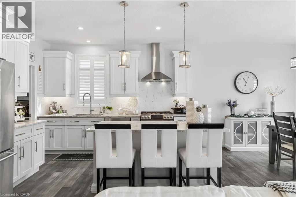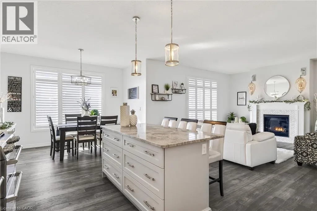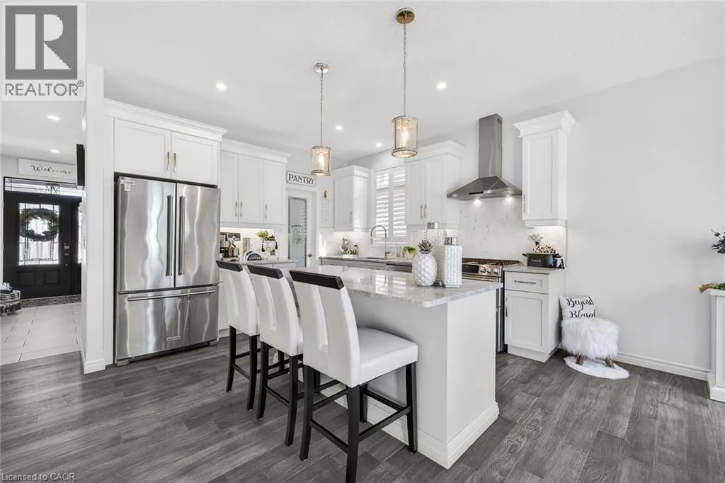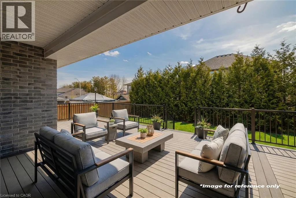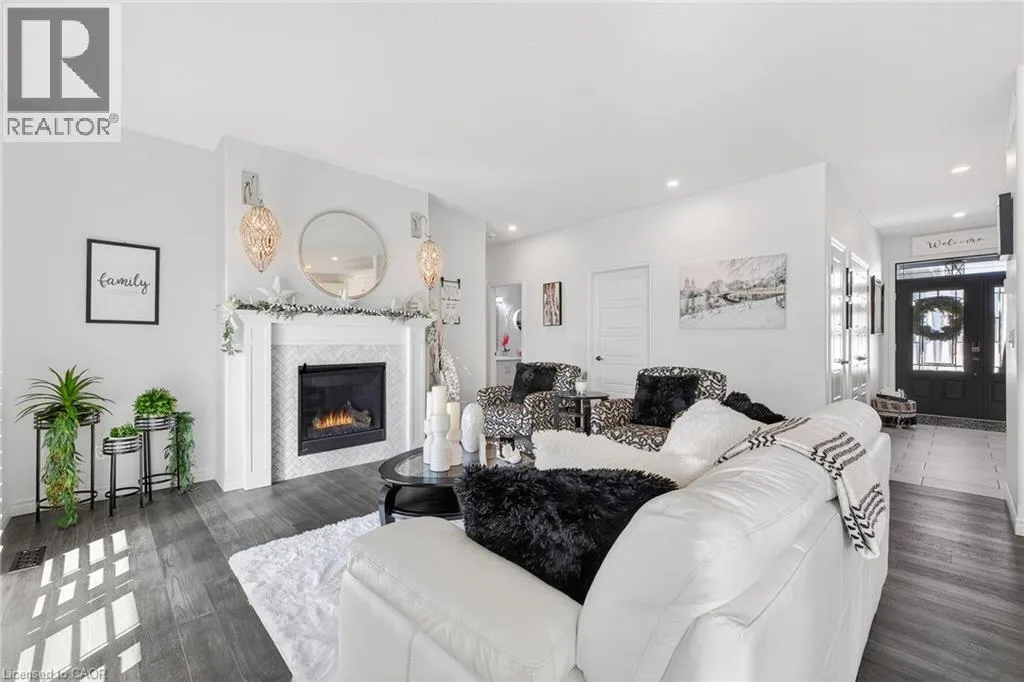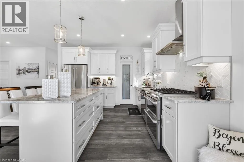 Blandford Street to George Street, Queen Street to Lock Street OPEN HOUSE SAT March 28th 10-12~ Welcome to refined, family-focused living in the heart of Innerkip. Built just six years ago, this beautifully finished executive all-brick bungalow offers the space, quality, and flexibility todayâs buyers want â all in a quiet community minutes from major routes and city amenities. The triple car garage makes an immediate impression with impressive ceiling height and additional storage above the doors. Inside, 9-foot ceilings and a carpet-free design create a bright, open feel throughout. The main floor is designed for comfort and entertaining. The spacious living room with gas fireplace invites cozy evenings, while the walk-out leads to a premium vinyl deck â approximately a $30,000 upgrade â perfect for outdoor dining and summer gatherings. The kitchen is the heart of the home, featuring high-end appliances including a double oven, modern finishes, and a walk-in pantry. Elegant herringbone-laid tile on the kitchen backsplash and fireplace surround adds a premium design detail. The main floor also features a primary bedroom retreat with walk-in closet and private ensuite, along with convenient main floor laundry and mudroom. California shutters throughout and the carpet-free design add a clean, upscale feel. The fully finished basement offers excellent versatility with a spacious rec room featuring an electric fireplace and mantle, two additional bedrooms, a full bathroom, and a separate bedroom with its own 2-piece ensuite. The basement also includes a DRIcore subfloor system, creating an air gap between the concrete and flooring to help manage moisture while providing a warmer, more comfortable living space. With space ready for a future kitchenette and plenty of storage, the lower level is ideal for extended family, teens, or guests. Beautifully finished and thoughtfully designed, this home delivers executive comfort in one of Innerkipâs most desirable neighbourhoods â without the wait of new construction. (id:27476)