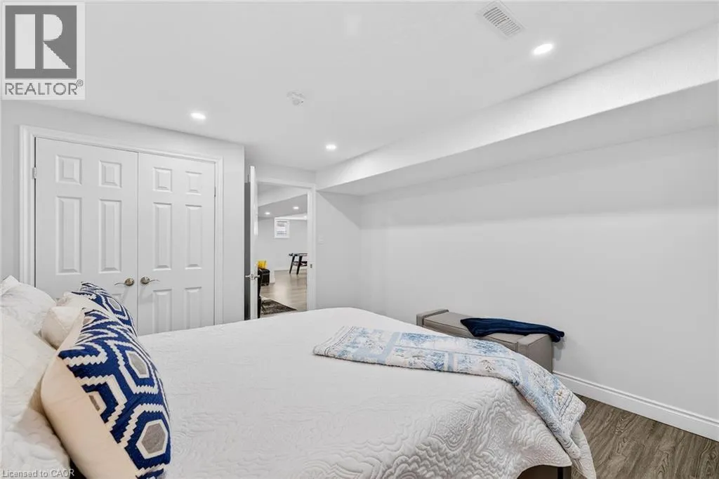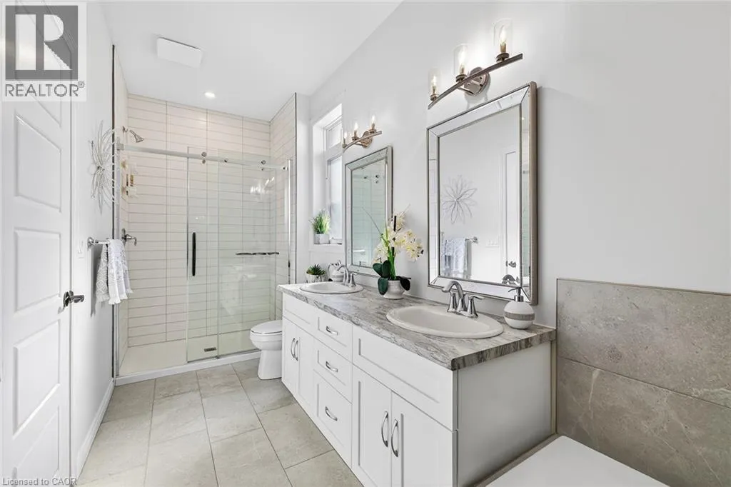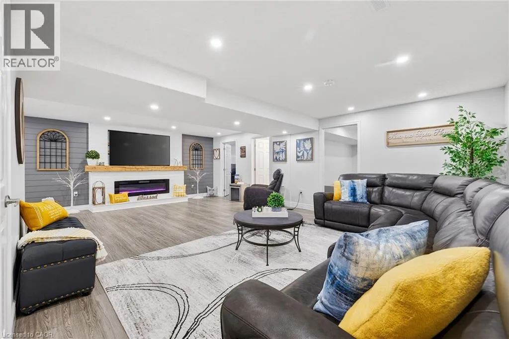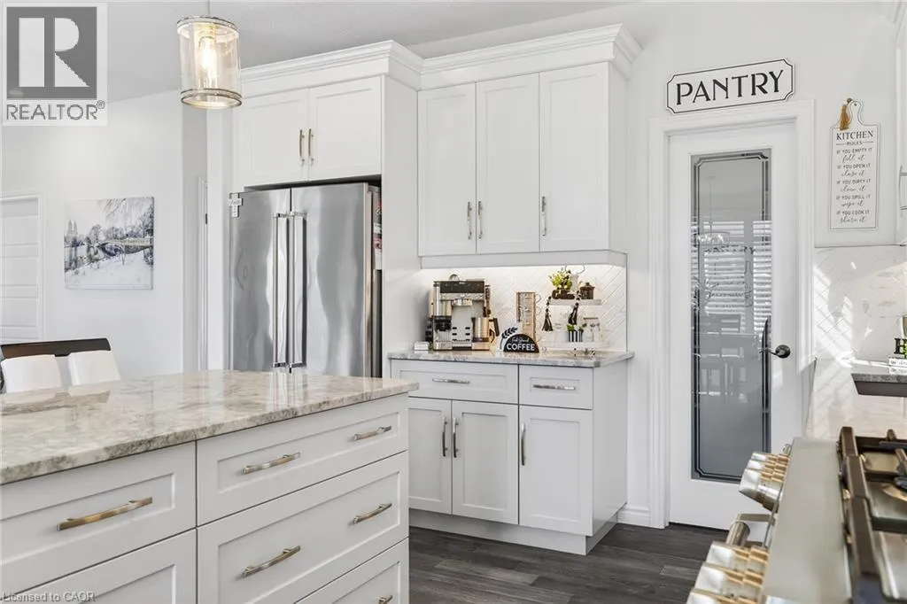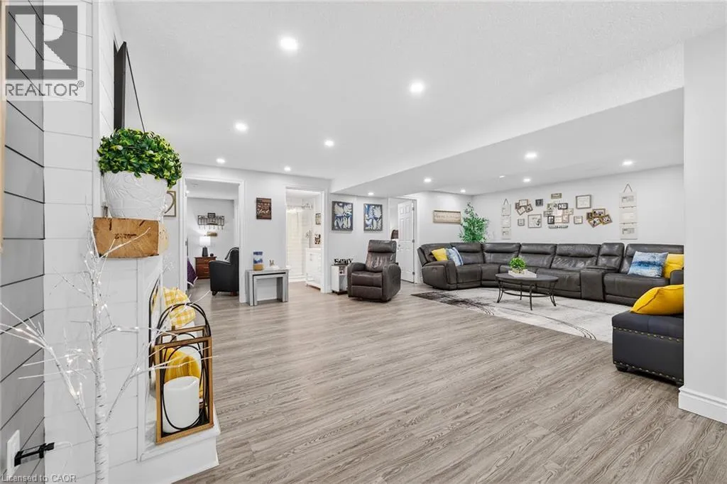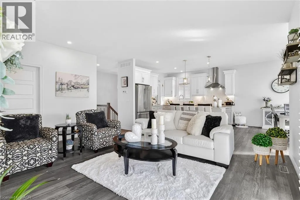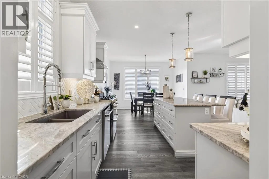 Blandford Street to George Street, Queen Street to Lock Street OPEN HOUSE SAT March 28th 10-12~ Welcome to refined, family-focused living in the heart of Innerkip. Built just six years ago, this beautifully finished executive all-brick bungalow offers the space, quality, and flexibility todayâs buyers want â all in a quiet community minutes from major routes and city amenities. The triple car garage makes an immediate impression with impressive ceiling height and additional storage above the doors. Inside, 9-foot ceilings and a carpet-free design create a bright, open feel throughout. The main floor is designed for comfort and entertaining. The spacious living room with gas fireplace invites cozy evenings, while the walk-out leads to a premium vinyl deck â approximately a $30,000 upgrade â perfect for outdoor dining and summer gatherings. The kitchen is the heart of the home, featuring high-end appliances including a double oven, modern finishes, and a walk-in pantry. Elegant herringbone-laid tile on the kitchen backsplash and fireplace surround adds a premium design detail. The main floor also features a primary bedroom retreat with walk-in closet and private ensuite, along with convenient main floor laundry and mudroom. California shutters throughout and the carpet-free design add a clean, upscale feel. The fully finished basement offers excellent versatility with a spacious rec room featuring an electric fireplace and mantle, two additional bedrooms, a full bathroom, and a separate bedroom with its own 2-piece ensuite. The basement also includes a DRIcore subfloor system, creating an air gap between the concrete and flooring to help manage moisture while providing a warmer, more comfortable living space. With space ready for a future kitchenette and plenty of storage, the lower level is ideal for extended family, teens, or guests. Beautifully finished and thoughtfully designed, this home delivers executive comfort in one of Innerkipâs most desirable neighbourhoods â without the wait of new construction. (id:27476)