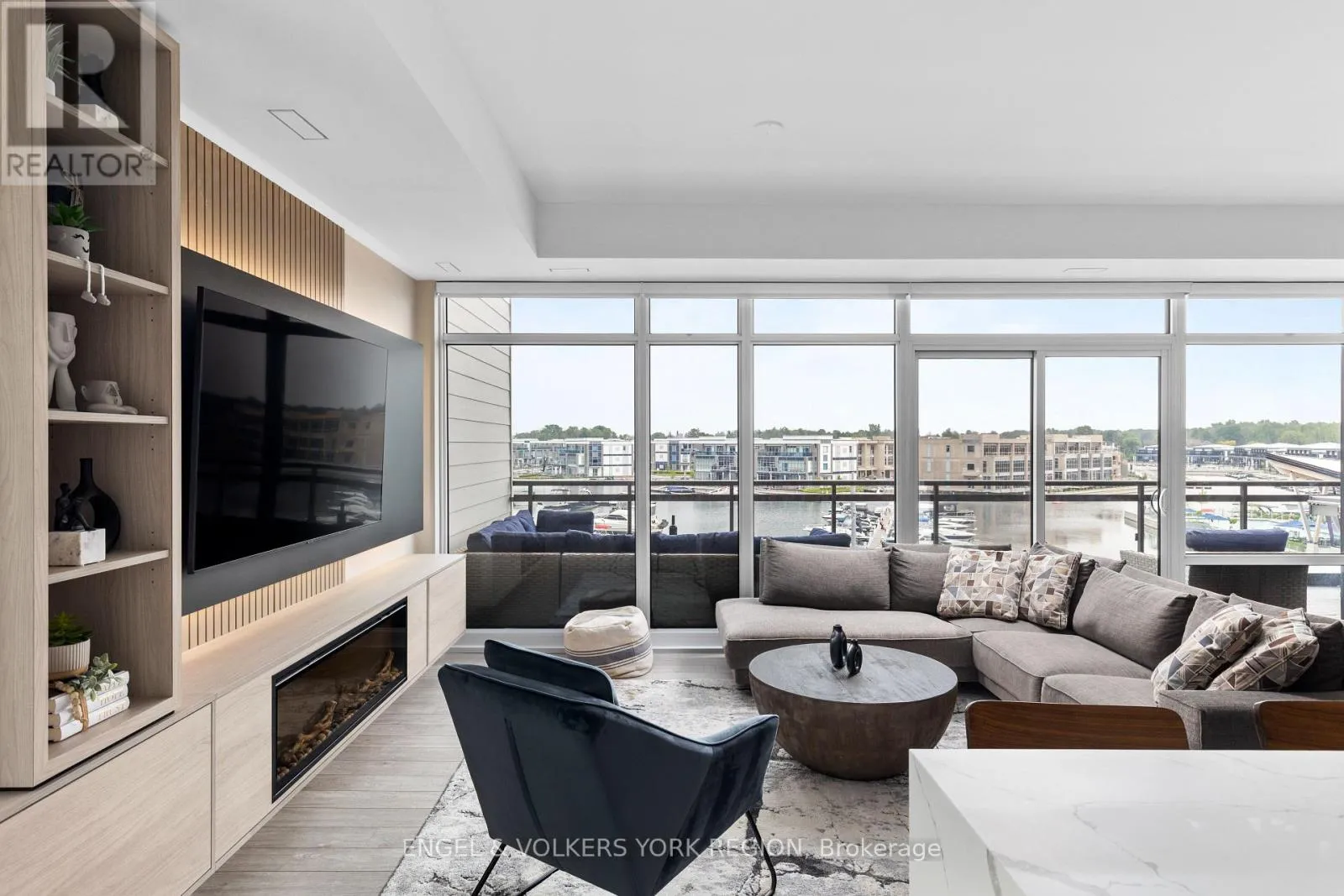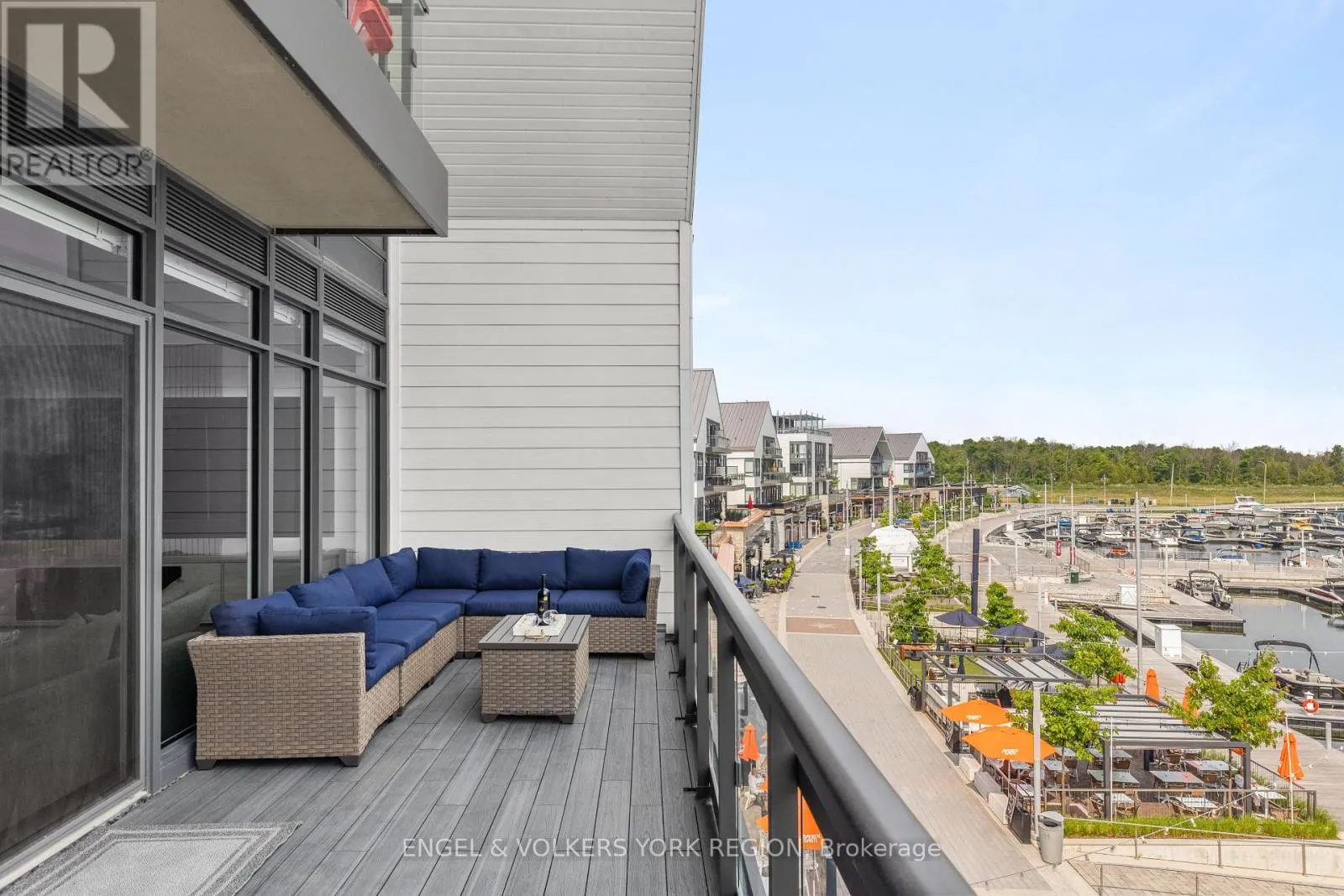 Big Bay Point & Friday Dr Rare Marina-Facing Residence in Friday Harbor Welcome to one of Friday Harbors most coveted waterfront residences. This exceptional and rarely available 2-storey Stacked Townhome condo is 1 of only 12 exclusive stacked townhomes in the entire resort that directly overlook the vibrant boardwalk and shimmering marina and among the select few to feature floor-to-ceiling windows, bathing the interior in natural light and showcasing breathtaking panoramic views. Elegantly upgraded with over $200,000 in premium finishes, this sophisticated home offers a thoughtfully designed open-concept layout that perfectly blends comfort and style. The main floor boasts a spacious living area, a chic dining space, and a designer kitchen all opening onto a generously sized private terrace, ideal for alfresco dining and entertaining. Upstairs, retreat to the serene primary bedroom and second bedroom, both with direct access to the upper-level balcony overlooking the marina. Two beautifully appointed bathrooms, luxurious finishes, and natural light throughout create a bright, calming, resort-like ambiance. Situated in the heart of Friday Harbors renowned waterfront community, residents enjoy unparalleled amenities including championship golf, scenic hiking trails, pristine beaches, a world-class marina, and a year-round calendar of curated events and activities. All this just a short drive from the city yet it feels a world away. An extraordinary opportunity to own a truly special residence in one of Ontario's premier lifestyle communities. (id:27476)