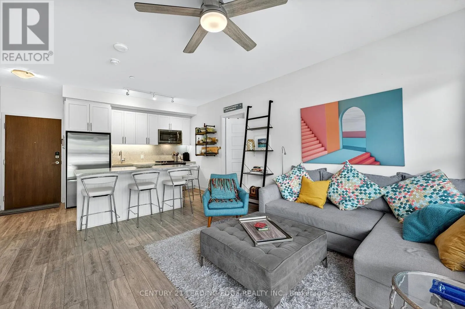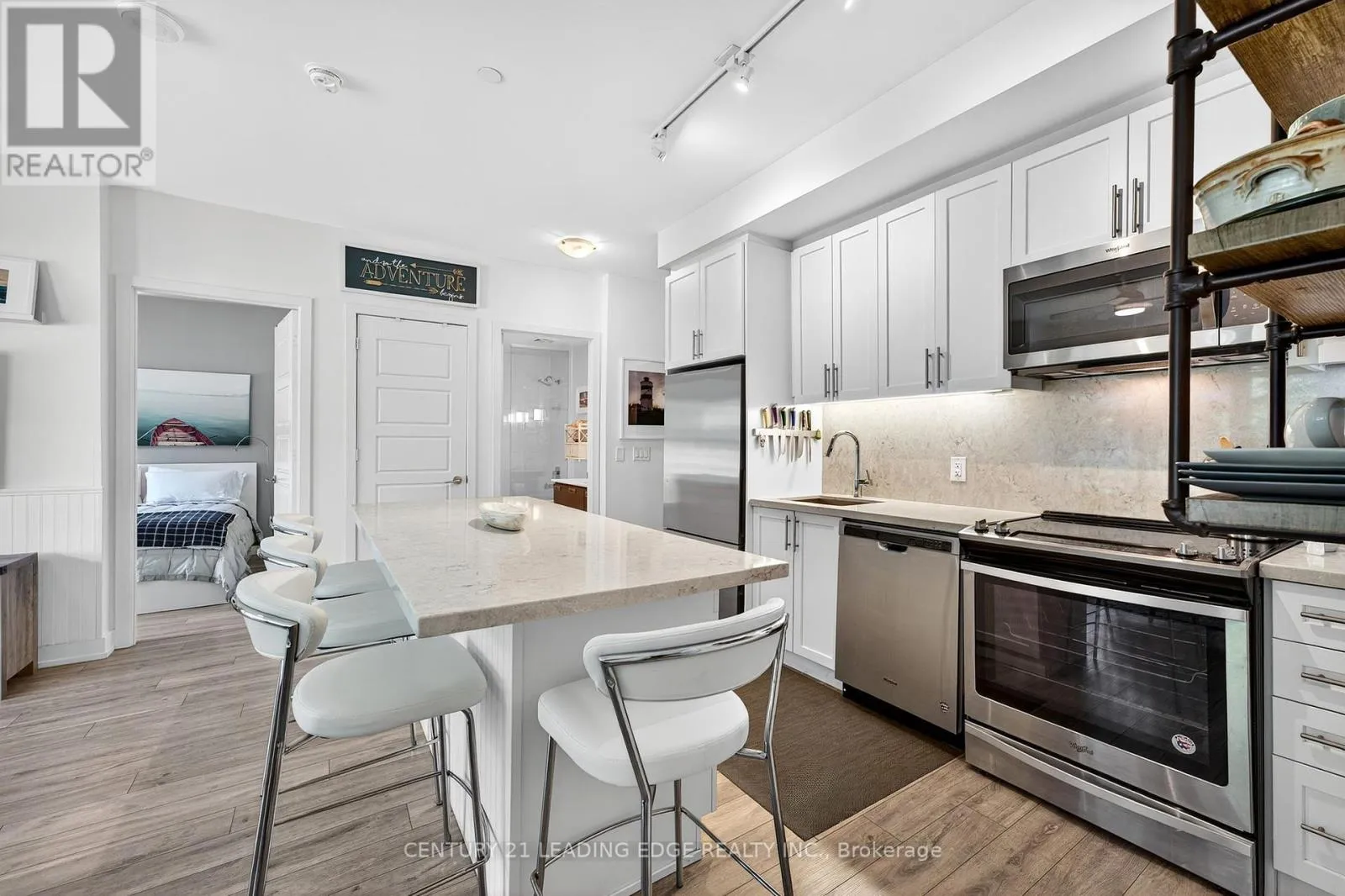 Cross Streets: Sea Ray Ave/Donzi. ** Directions: Friday Harbour Resort. Welcome to the rarely offered Black Cherry Model at Friday Harbour Resort. Meticulously cared for by the original owner and designed for the ultimate resort lifestyle! This ground floor unit boasts an expansive private patio with walk-out convenience, blending the comfort of bungalow style living with the luxury of a 4 season resort. Inside every detail has been thoughtfully upgraded: shaker style kitchen cabintry, upgraded flooring throughout, custom roller shade blinds add a modern elegant touch. The open concept layout is airy and perfect for entertaining or relaxing after a day on the water. As an owner, you'll enjoy exclusive access with 6 homeowner cards to an endless list of amenities that include pickle ball/tennis courts, pools, fitness centre, hiking and nature trails, kayaking and so much more. Step outside your door to the boardwalk boutique shops, dining, and year round events all within this vibrant resort community! Friday Harbour offers more than a home-it's a lifestyle. Fees are as follows; Condo $698.59/month. LakeClub $224.99/month, Annual Resort Fee$1684.14/Year. Buyer also to pay a one time entry fee of 2% plus hst to the Resort Association on closing. (id:27476)