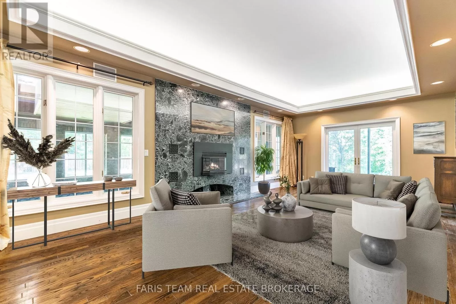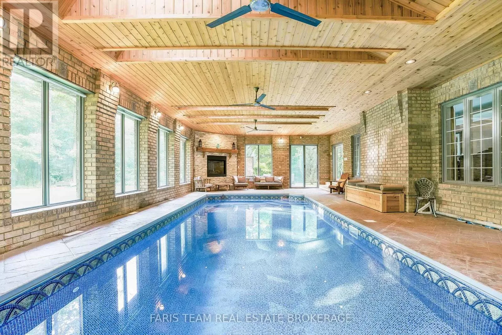 Wilkinson St/Quantz Cres Top 5 Reasons You Will Love This Home: 1) Striking custom-built residence set on a sprawling 2.17-acre estate, boasting unmatched curb appeal with mature trees and a tranquil ravine backdrop that delivers both privacy and natural beauty 2) Experience upscale living in a chef-inspired kitchen featuring sleek stainless-steel appliances, rich cabinetry, and a charming breakfast nook, perfect for intimate meals, flowing effortlessly into the backyard for seamless indoor-outdoor entertaining 3) Bathe in natural sunlight streaming through the elegant glass courtyard, while the refined family and living rooms, each with their own fireplace, offer cozy gathering spaces and step onto private balconies from the bedrooms for stunning, serene views 4) A showstopping indoor pool sanctuary complete with wood beam accents, its own fireplace, and a walkout to pristine landscaping, creates the ultimate space to relax, rejuvenate, and entertain year-round 5) Convenience meets function with a spacious triple-car garage ideal for storing vehicles or outdoor gear, all just minutes away from Barrie and the Barrie South GO station for effortless commuting. 8,409 fin.sq.ft. Age 34. Visit our website for more detailed information. *Please note some images have been virtually staged to show the potential of the home. (id:27476)