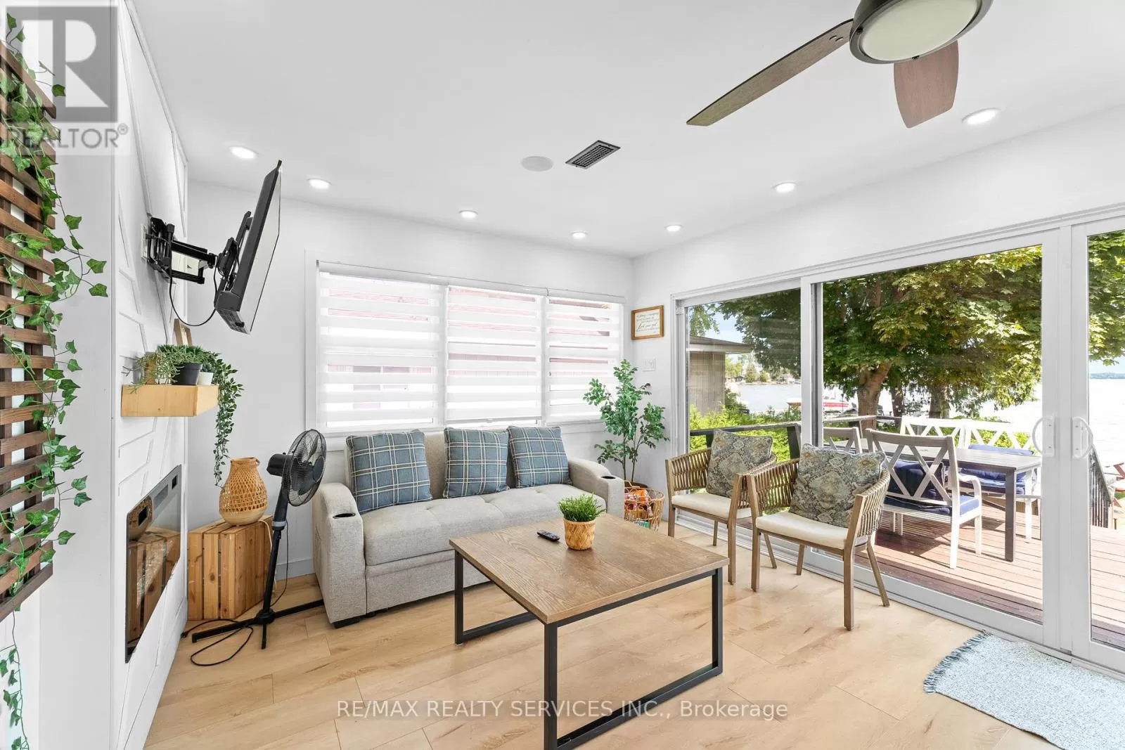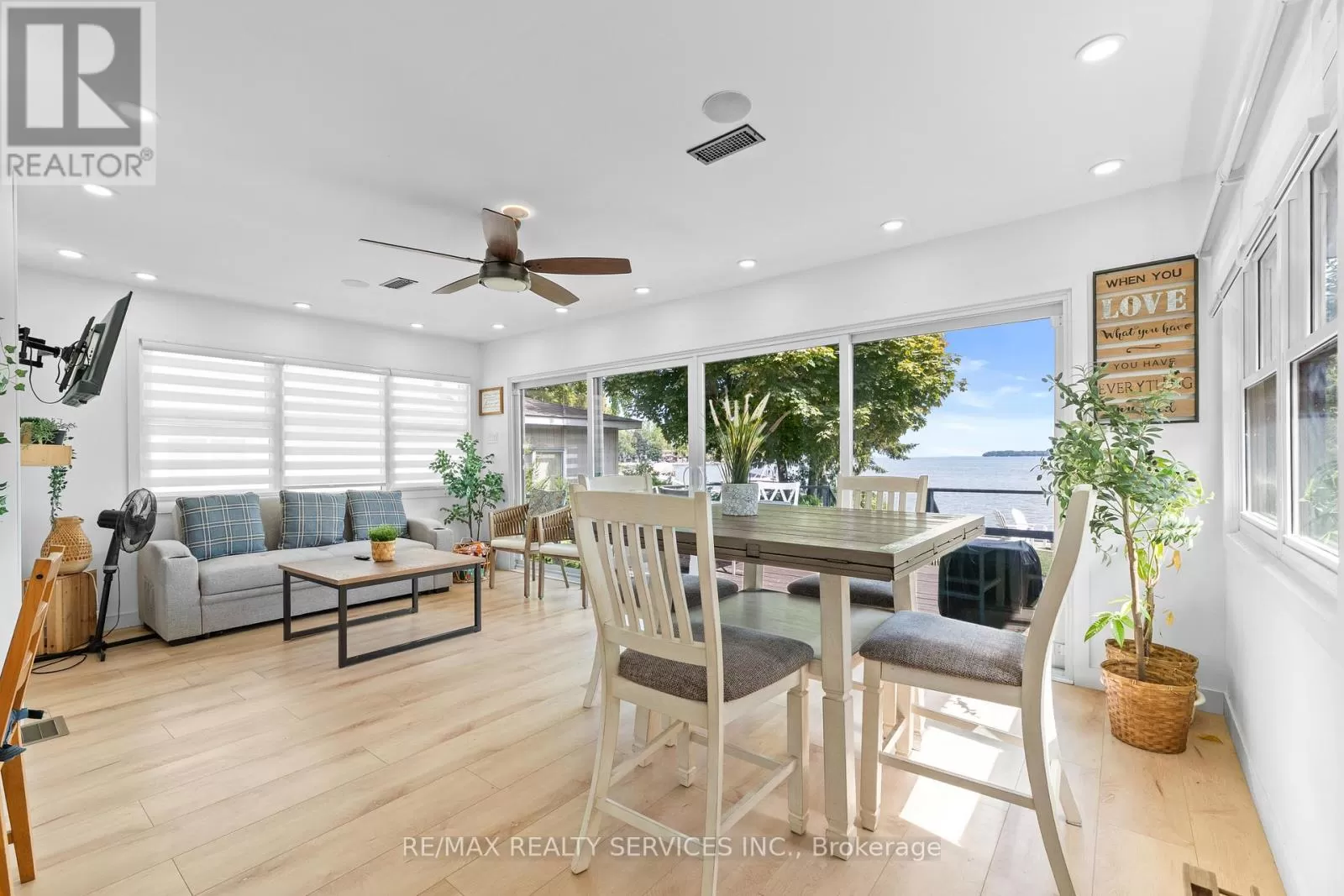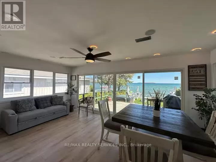 25th Side Road/Roberts Prime Lake Simcoe Waterfront! Rarely offered fully renovated 2-bedroom, 4-season home on a level lot along the sandy shores of Lake Simcoe, offering breathtaking, unobstructed views. Featuring an open-concept layout with walkout to the lake, updated siding, insulation, windows, roof (2019), 100-amp panel (2021), newer heatpump(2023) , pot lighting, ceiling speakers and modern finishes throughout. Enjoy a large deck with hot tub, concrete break wall, and detached garage. Municipal water & sewer. Located in a sought-after Innisfil community surrounded by luxury homes & cottages. Close to beaches, schools, grocery, and just minutes to future GO Train and RVH campus. Perfect as a year-round home, weekend getaway, or investment property! (id:27476)